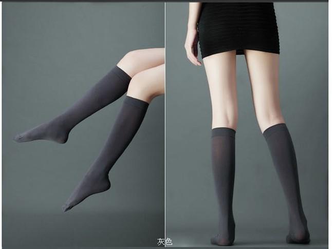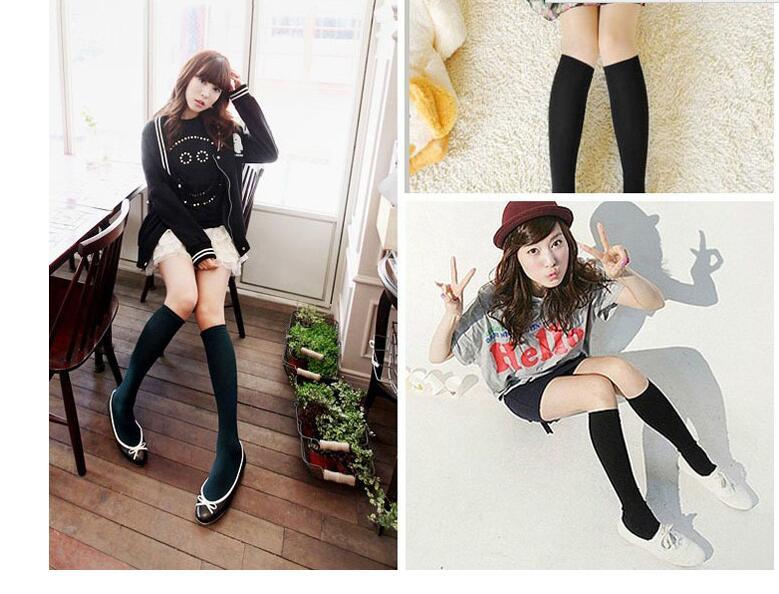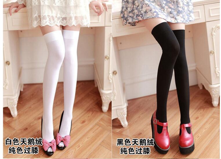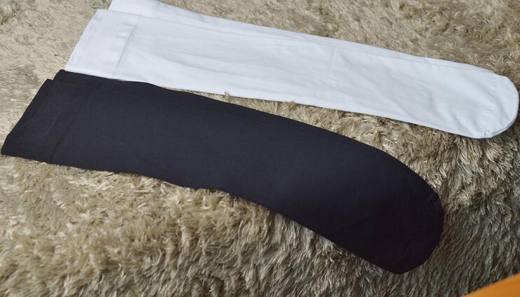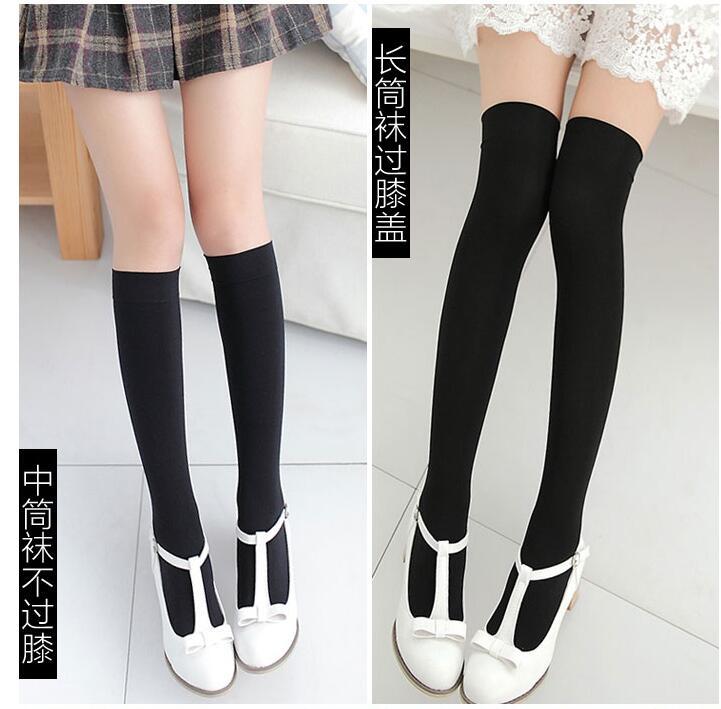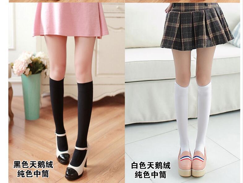 Calcetines uniformes de color puro hasta la pantorrilla, calcetines largos por encima de la rodilla, calcetines de media pantorrilla estilo japonés, 120D Terciopelo blanco y negro piel