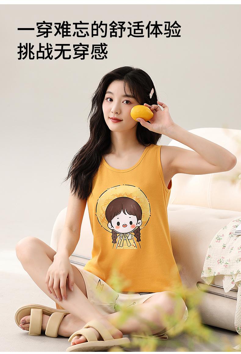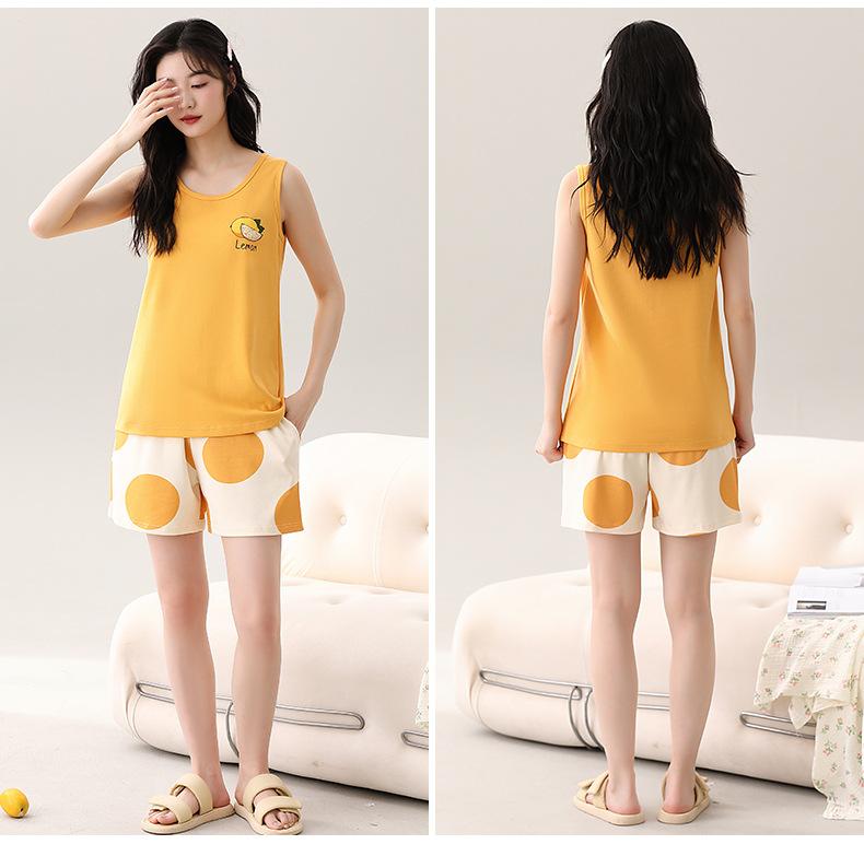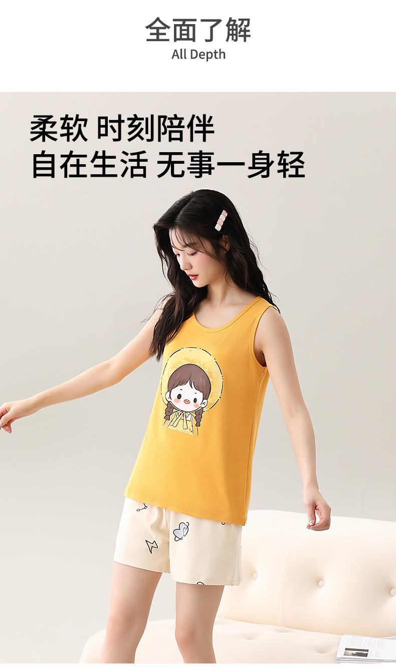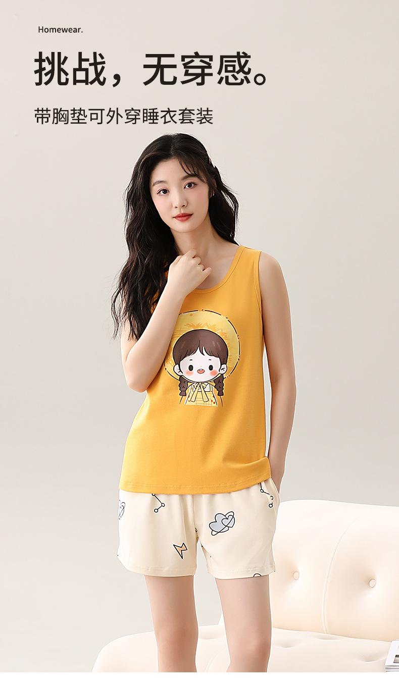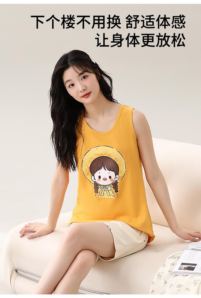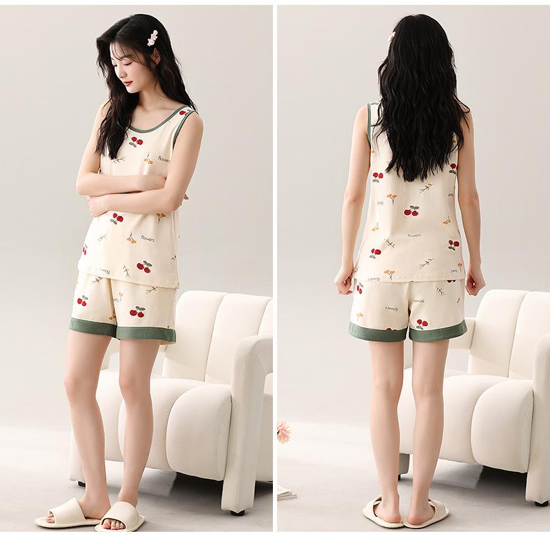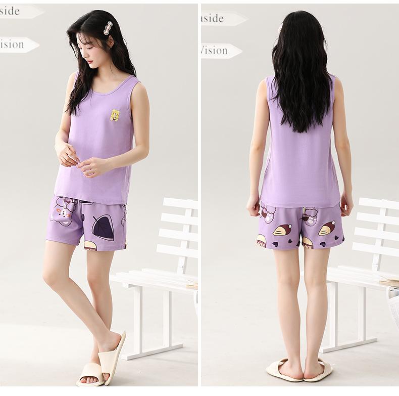 Pijamas Less de Mujer Verano Algodón Imitación Chaleco Acolchado Shorts Estilo Coreano Ropa para el Hogar Traje Dulce de Dibujos Animados Verano