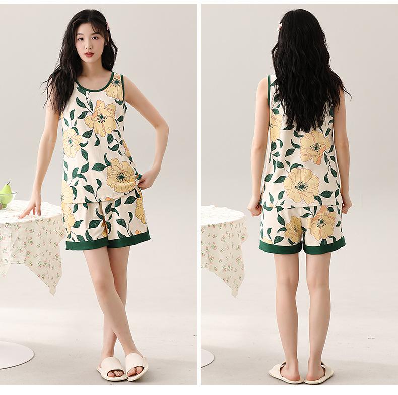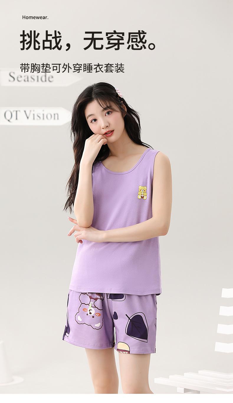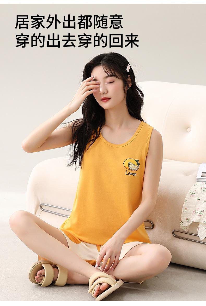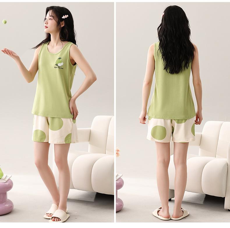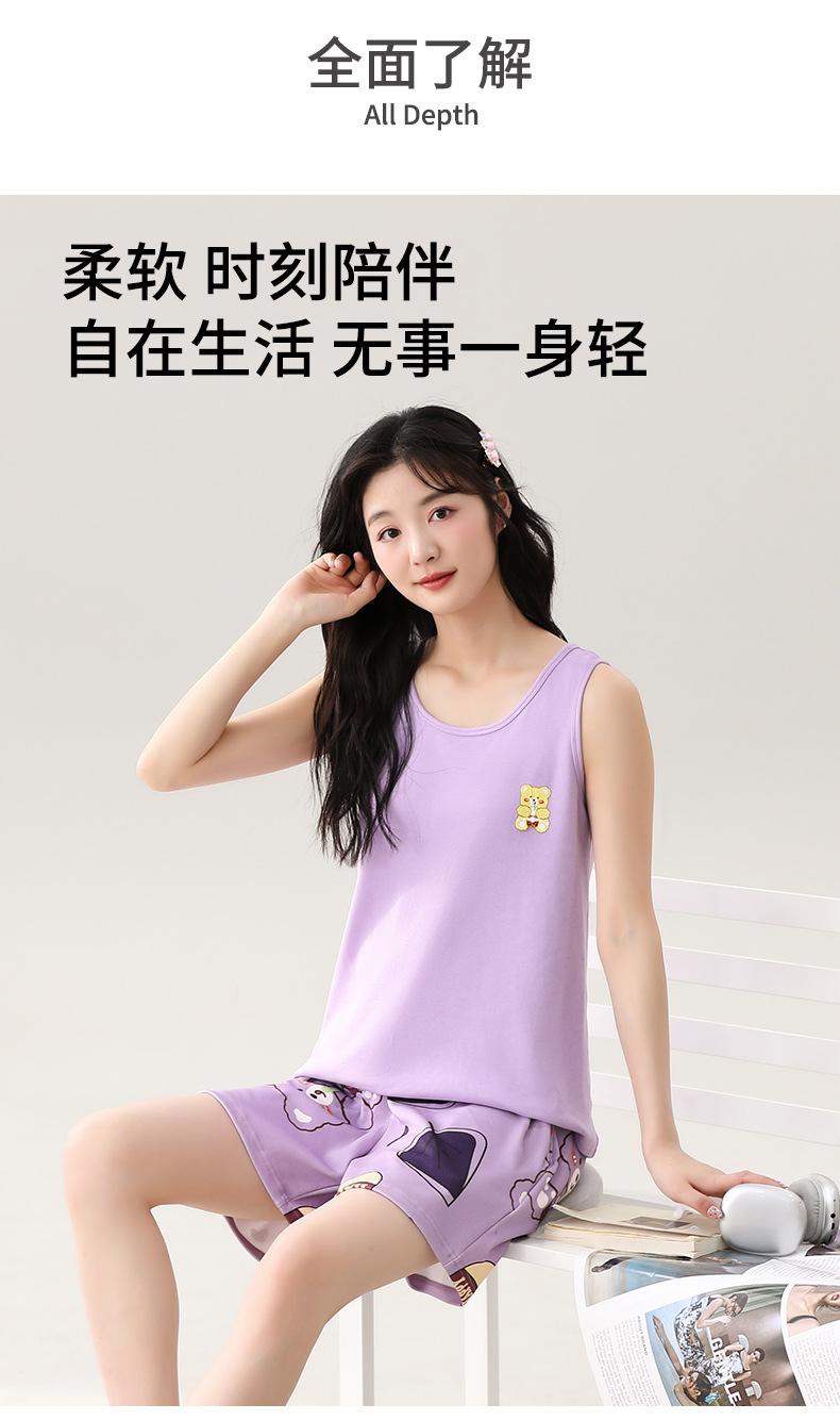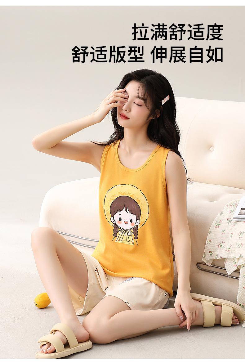 Pijamas Less de Mujer Verano Algodón Imitación Chaleco Acolchado Shorts Estilo Coreano Ropa para el Hogar Traje Dulce de Dibujos Animados Verano