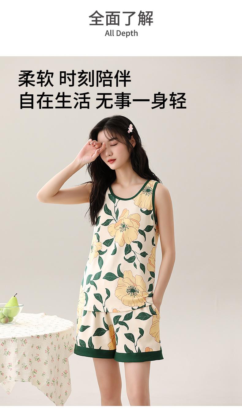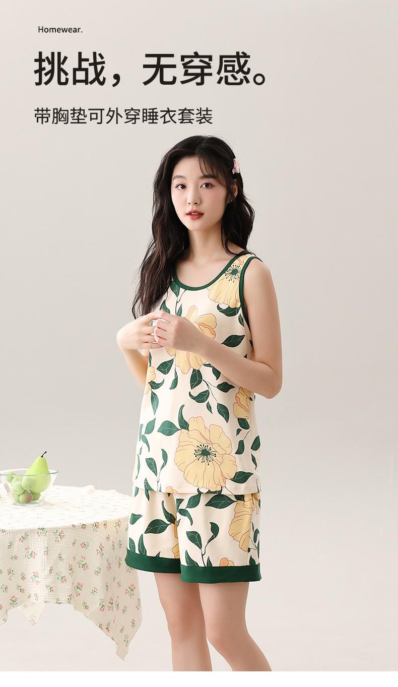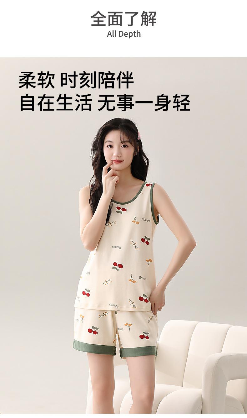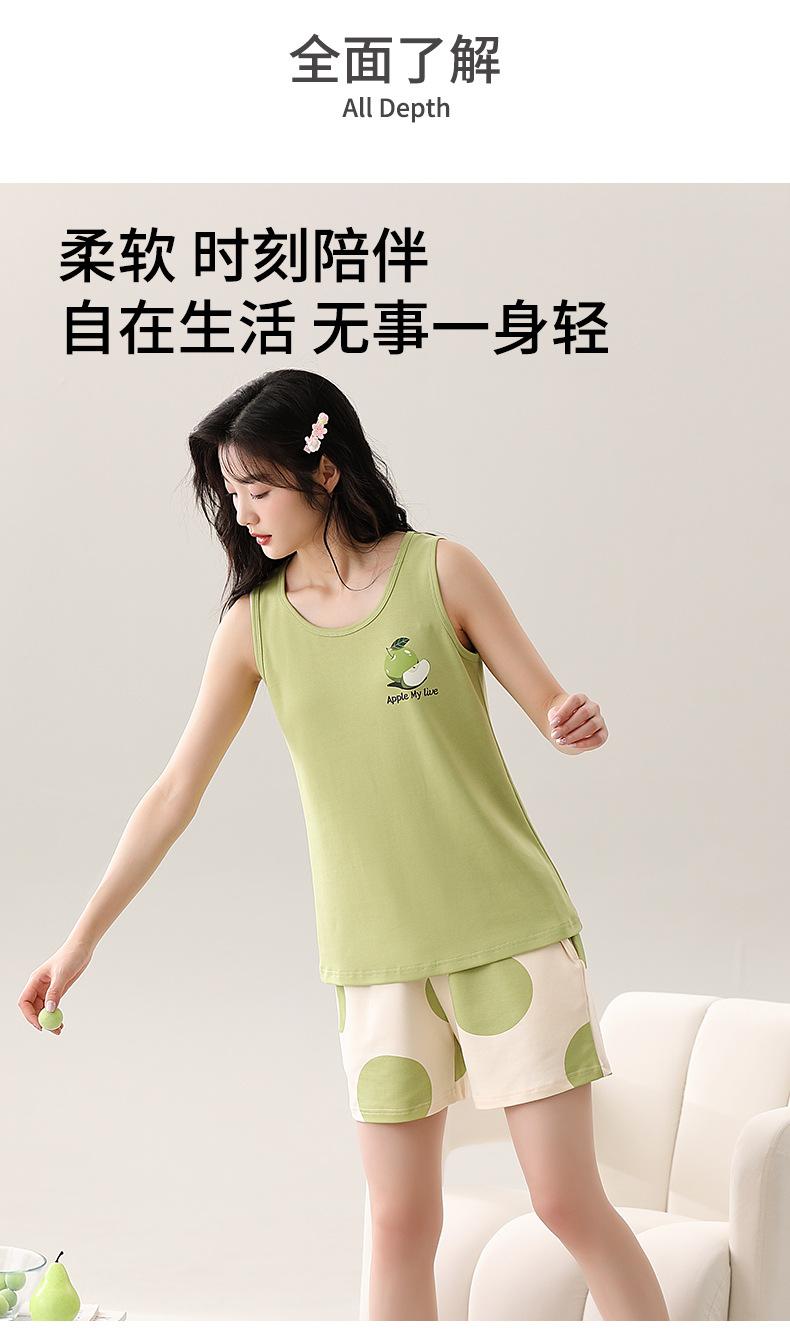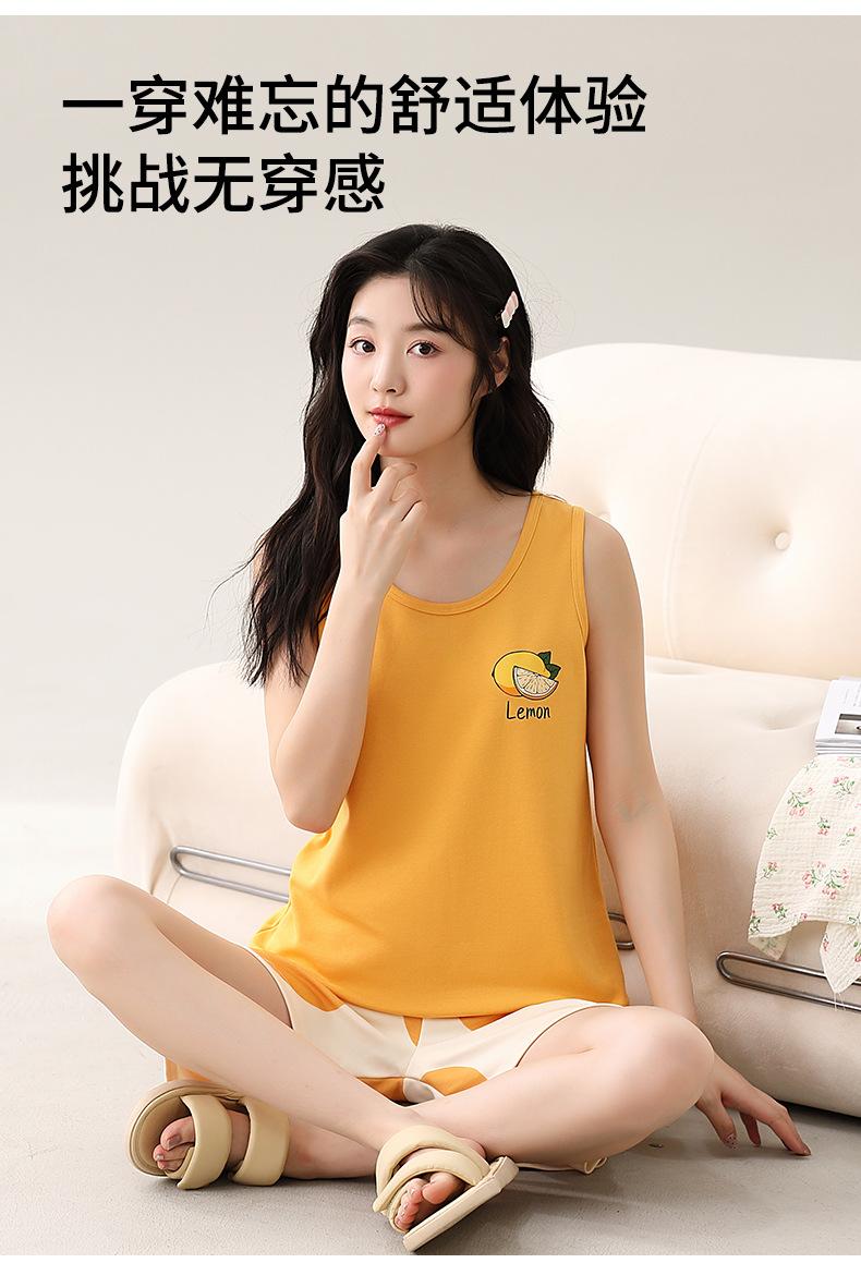 Pijamas Less de Mujer Verano Algodón Imitación Chaleco Acolchado Shorts Estilo Coreano Ropa para el Hogar Traje Dulce de Dibujos Animados Verano