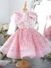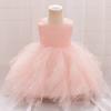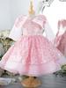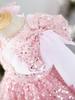 Vestido de Lazo Grande para Niños de Un Año Vestido de Banquete de Cumpleaños de Bebé Vestido de Princesa de Malla de Lentejuelas Espectáculo