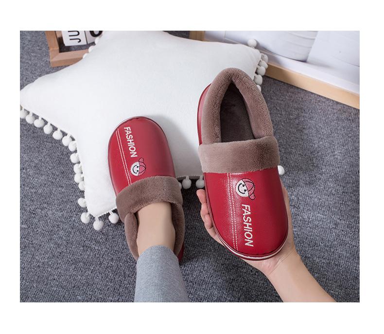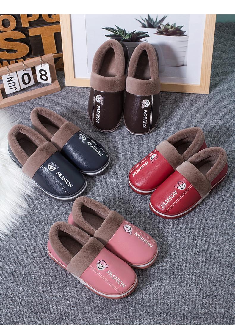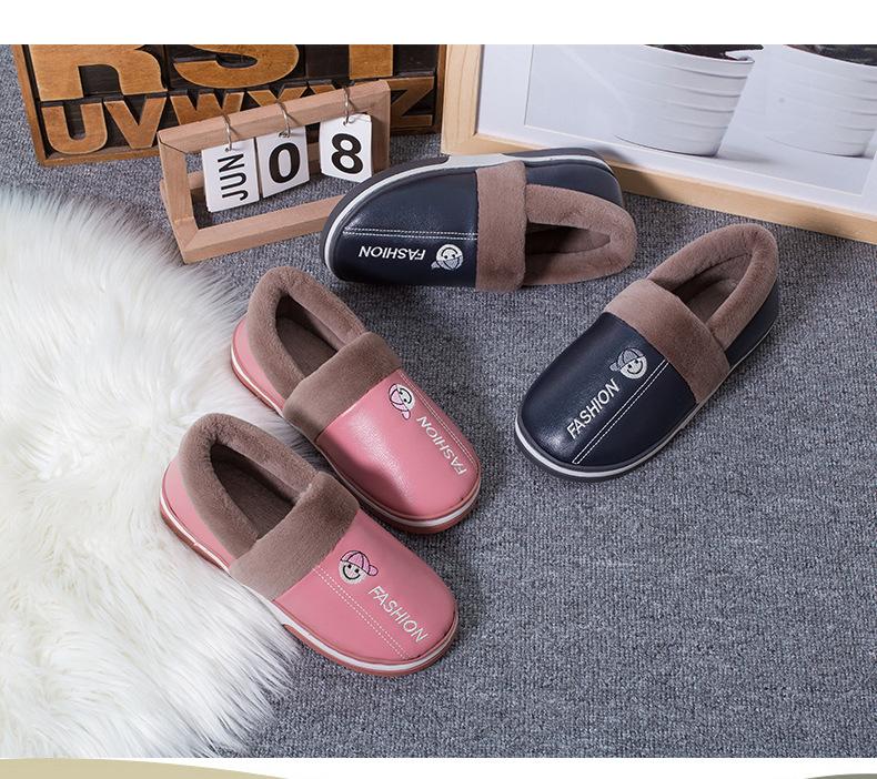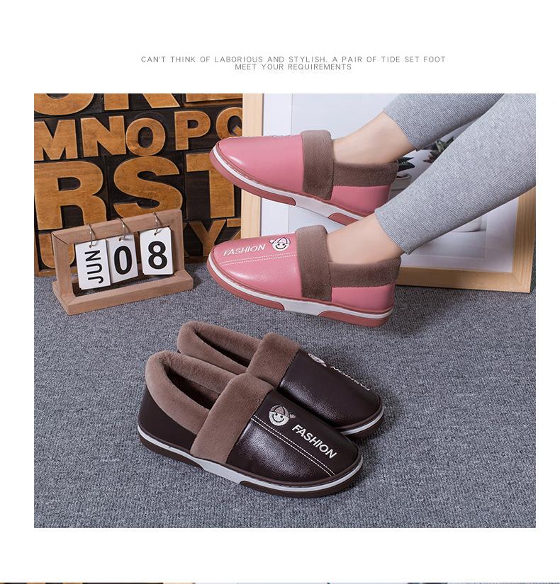 Zapatos de algodón cálidos de invierno de cuero de alta calidad engrosado para uso doméstico interior y exterior para parejas impermeables antideslizantes con talón de felpa zapatos de algodón