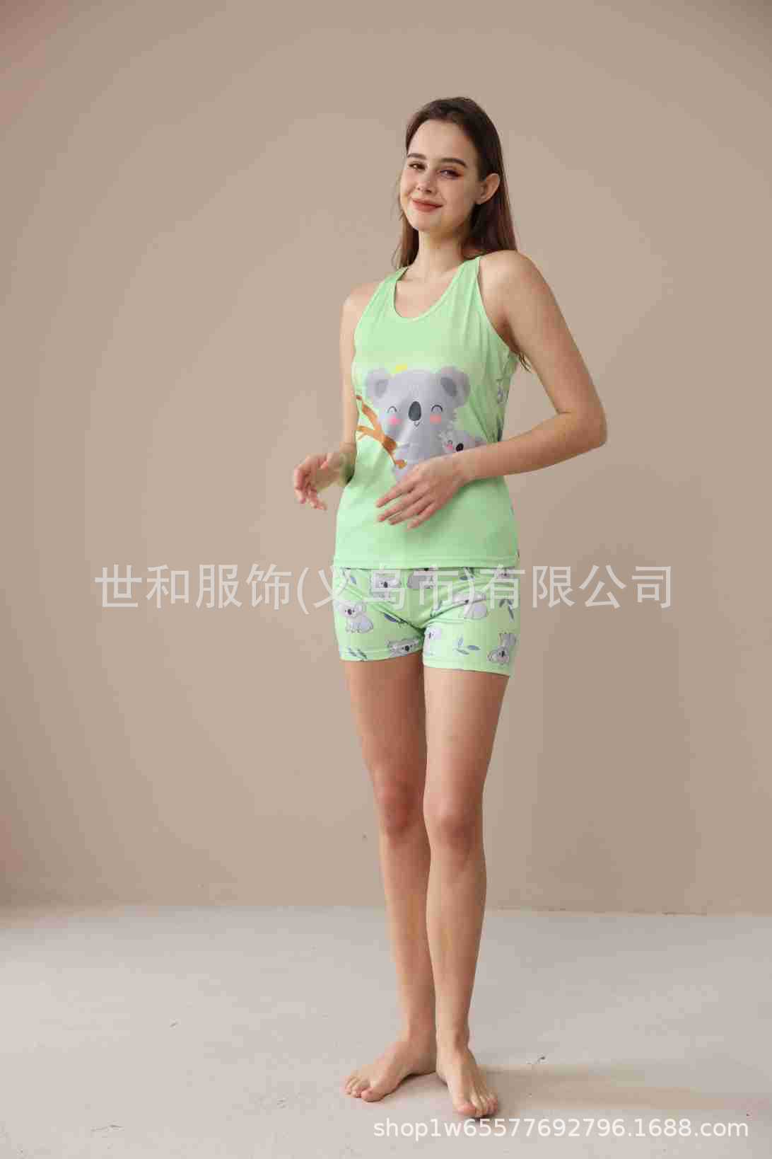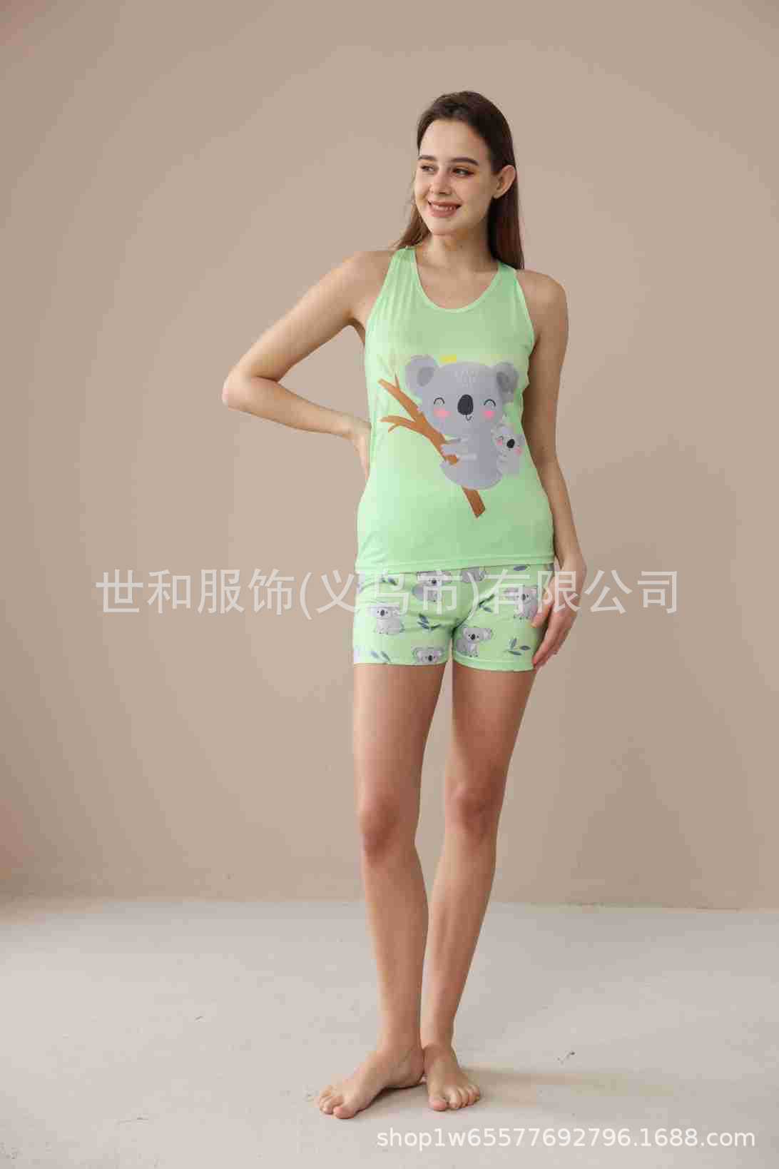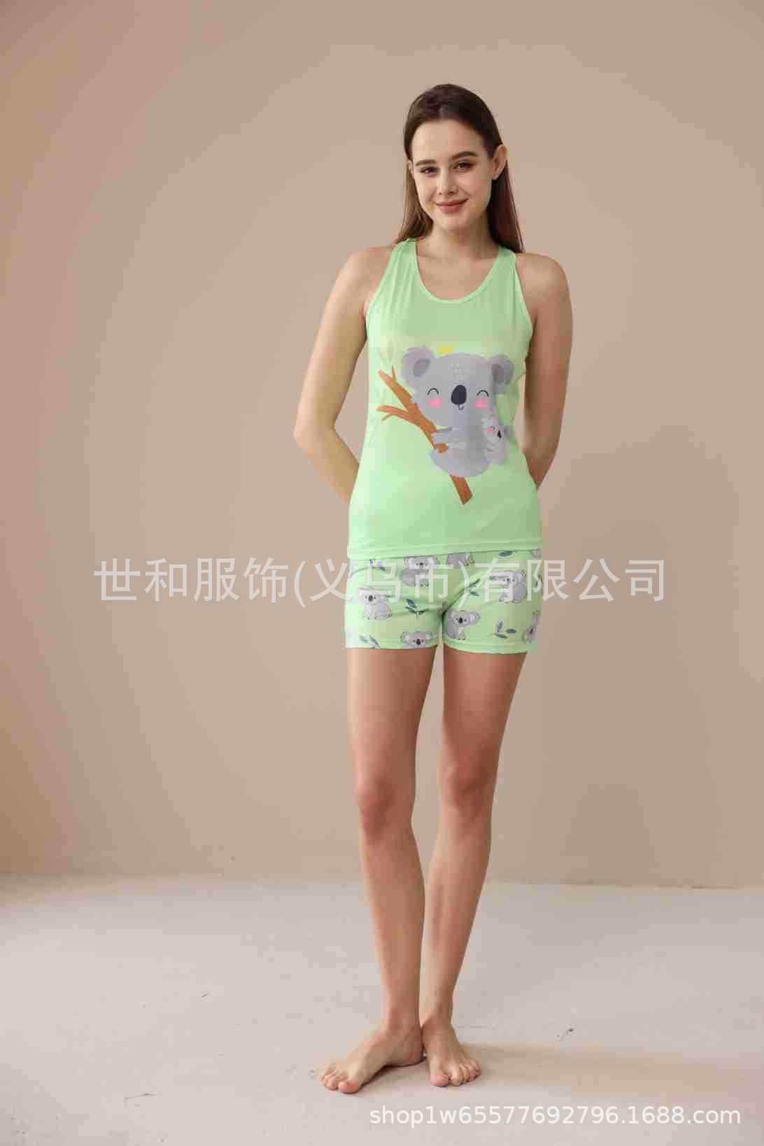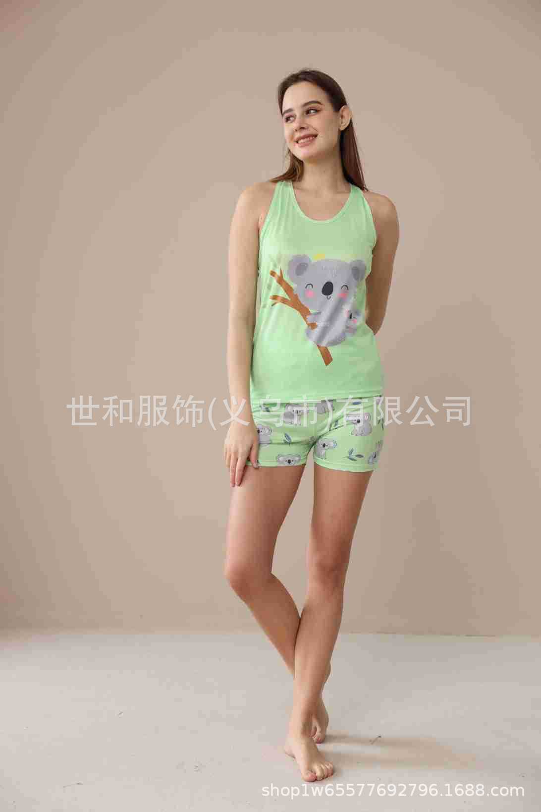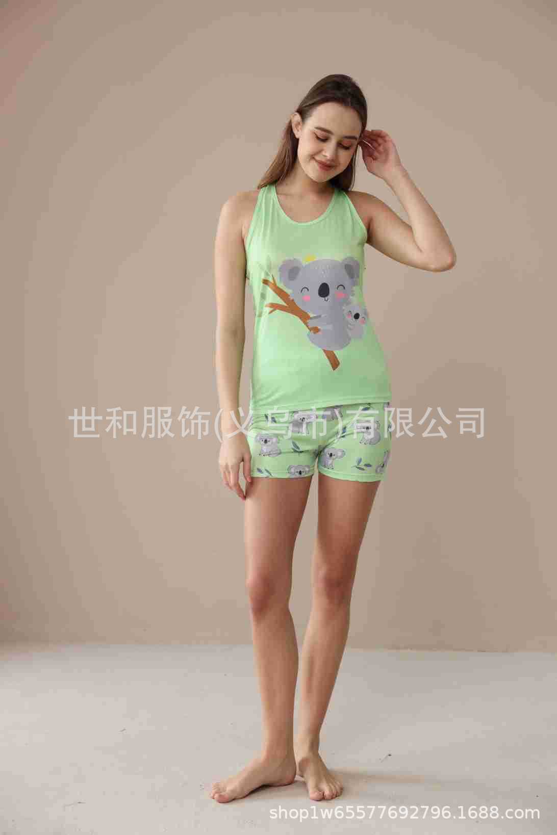 Conjunto de pijama con pantalones cortos y chaleco estampado de talla grande para mujer, primavera y verano 2024, nuevo comercio exterior