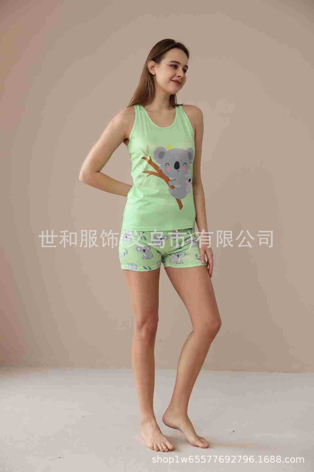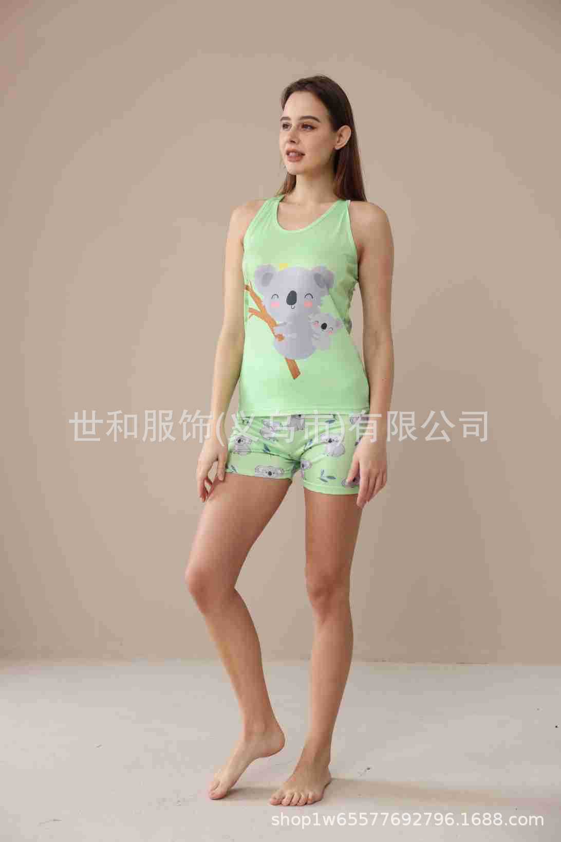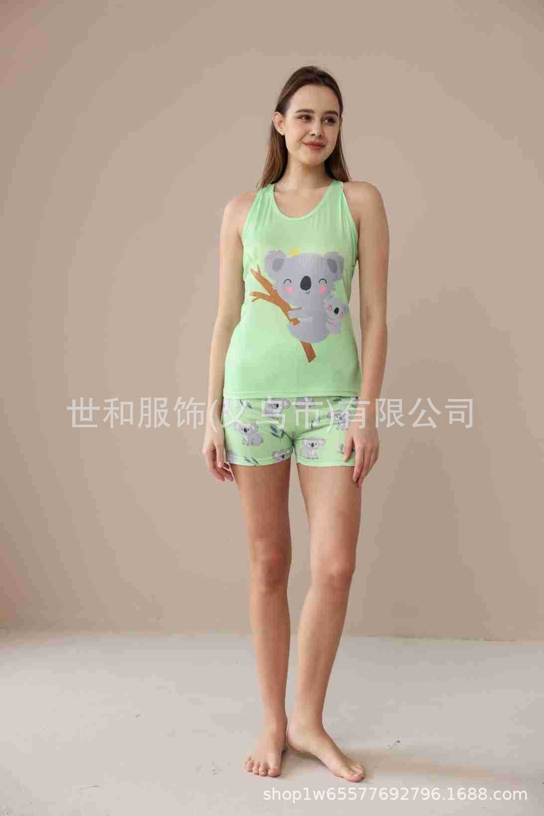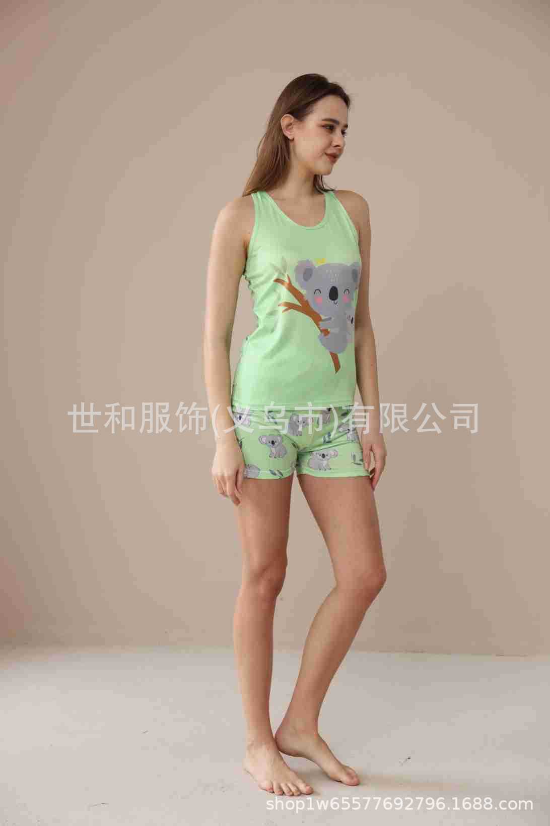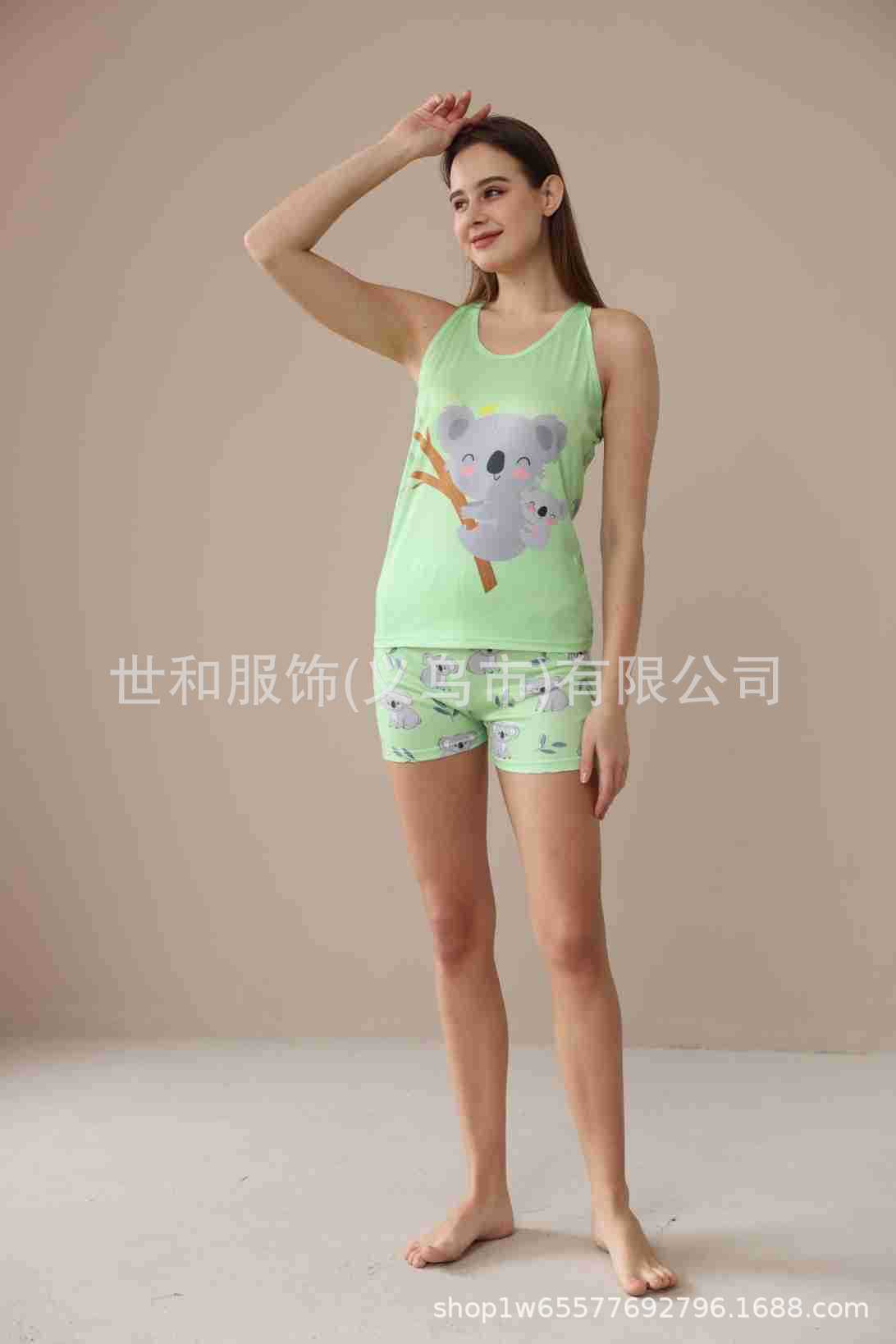 Conjunto de pijama con pantalones cortos y chaleco estampado de talla grande para mujer, primavera y verano 2024, nuevo comercio exterior