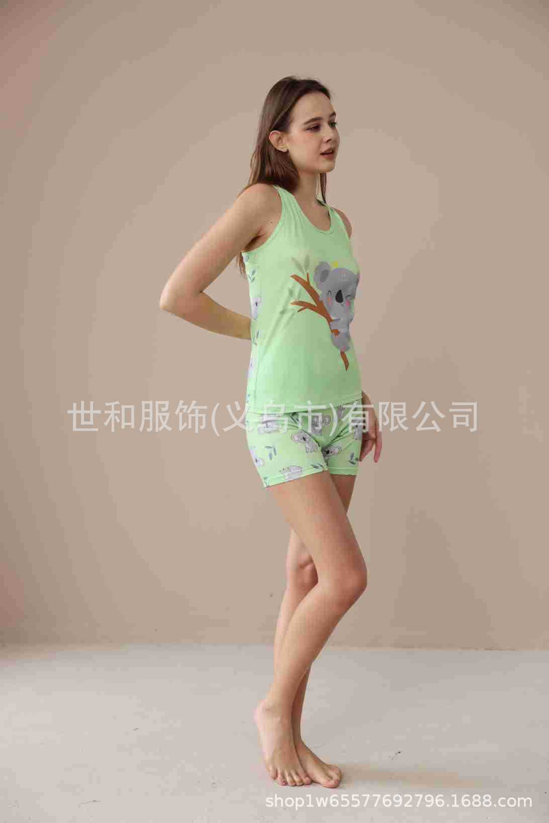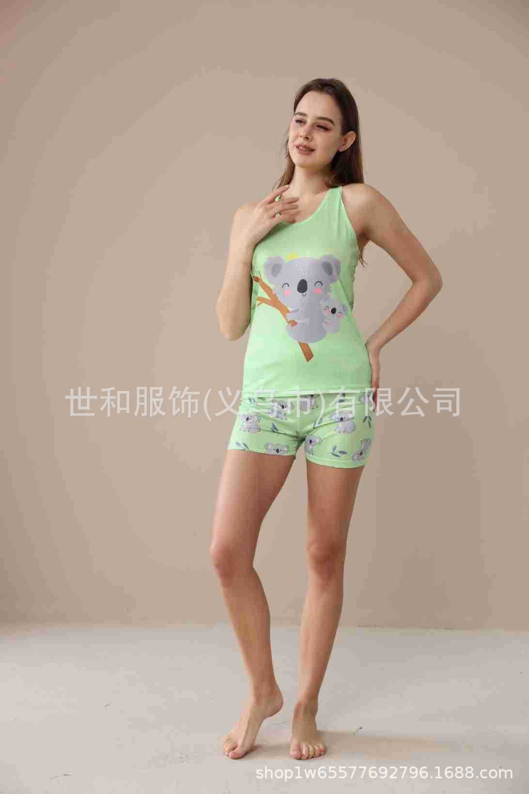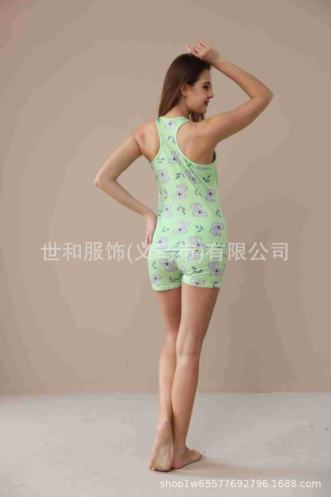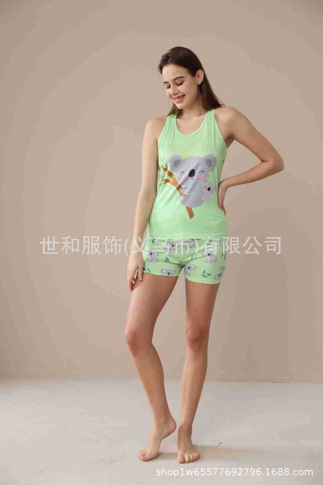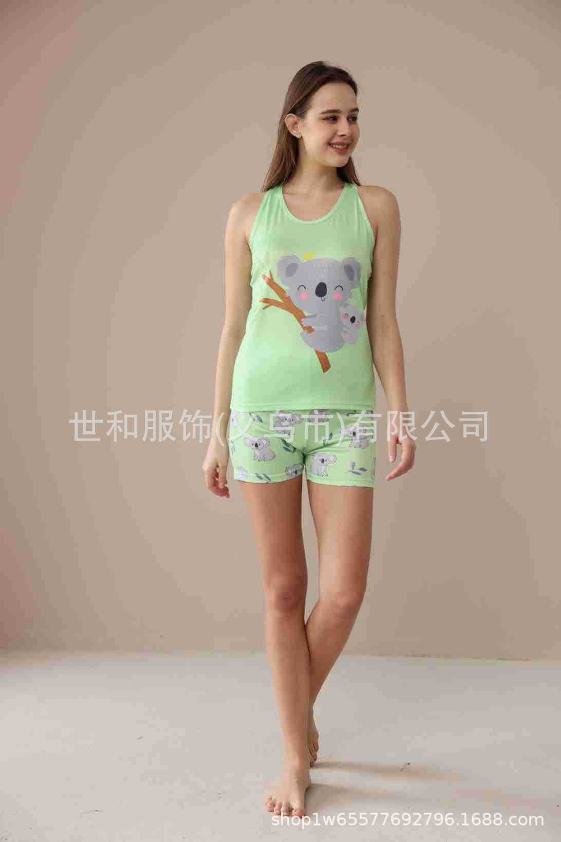 Conjunto de pijama con pantalones cortos y chaleco estampado de talla grande para mujer, primavera y verano 2024, nuevo comercio exterior