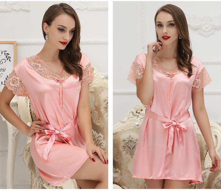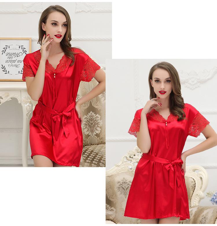 Pijama informal de moda para mujer, sexy y encantador, fino, con cuello en V, de seda helada, color liso