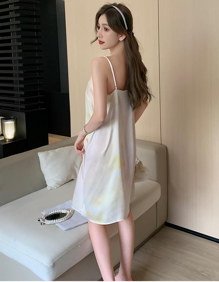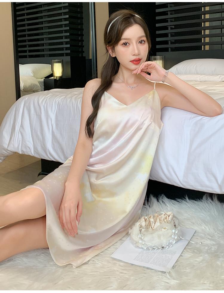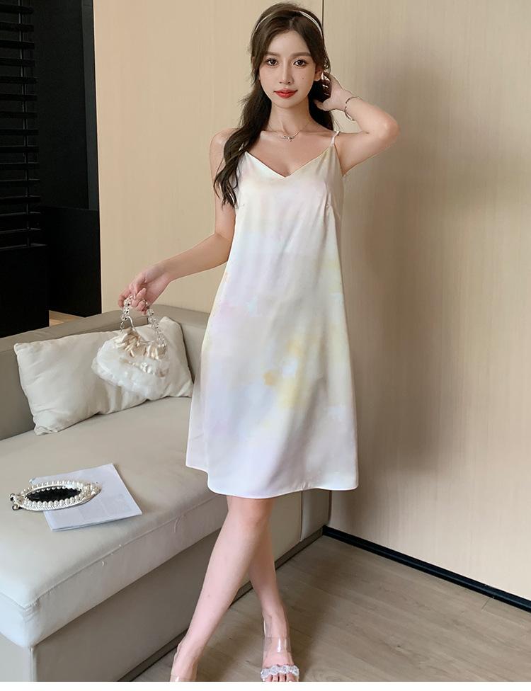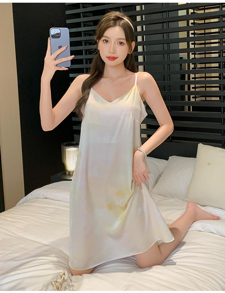 Camisón de seda de hielo para mujer, de verano, fino, sexy, con tirantes finos, espalda descubierta, escote en V, recto, pijamas al por mayor