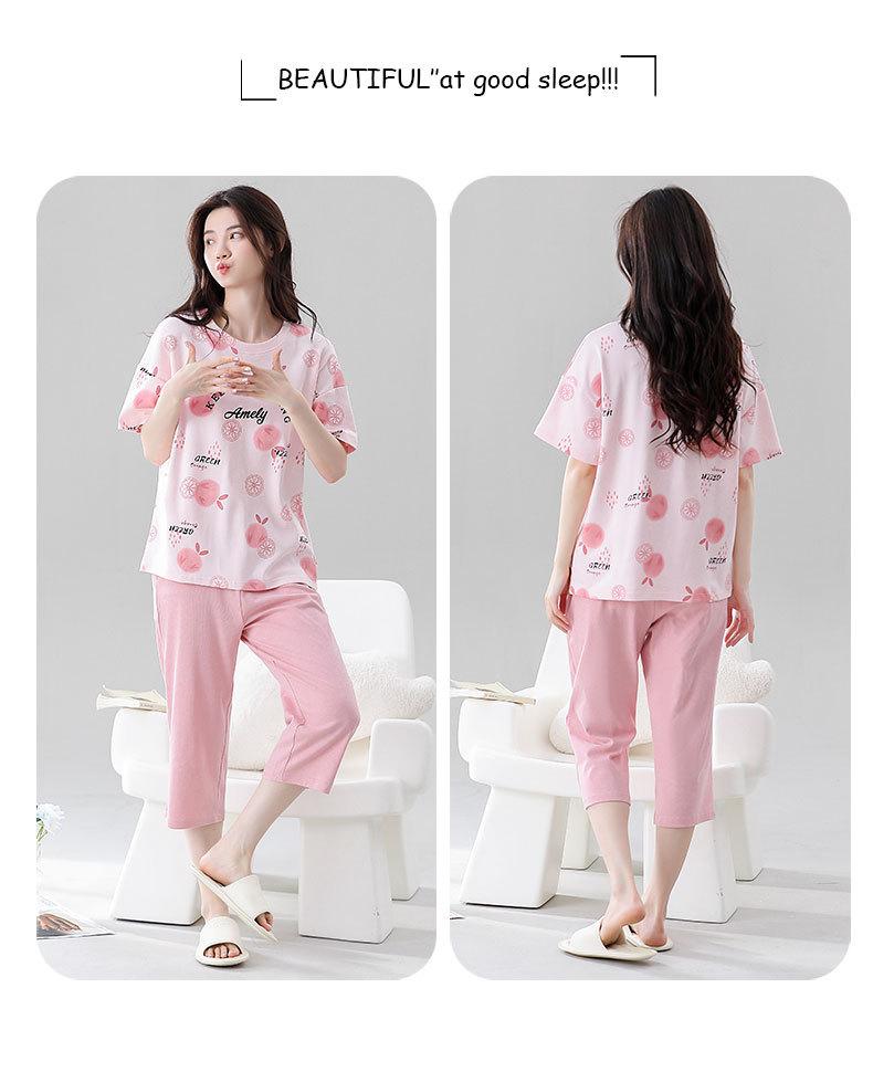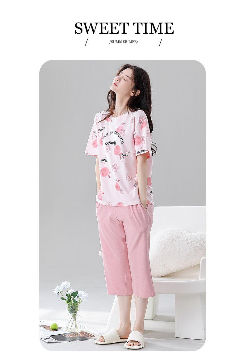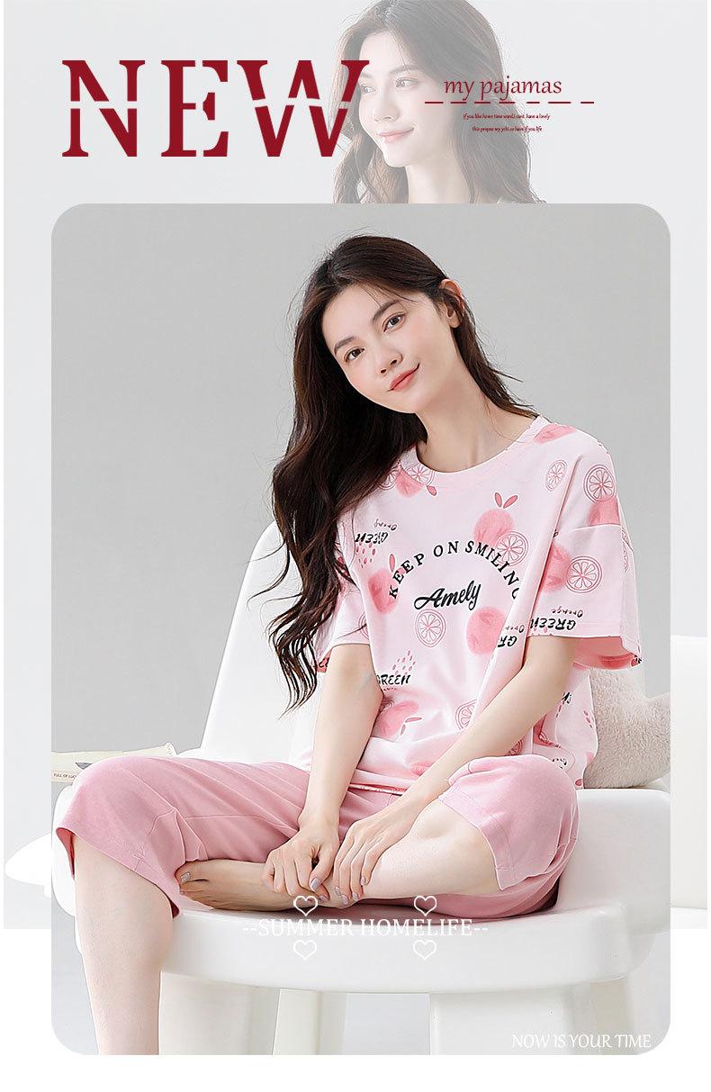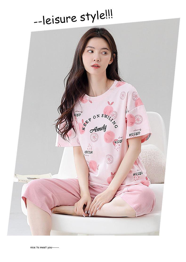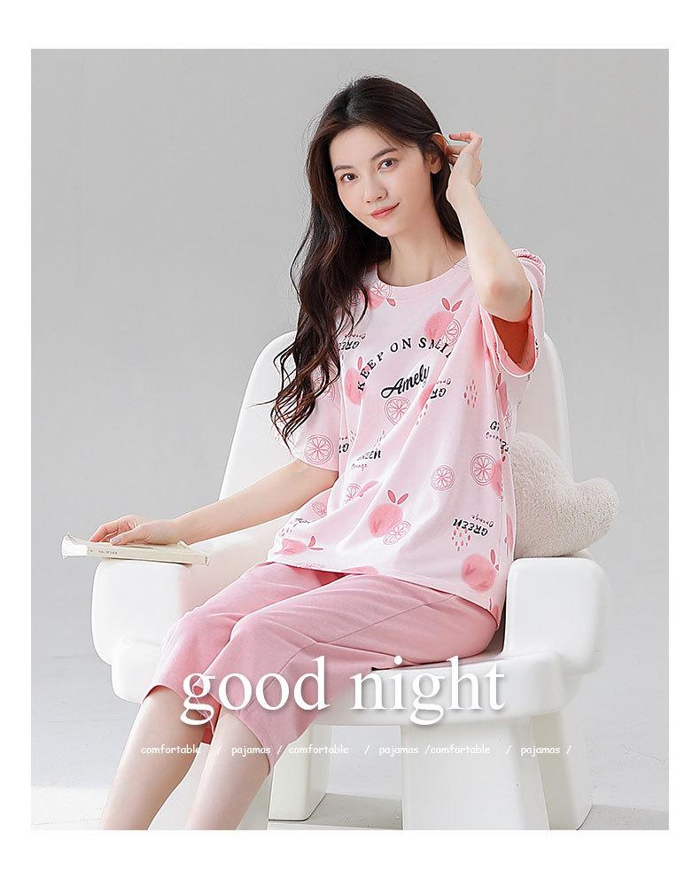 Pijama de verano para mujer, de algodón, de manga corta, con pantalón corto, con estampado sencillo, informal, para el hogar, de verano