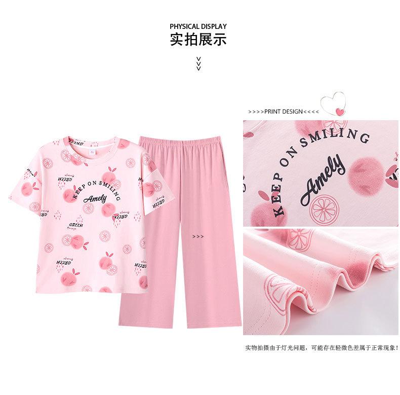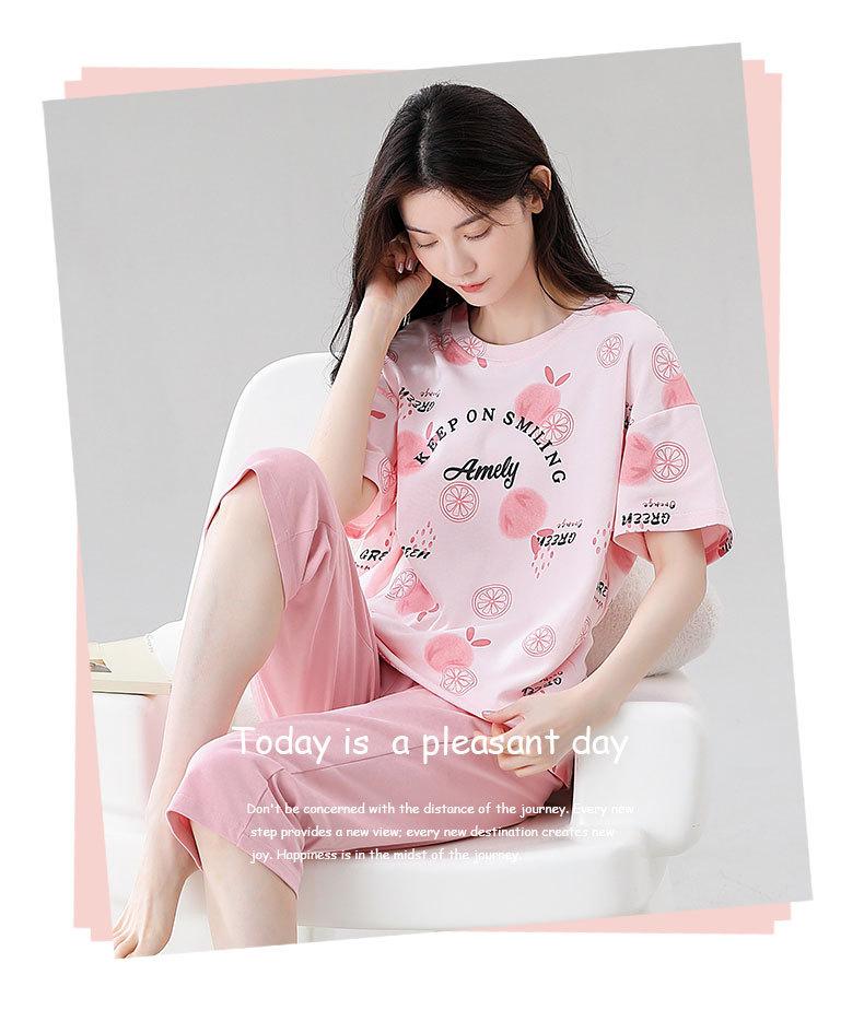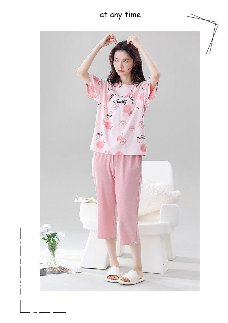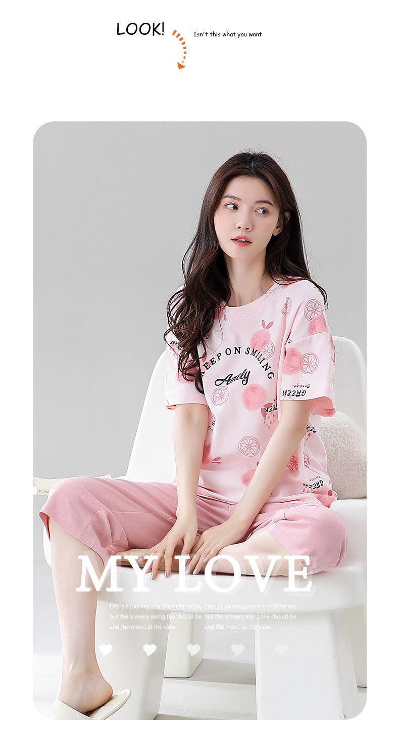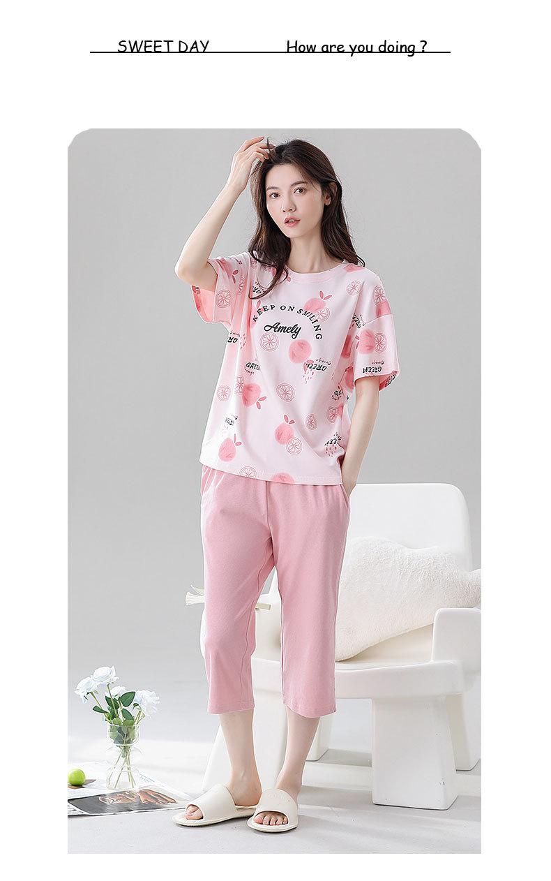 Pijama de verano para mujer, de algodón, de manga corta, con pantalón corto, con estampado sencillo, informal, para el hogar, de verano