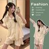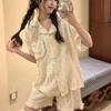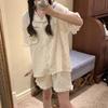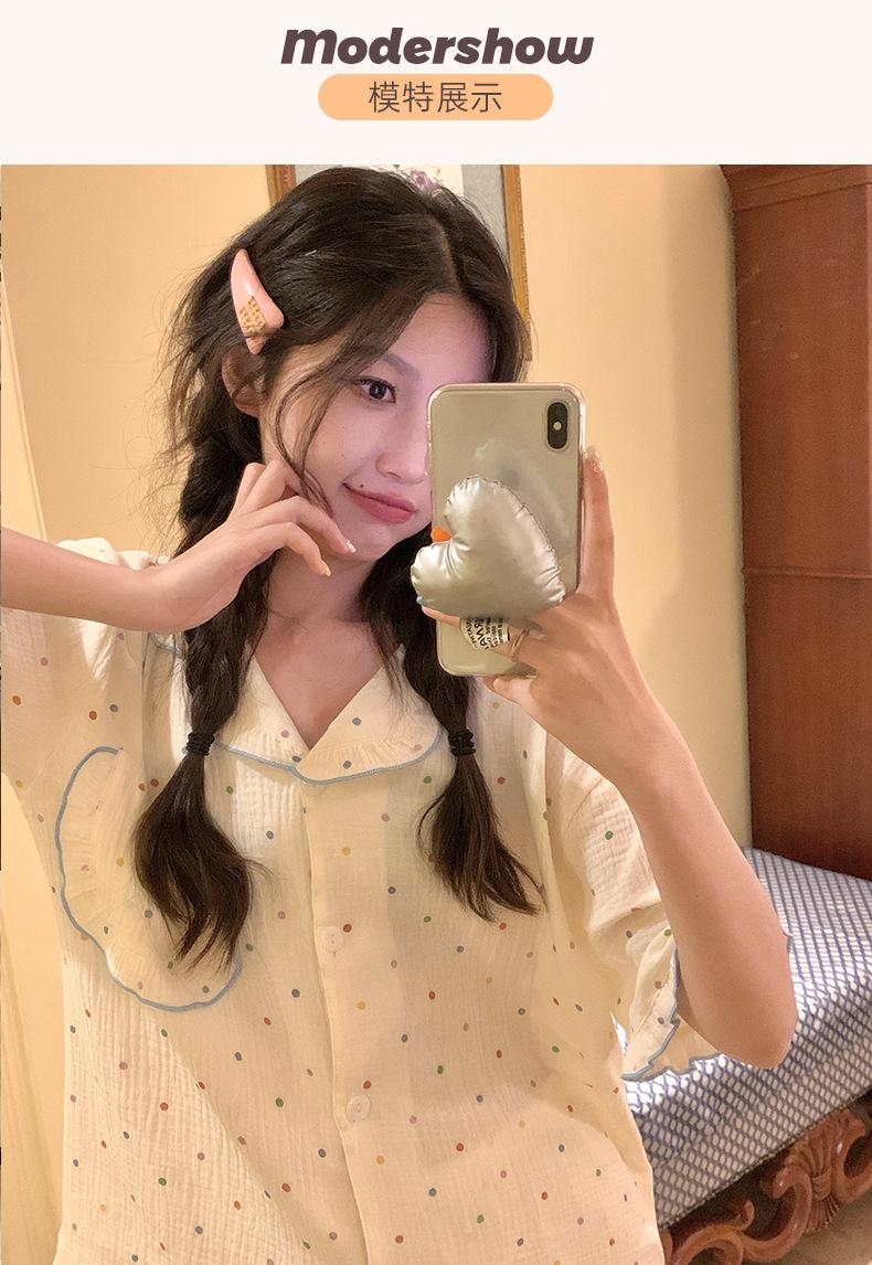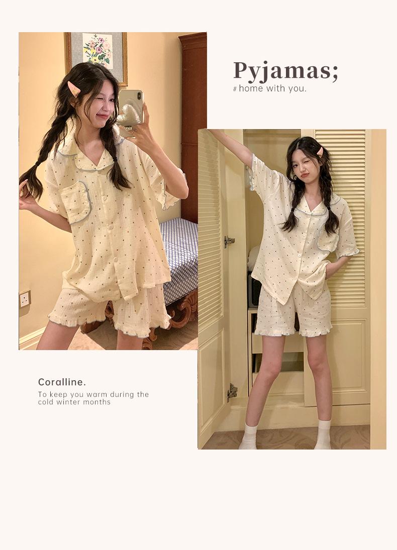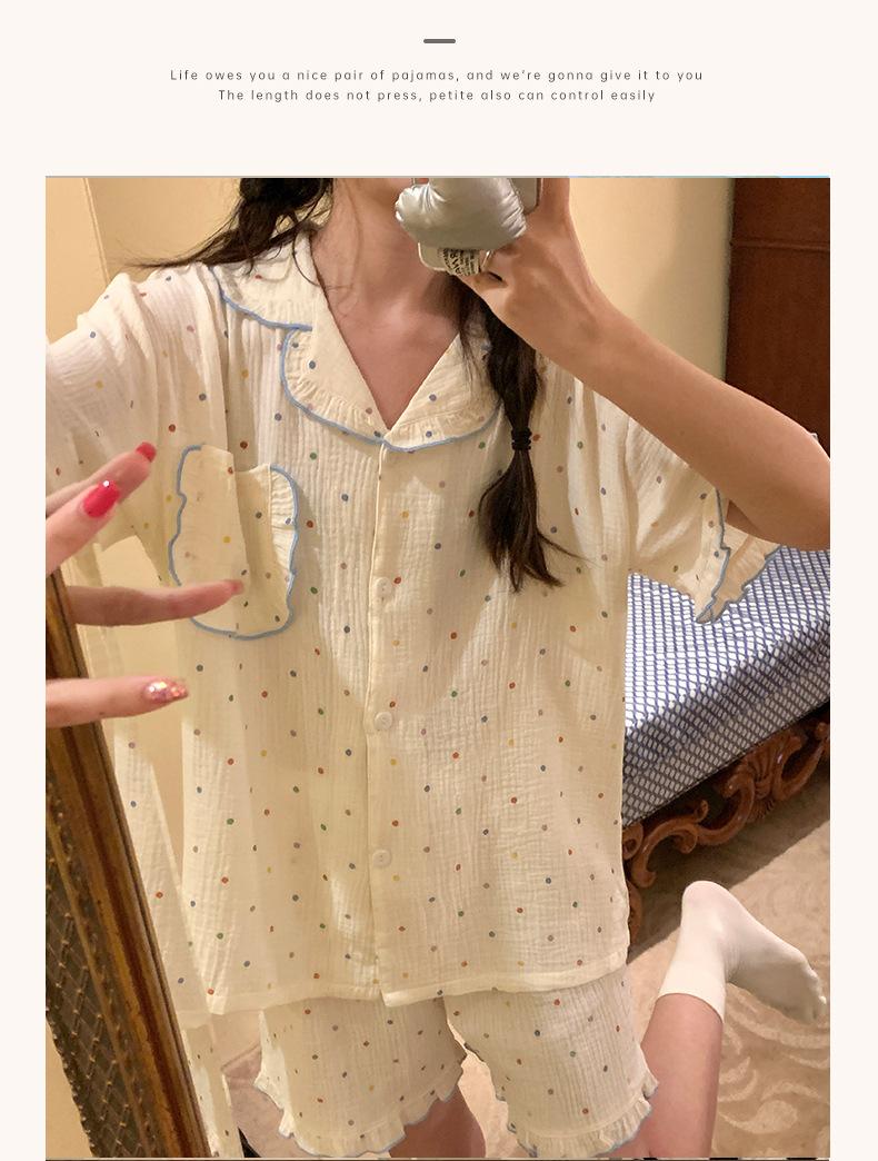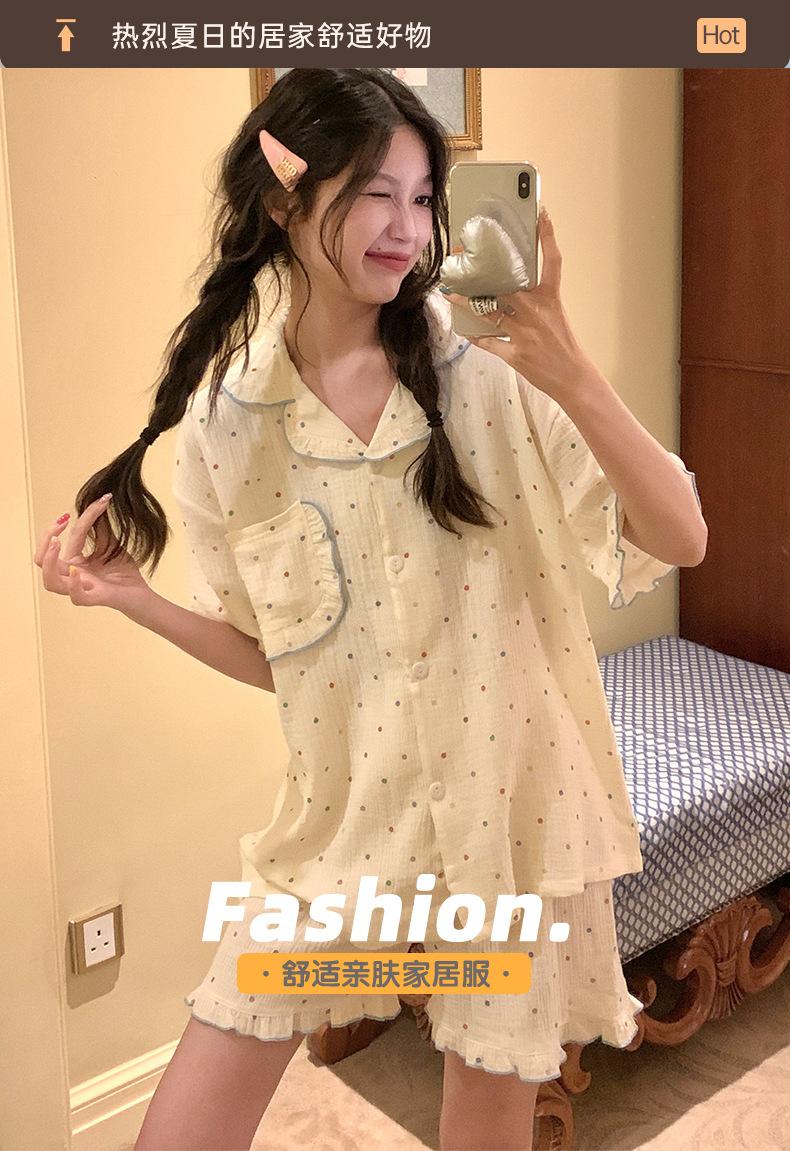 Pijama de lunares polares de estilo coreano para mujer, de verano, de manga corta, con pantalones cortos y cárdigan con volantes, conjunto de ropa para el hogar