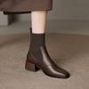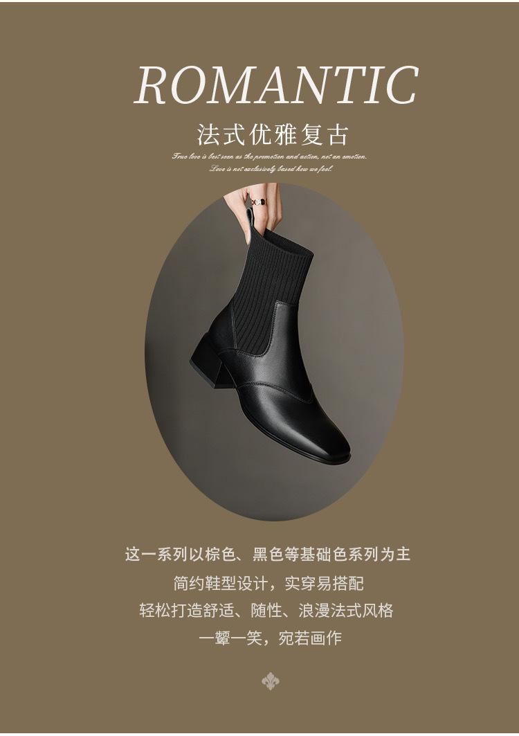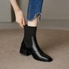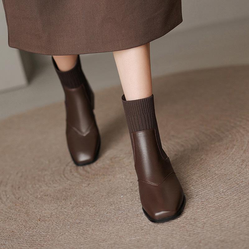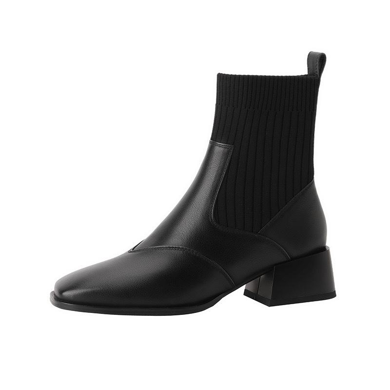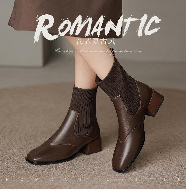 Calcetines finos elásticos de manga tejida Botas retro de punta cuadrada Tacón medio grueso Botines al tobillo para mujer Otoño e invierno Nuevas y desnudas botas