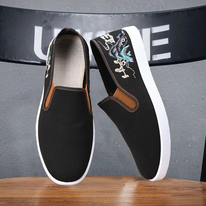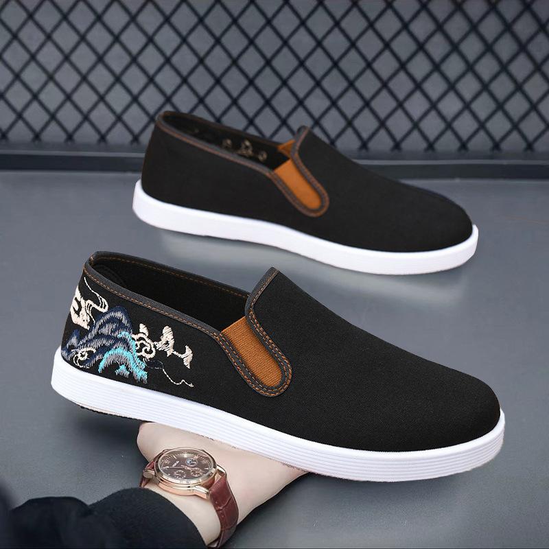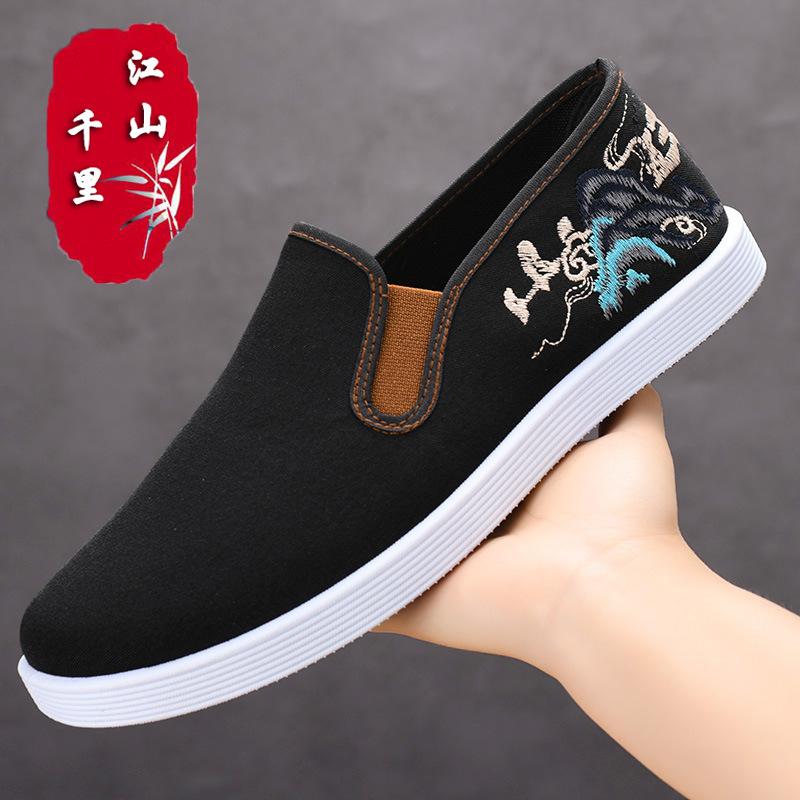 Zapatos de tela antiguos de Beijing, zapatos de tela sin cordones para hombre, zapatos de trabajo para hombre, zapatos casuales transpirables de suela suave, zapatos de lona para papá