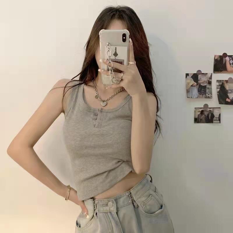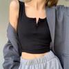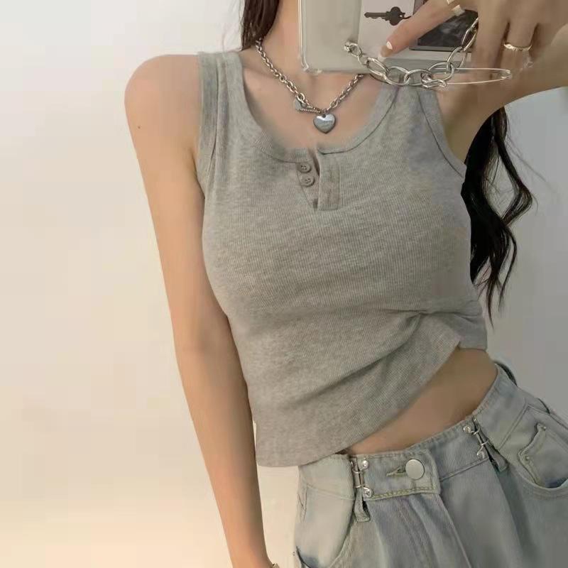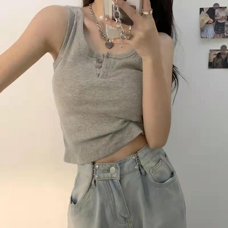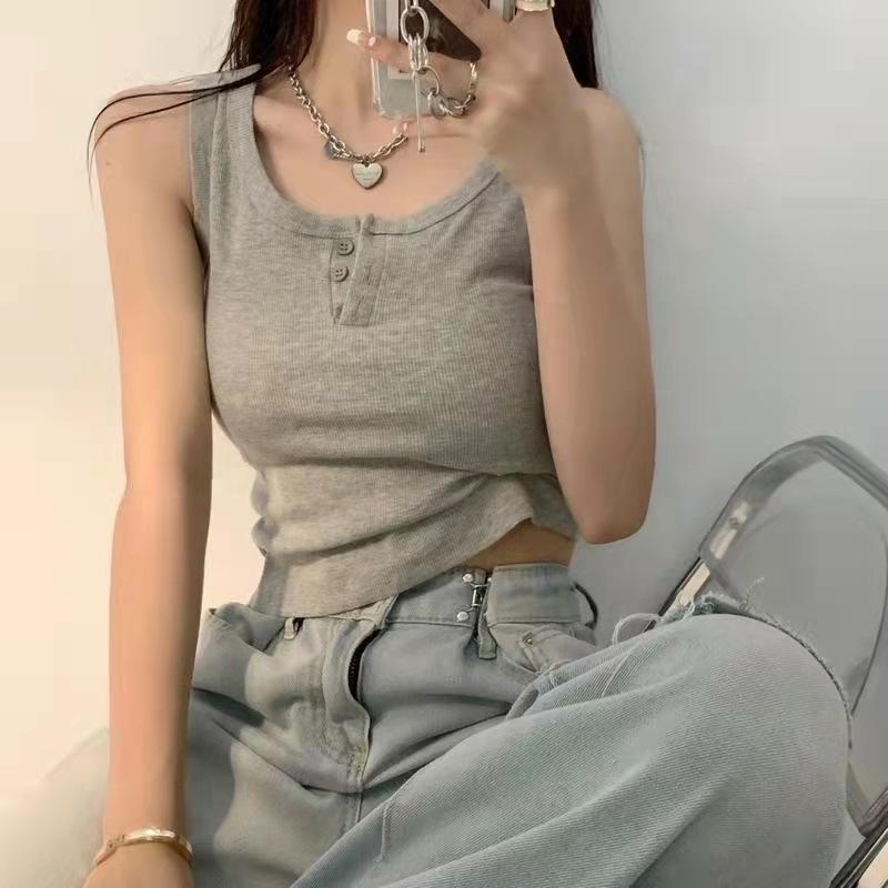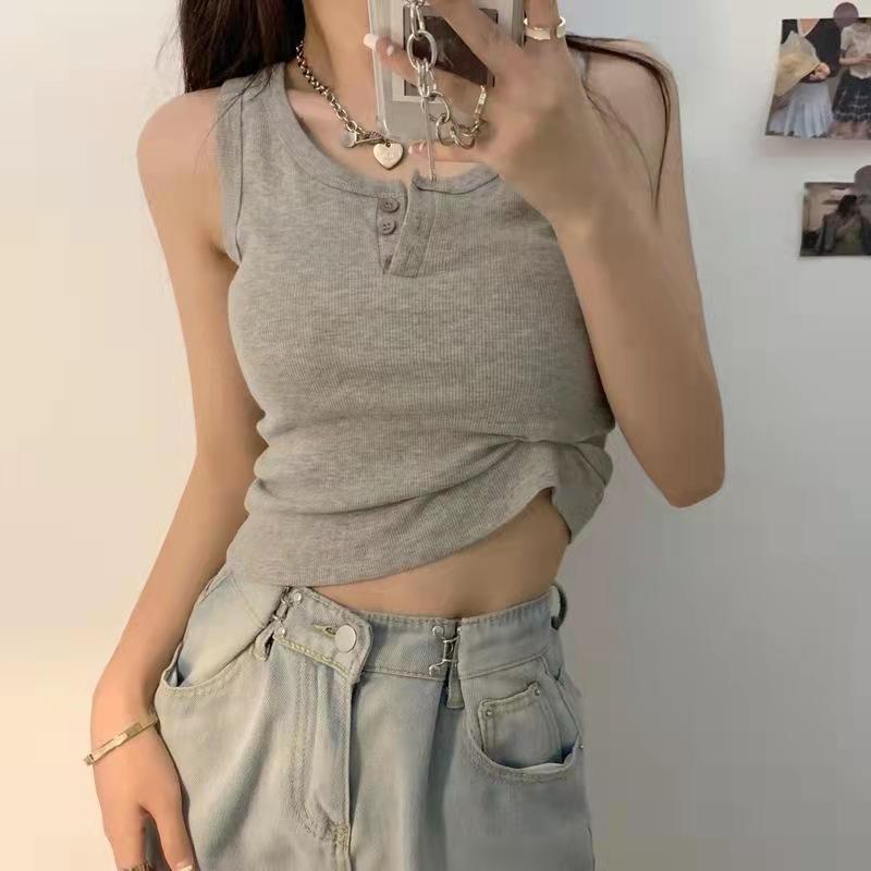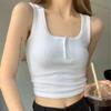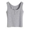 Chaleco elástico de punto con botones para mujer, prenda exterior corta, moderna, de corte entallado y sin mangas.