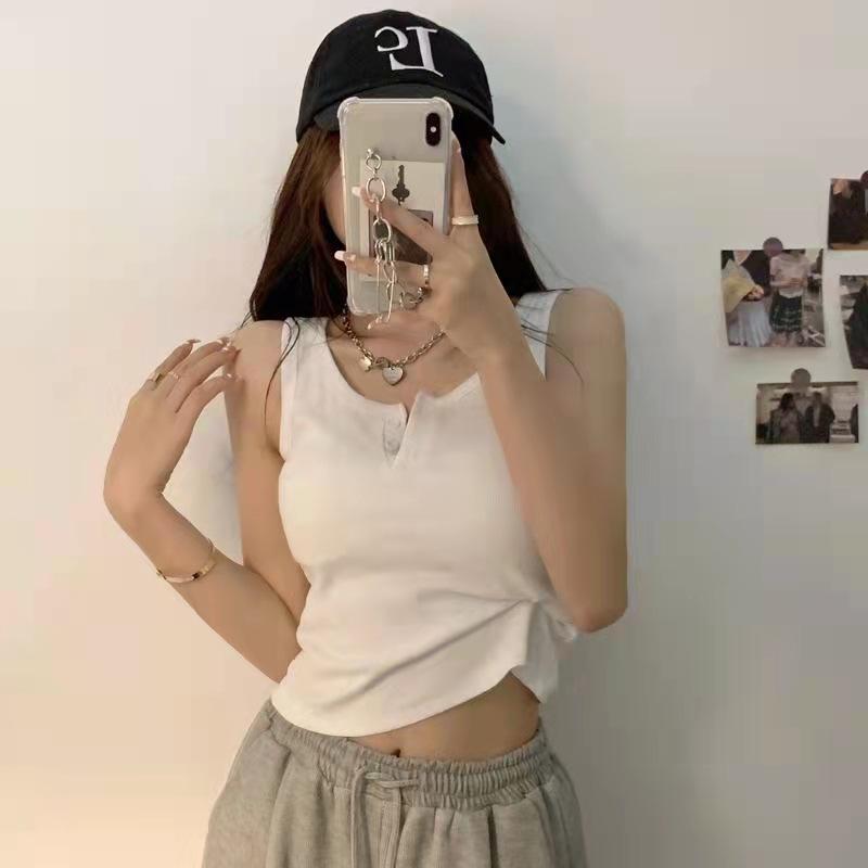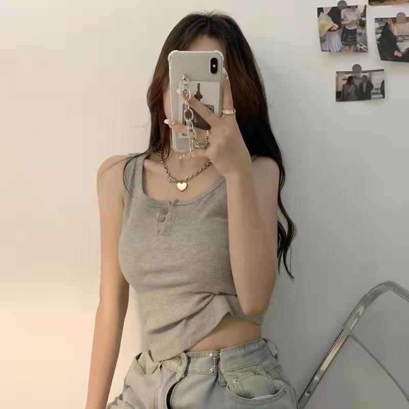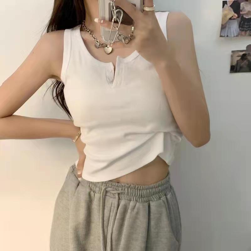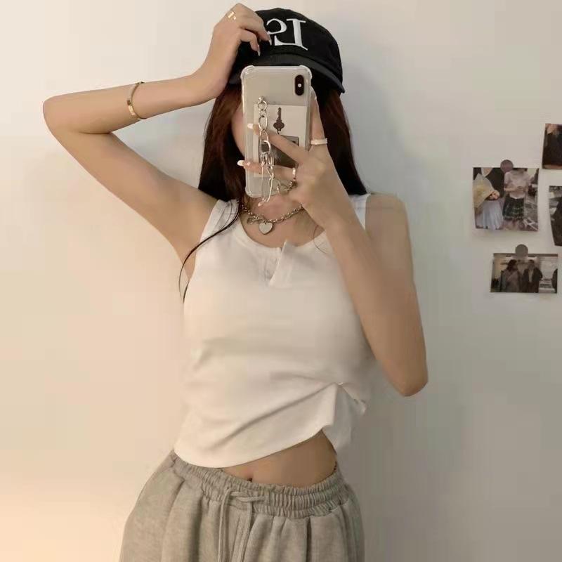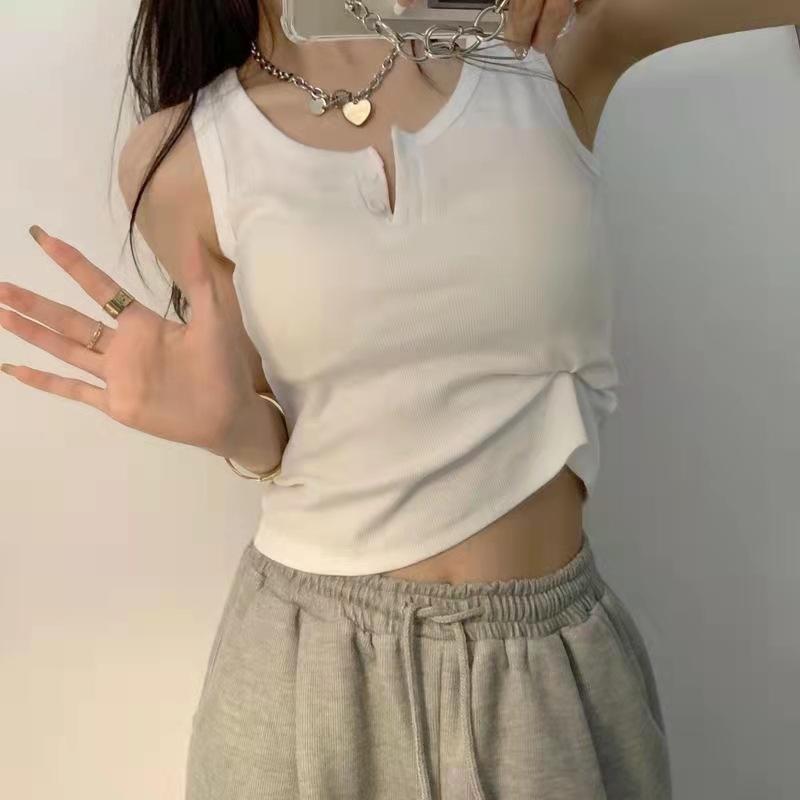 Chaleco elástico de punto con botones para mujer, prenda exterior corta, moderna, de corte entallado y sin mangas.