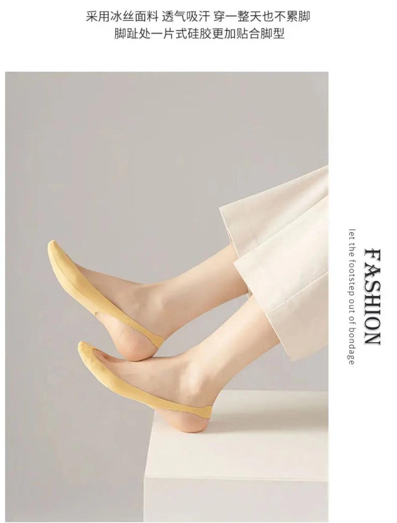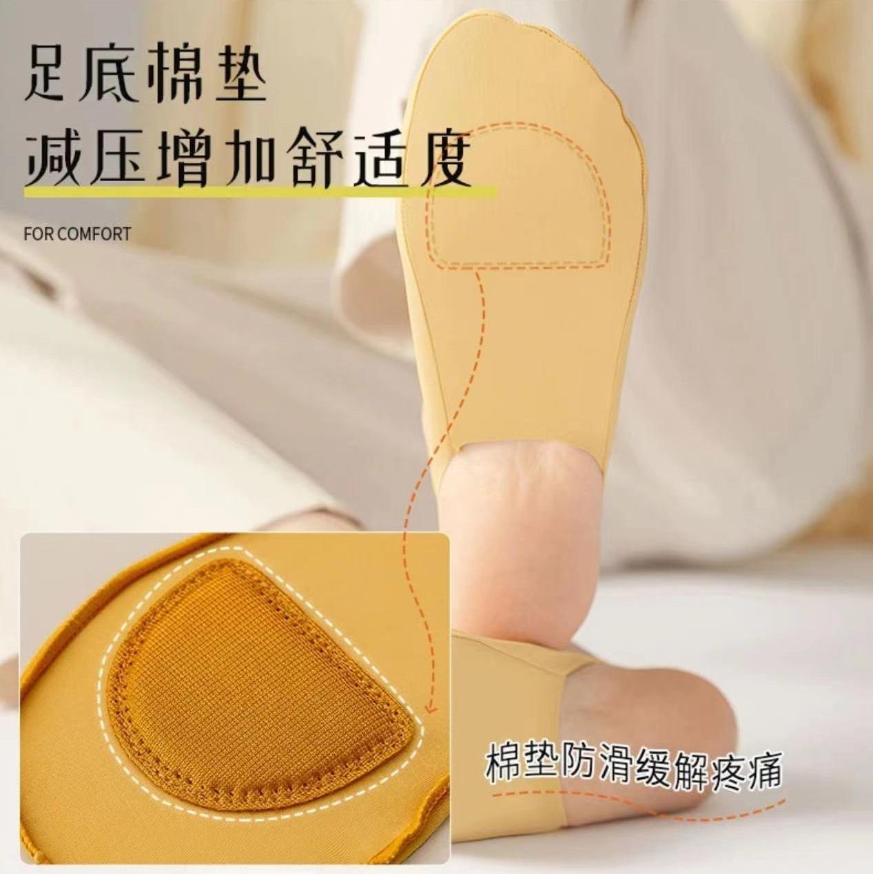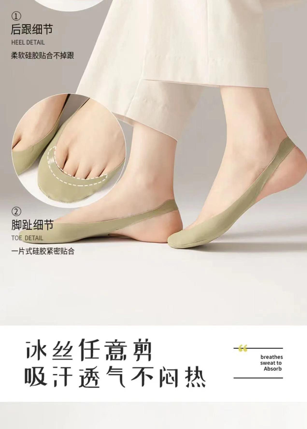 Calcetines náuticos ultrafinos de verano de seda helada para mujer, con huecos, de tacón alto, cortos, con almohadilla frontal antideslizante de silicona, invisibles.