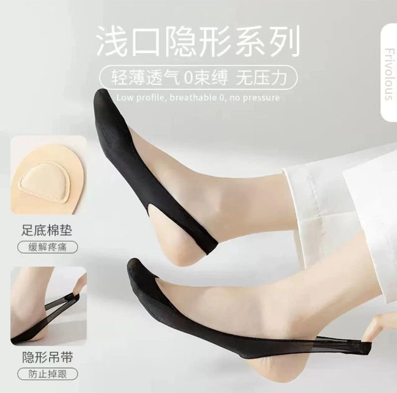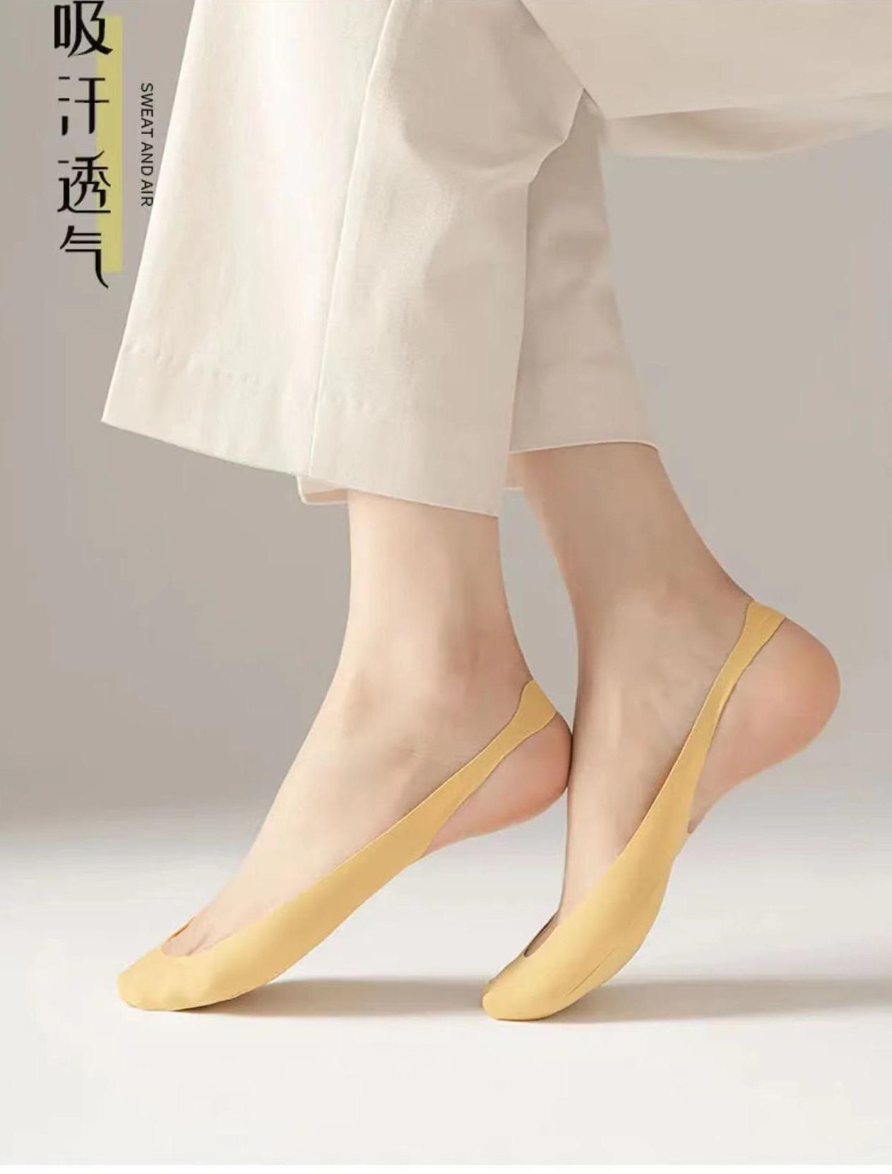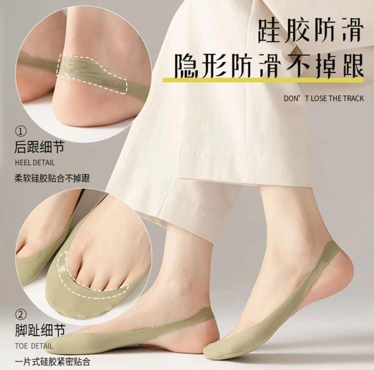 Calcetines náuticos ultrafinos de verano de seda helada para mujer, con huecos, de tacón alto, cortos, con almohadilla frontal antideslizante de silicona, invisibles.