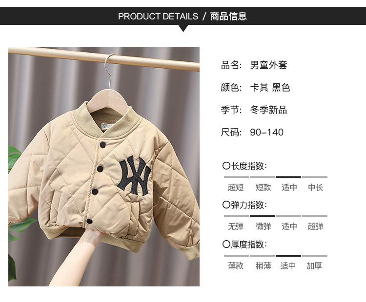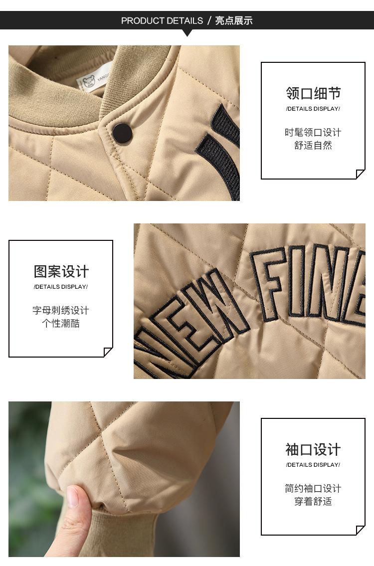 Chaqueta para niño estilo otoño e invierno Chaqueta de béisbol para niños Abrigo acolchado ligero de algodón 2025 Nuevo estilo Abrigo de algodón moderno para bebé