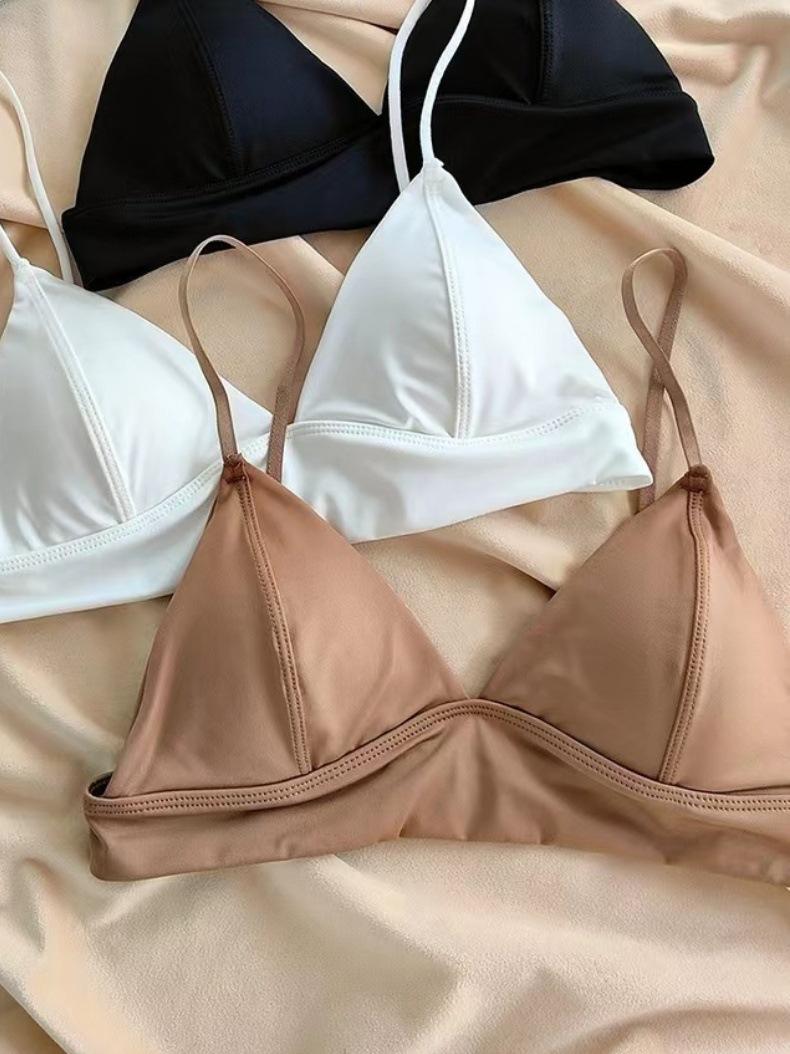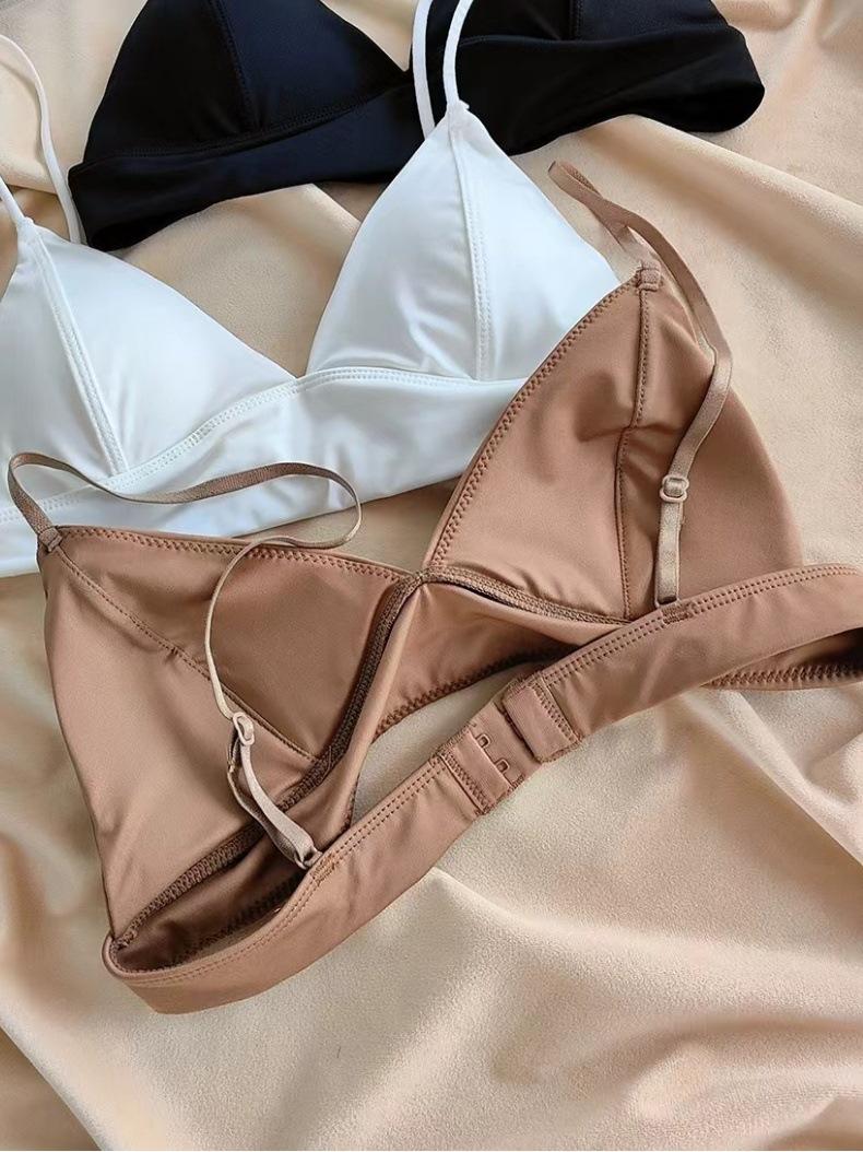 Íntimos de Copa Triangular Francesa Europea y Americana para Mujer, de Alta Gama, Cómodos, Sexys, Espalda Hermosa, Sin Aros, Sin Marcas, Set de Brasier para Senos Pequeños