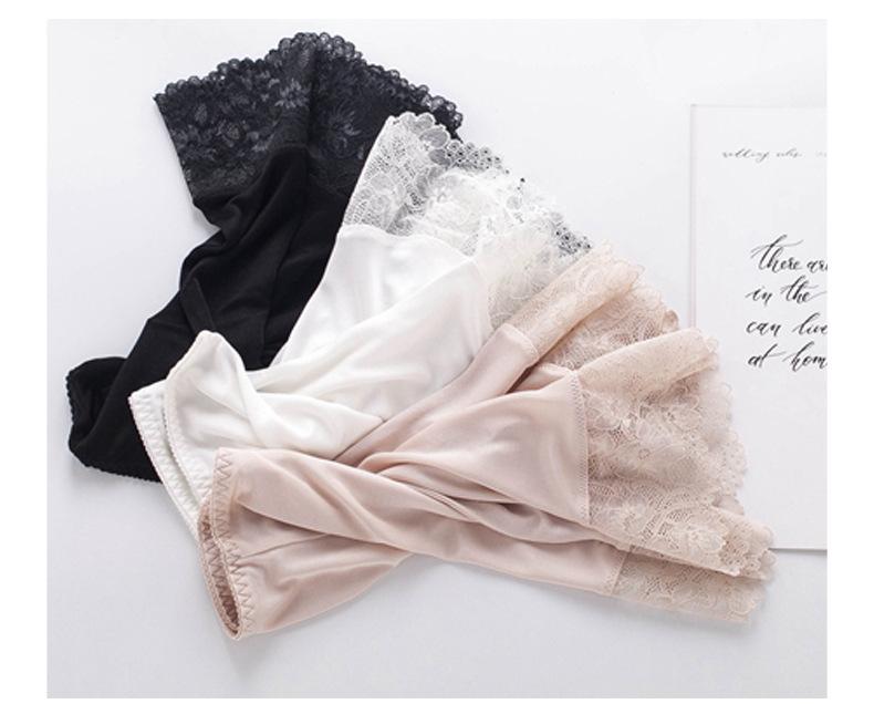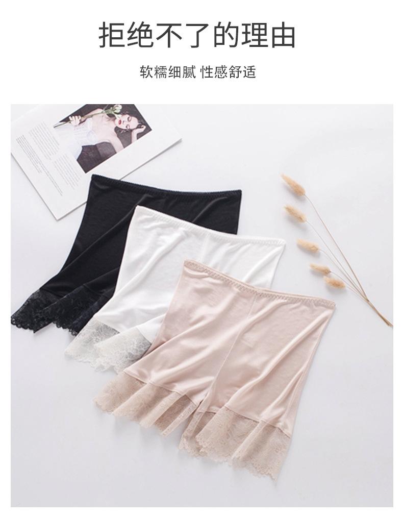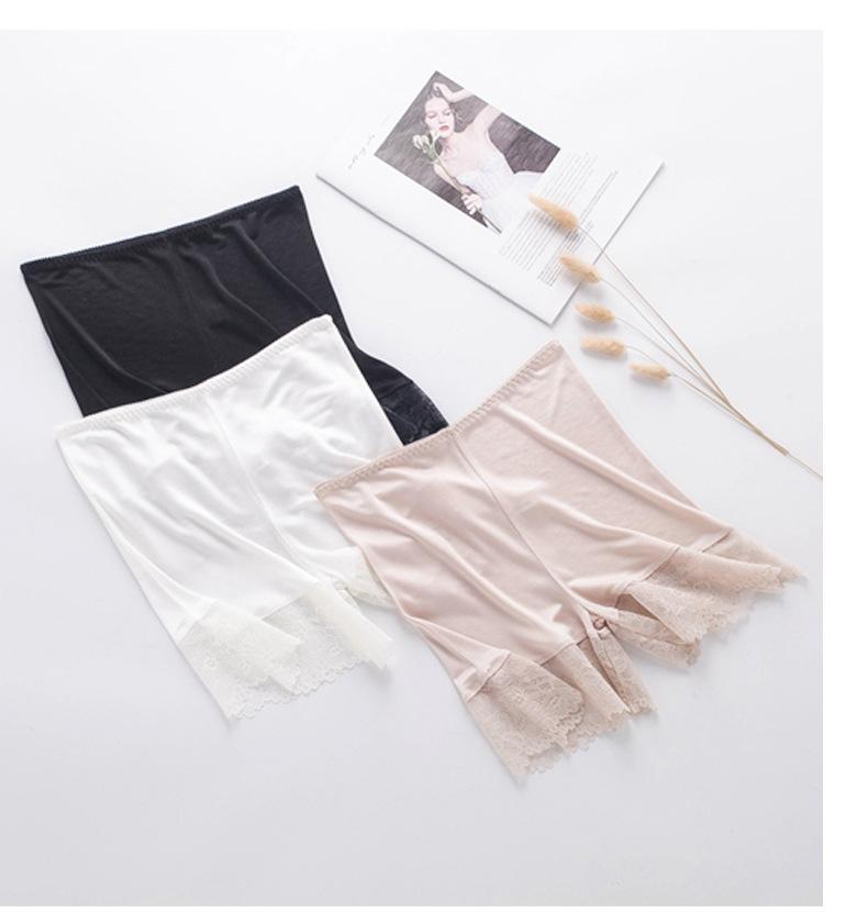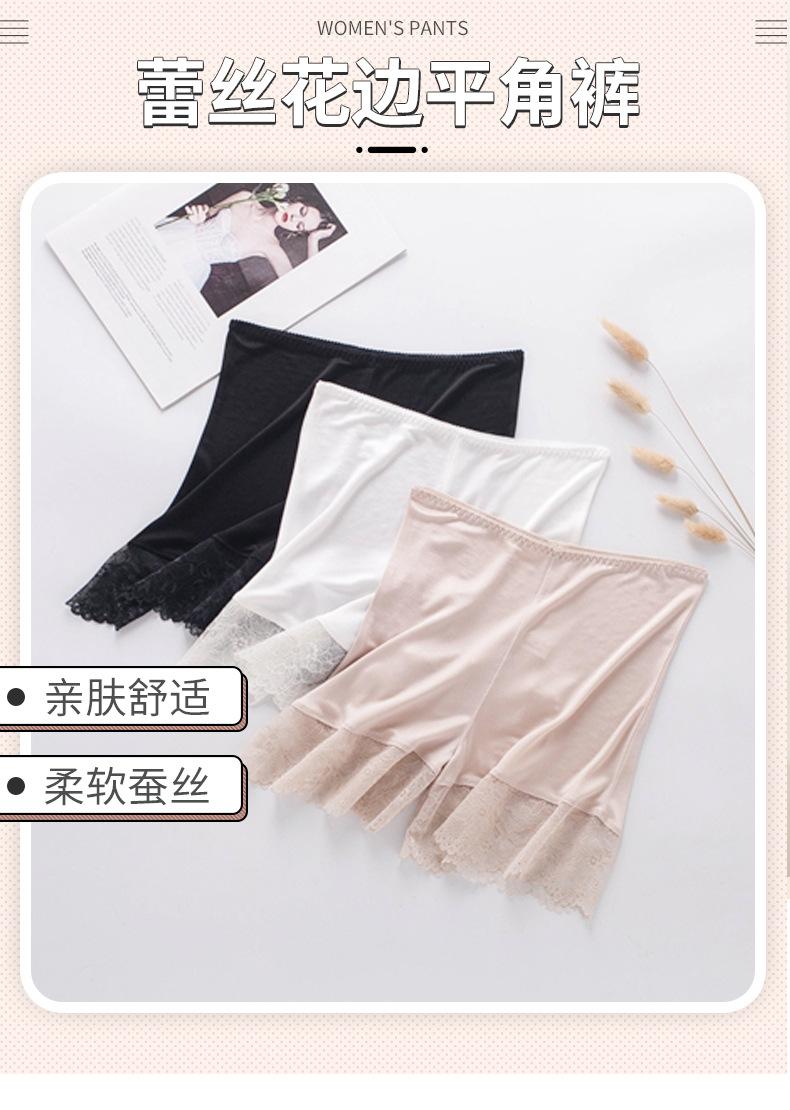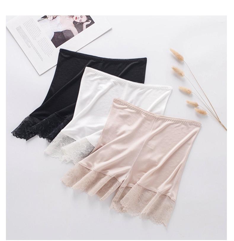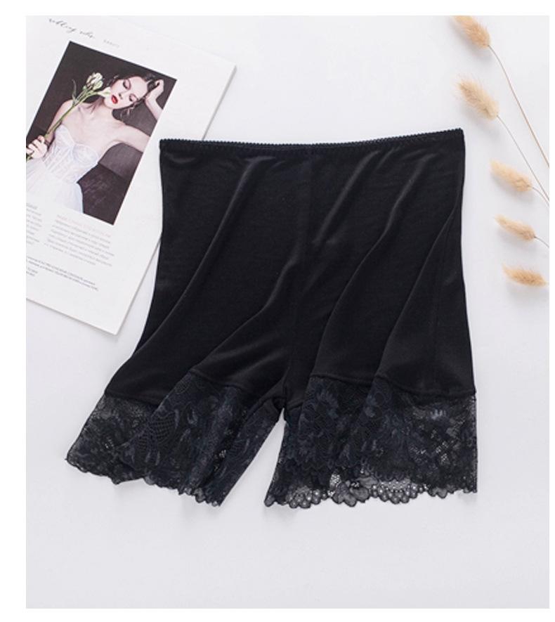 Pantalones de seguridad finos de seda morera sin costuras para mujer, calzoncillos de seda con encaje elegante y sexy, leggings de cintura alta que no cuelgan.
