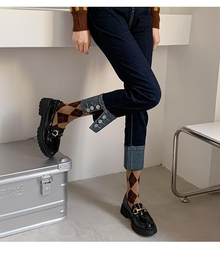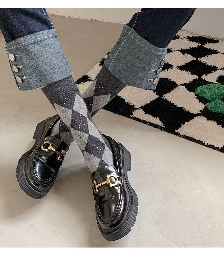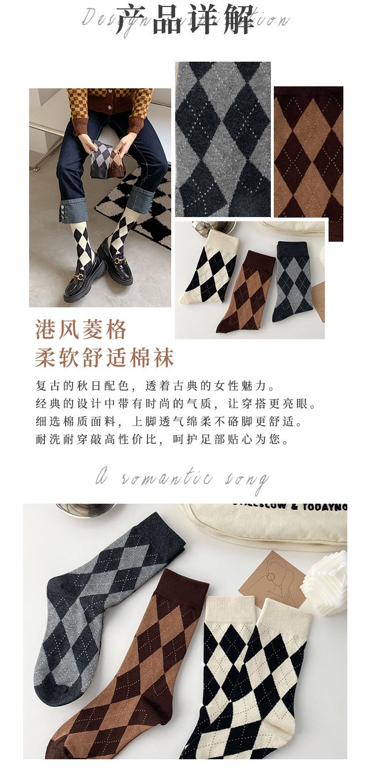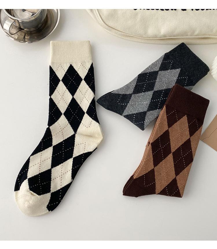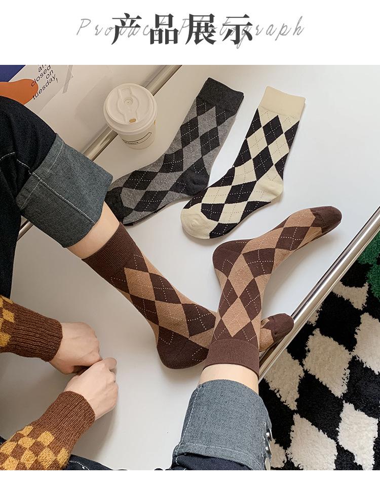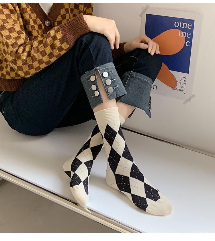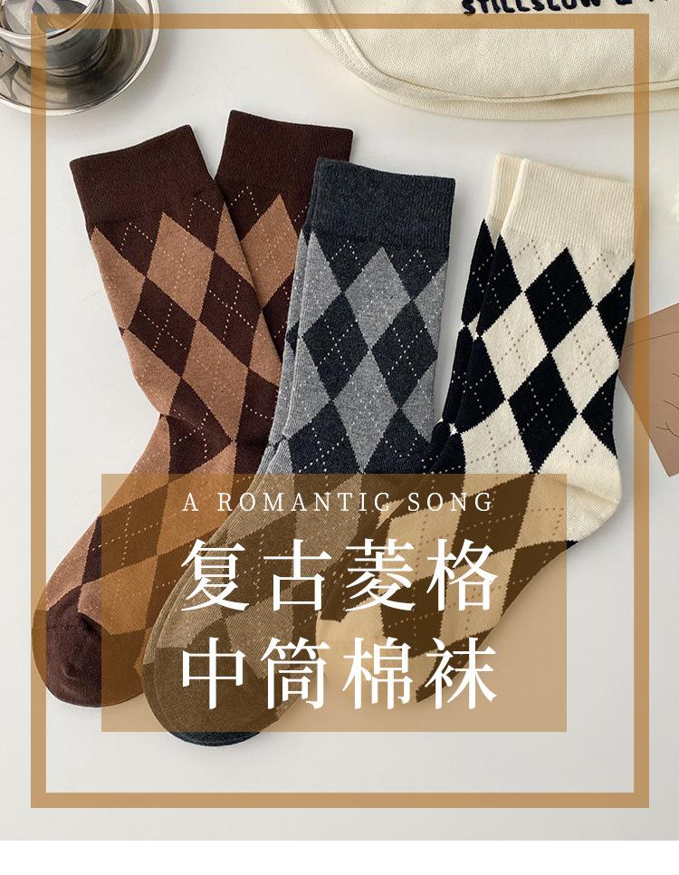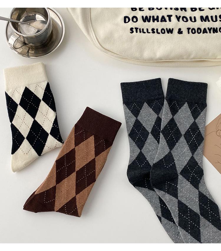Calcetines de Media Caña para Mujer de Primavera y Verano, Cuadros Diamante Japoneses Jk Retro Casual Versátiles al Por Mayor, Absorbentes del Sudor