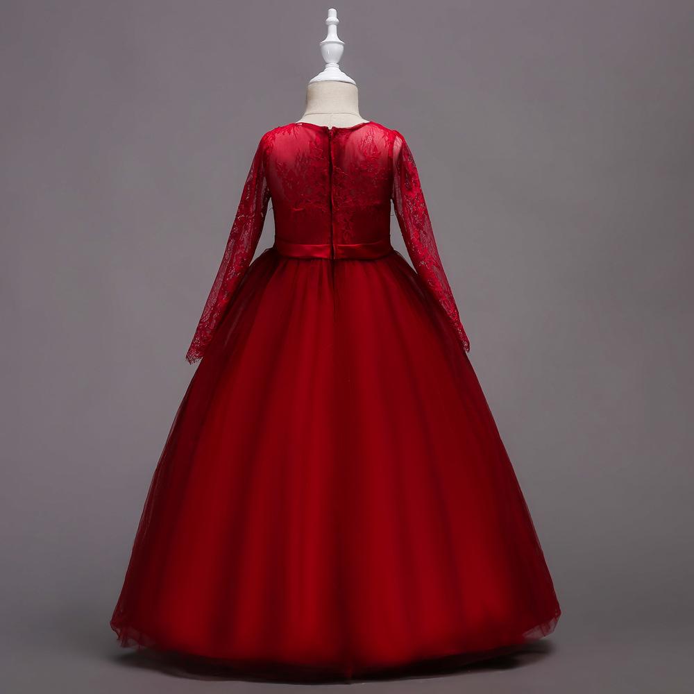 Vestido para niños, vestido de encaje de manga larga para niñas europeas y americanas, vestido infantil, vestido de novia para niñas de las flores