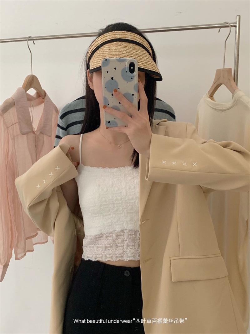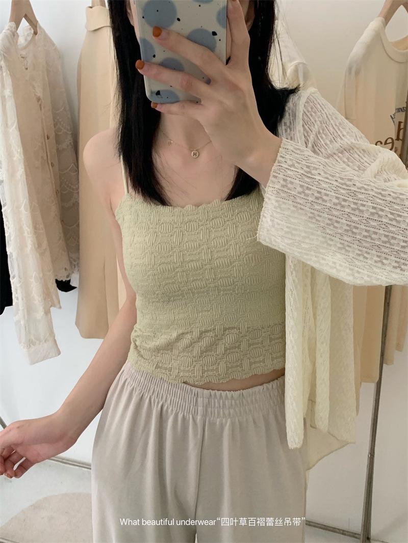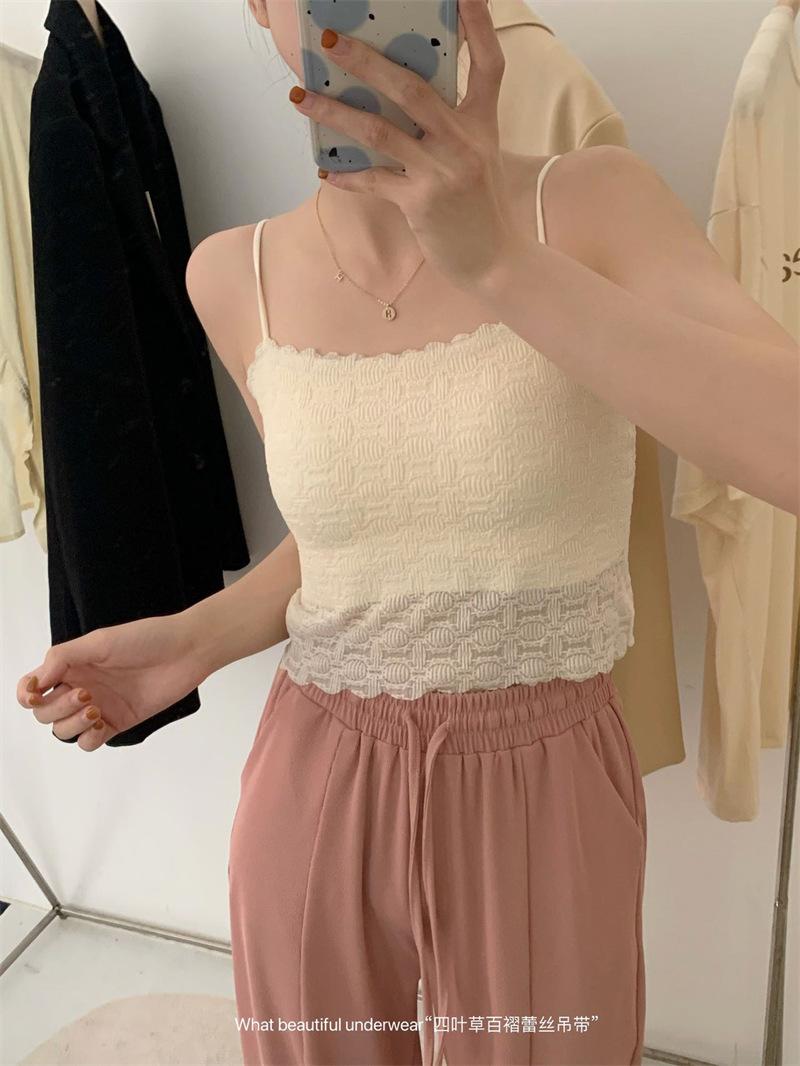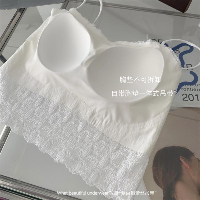 Camisola pequeña sexy de verano con parte superior de tubo y copa fija de mango, ropa interior de una pieza de seda fina sin aro de acero para mujer |