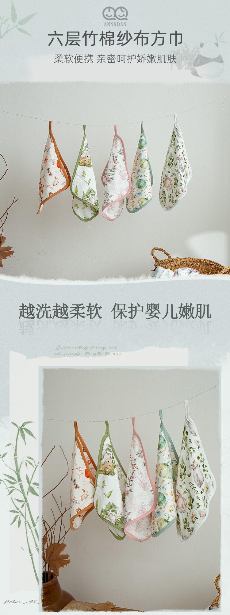 Toalla de saliva de gasa de seis capas especial para bebés Andan, toalla facial para bebés, toalla de baño de algodón de bambú, toalla cuadrada para recién nacidos