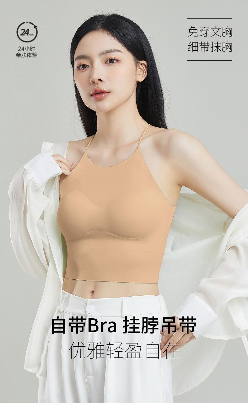 Top tubo ropa interior de mujer sin costuras espalda bonita anti-exposición pecho pequeño push up copa integrada sujetador verano delgado camisola para mujer