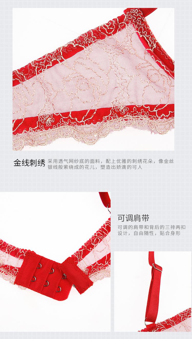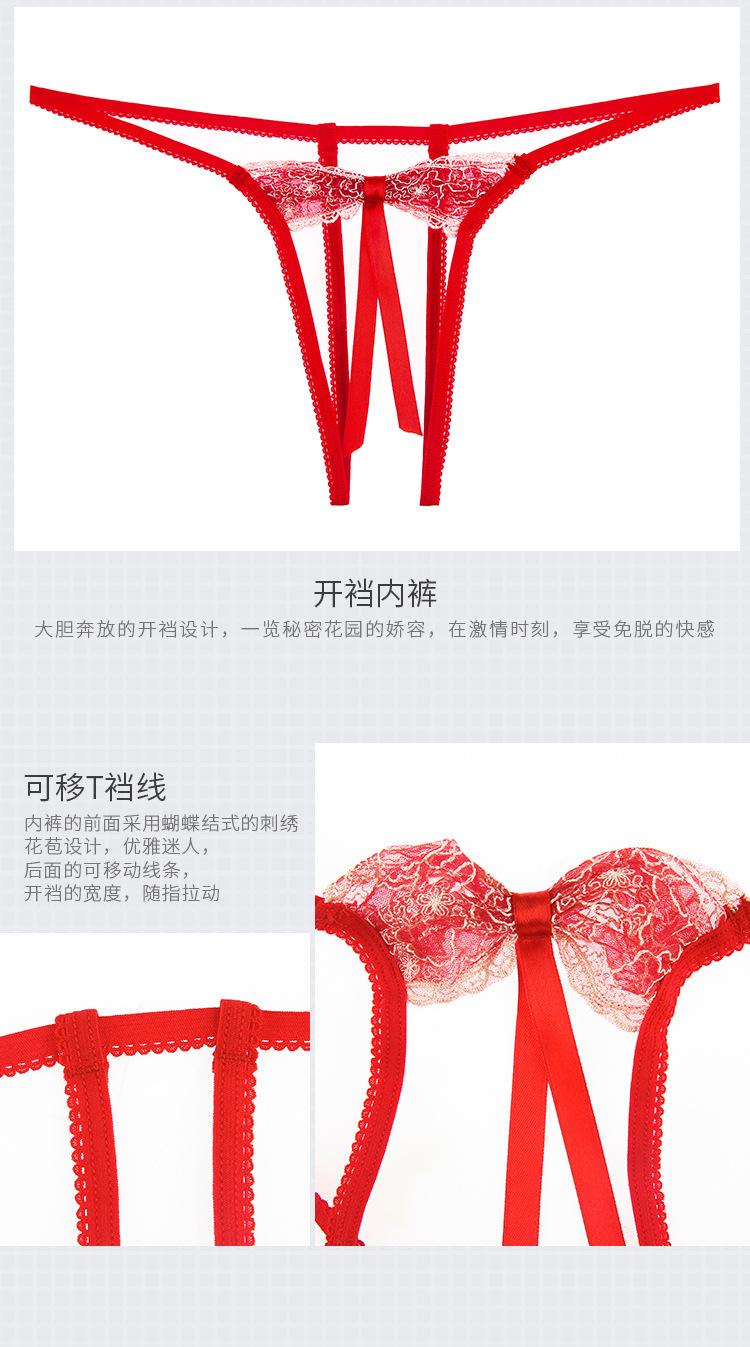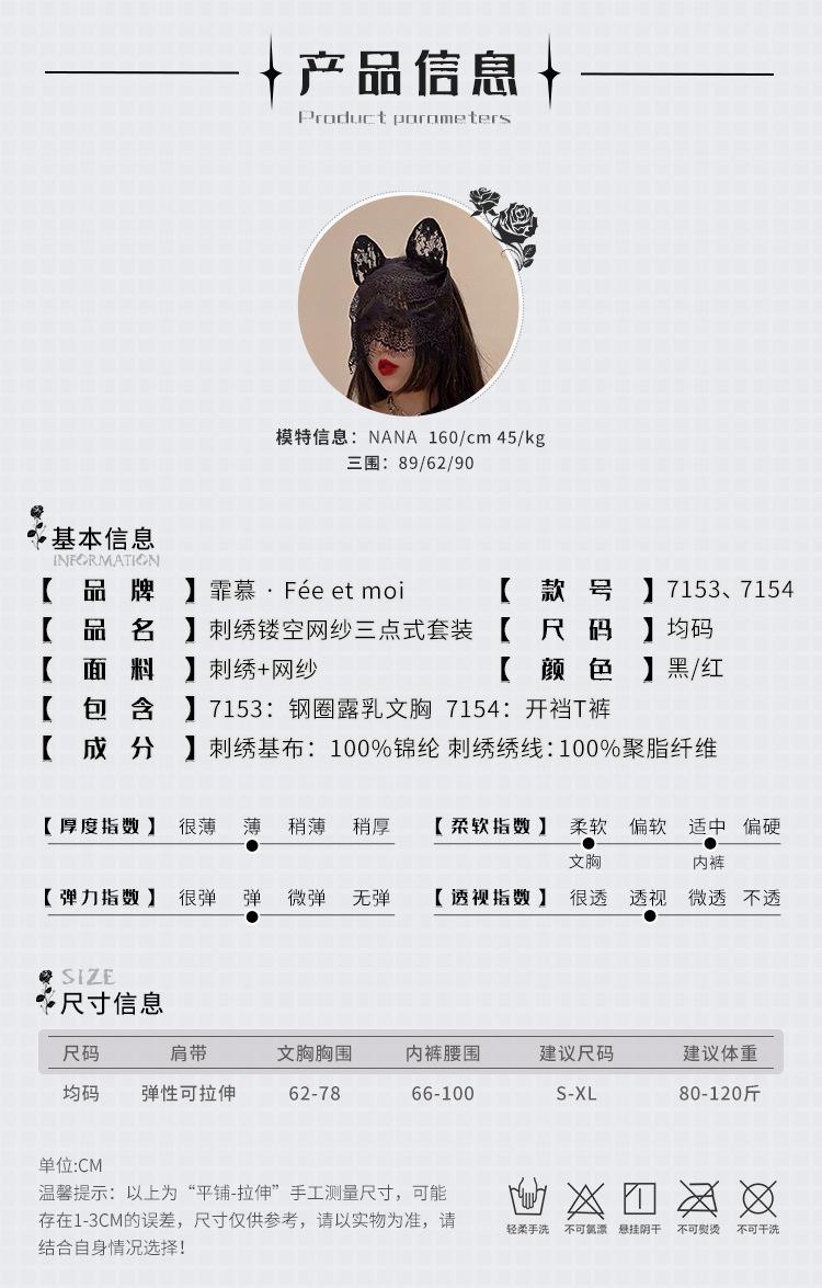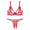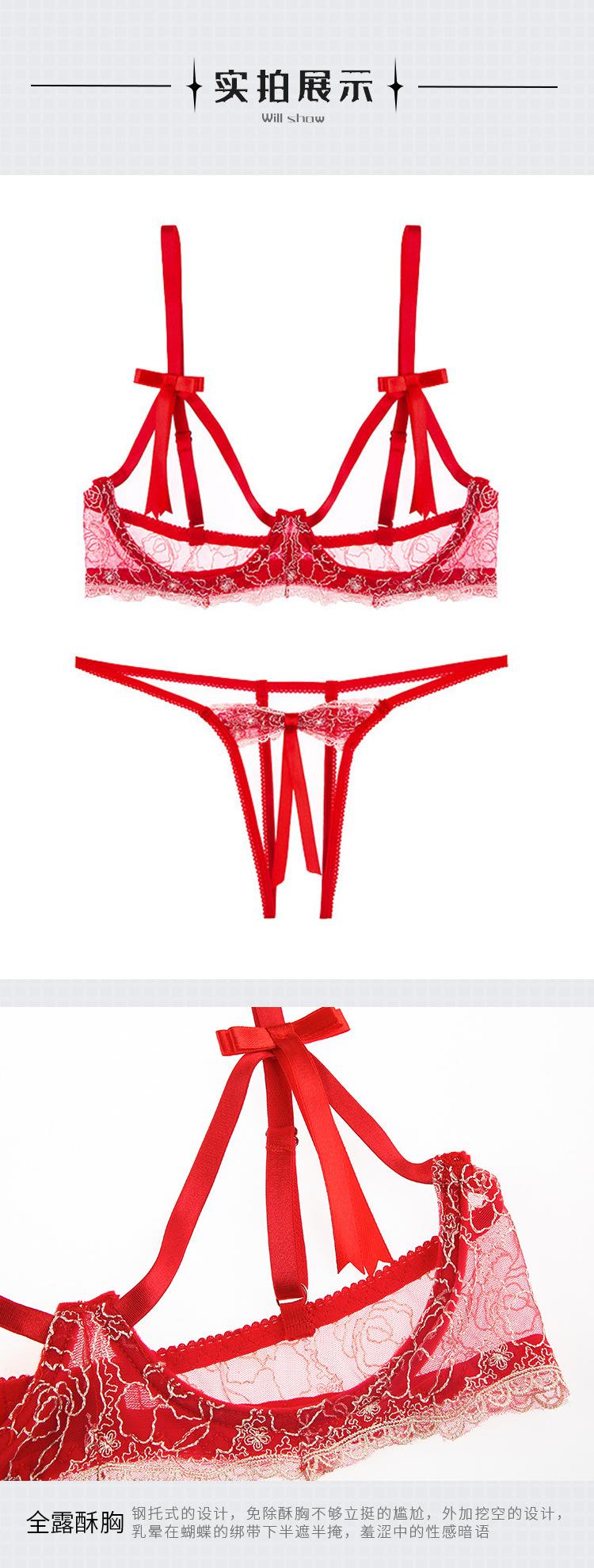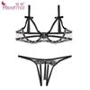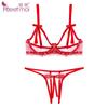 Ropa interior sexy Feimu con bordado de aro de acero hueco, sujetador abierto, traje sexy de tres puntos 7153+7154