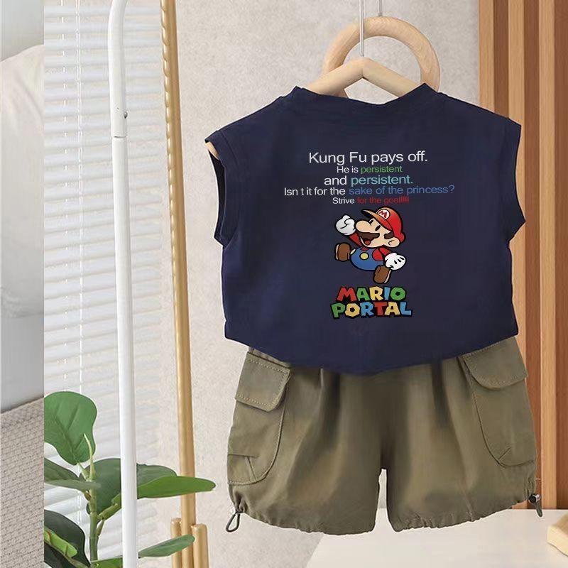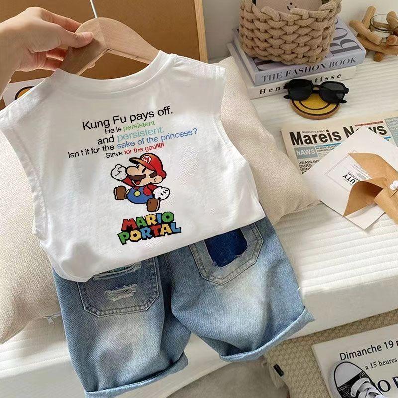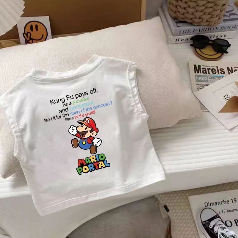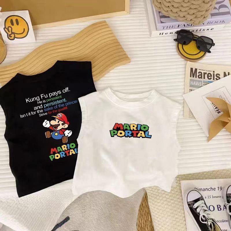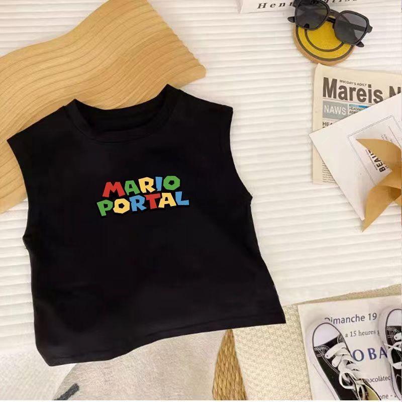 Camiseta de verano sin mangas con estampado de dibujos animados para niños y niñas, de algodón, estilo nuevo