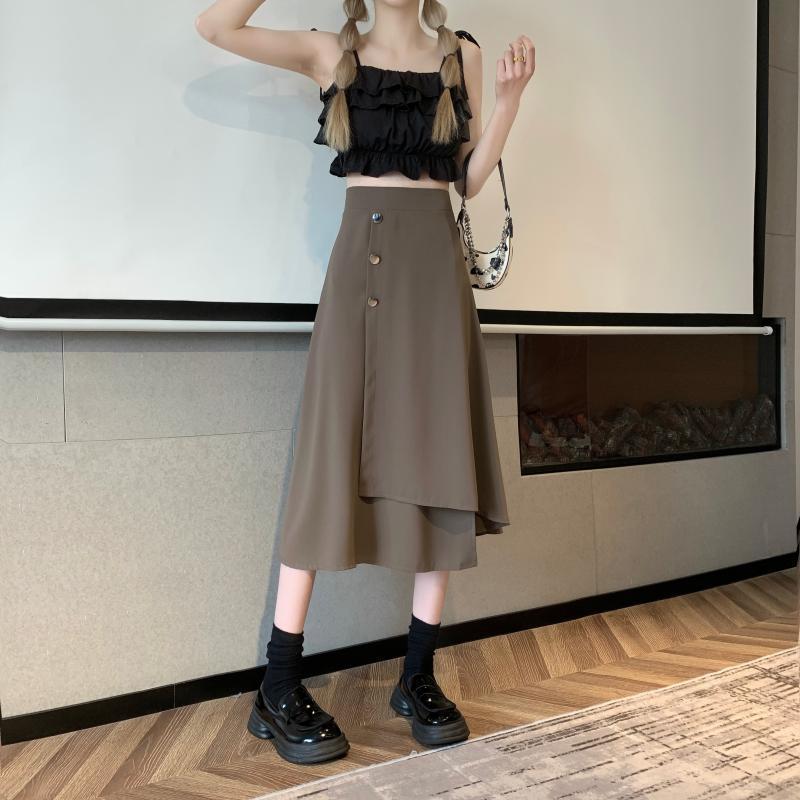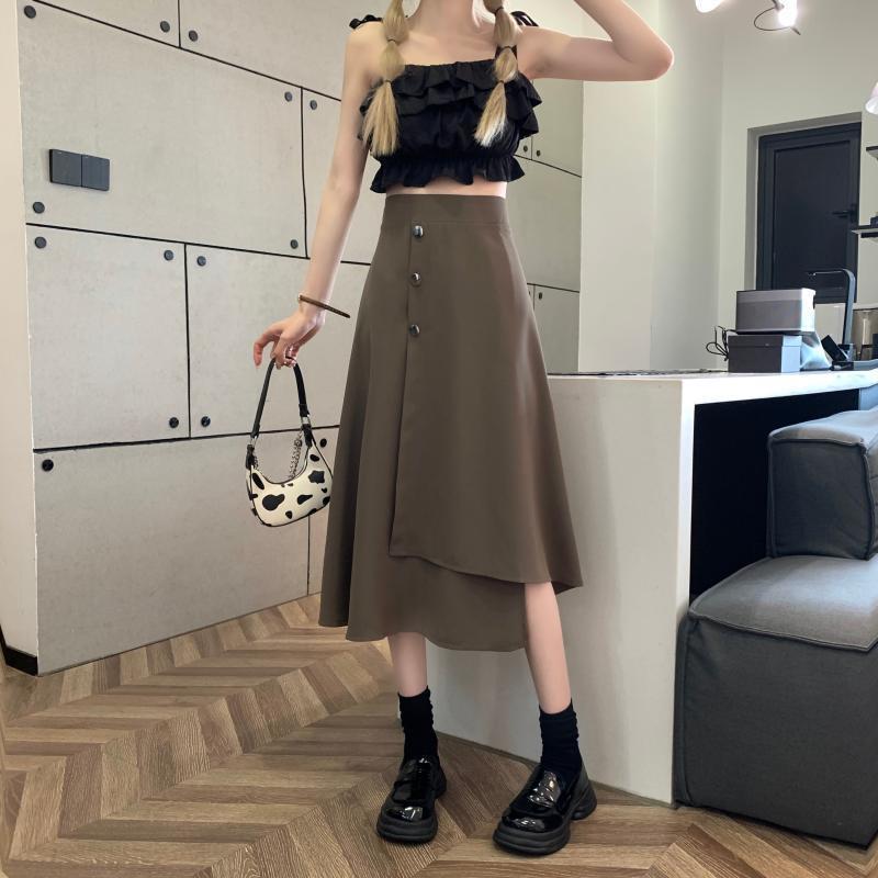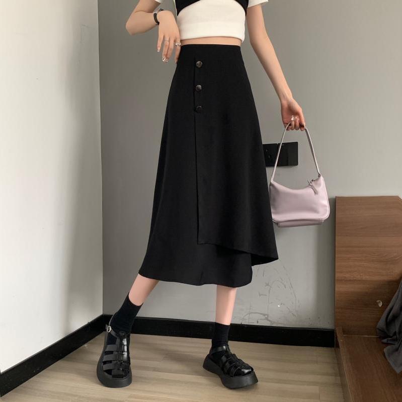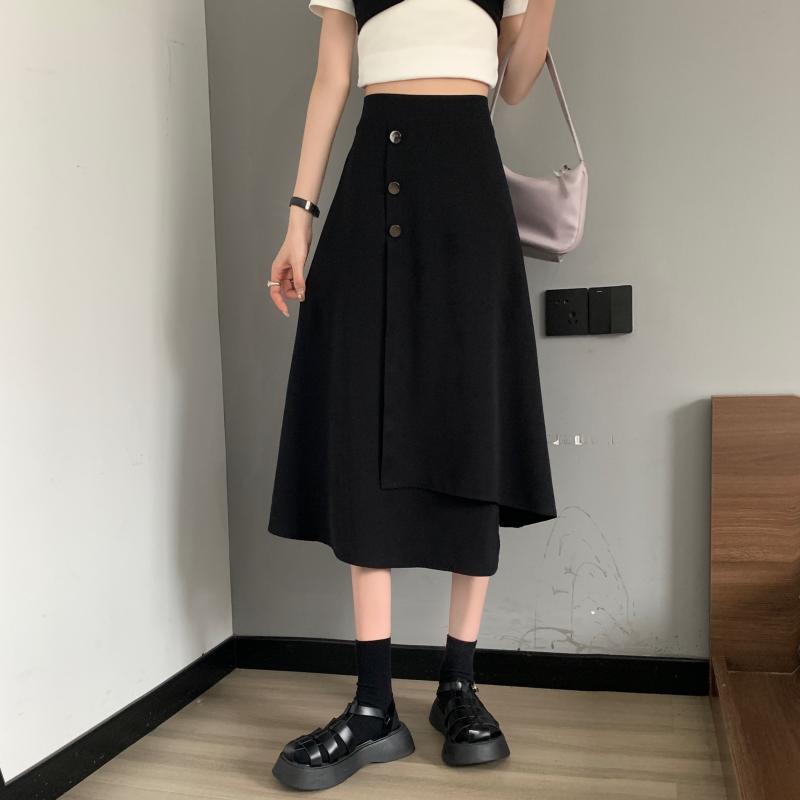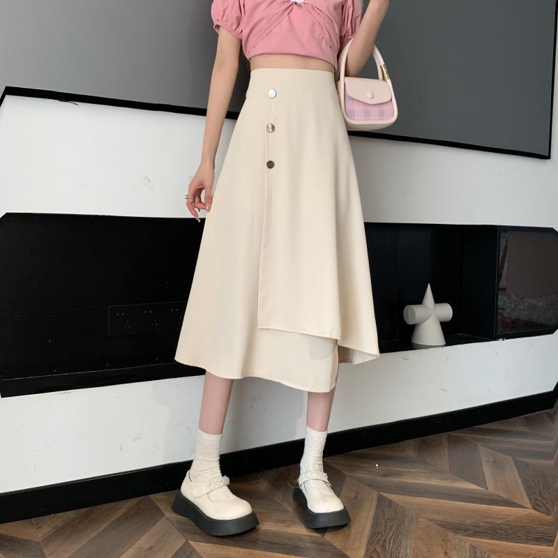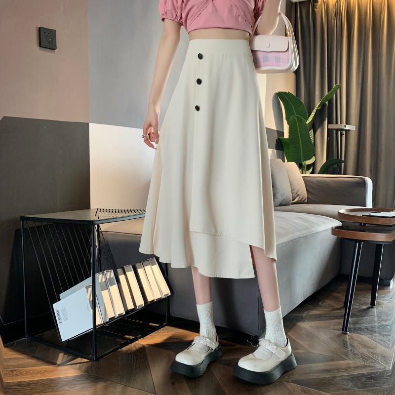 Falda Delgada de Verano 2025 Diseño de Vestido Irregular Cintura Alta Adelgazante Cubre Caderas Temperamento Falda Midi