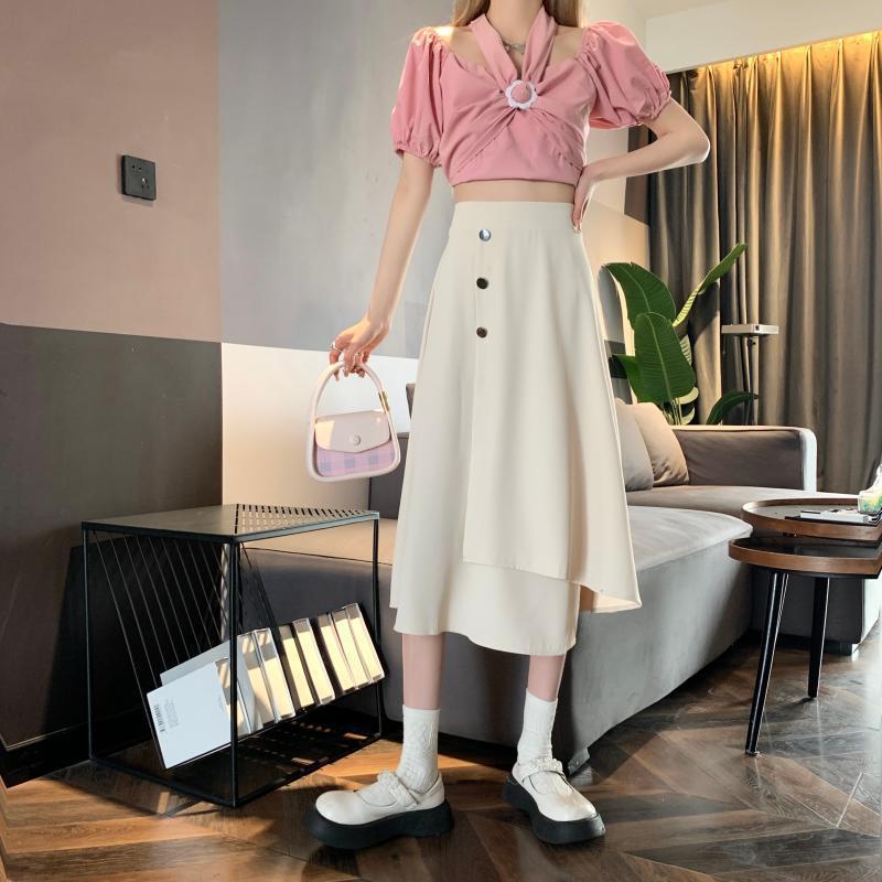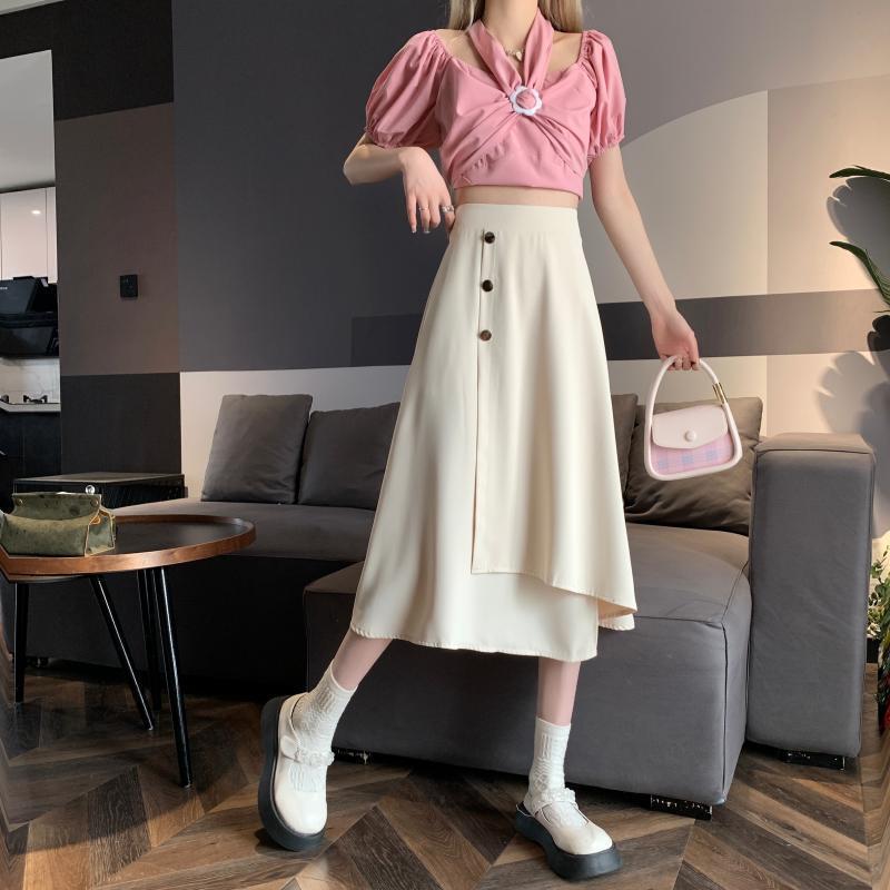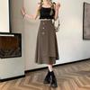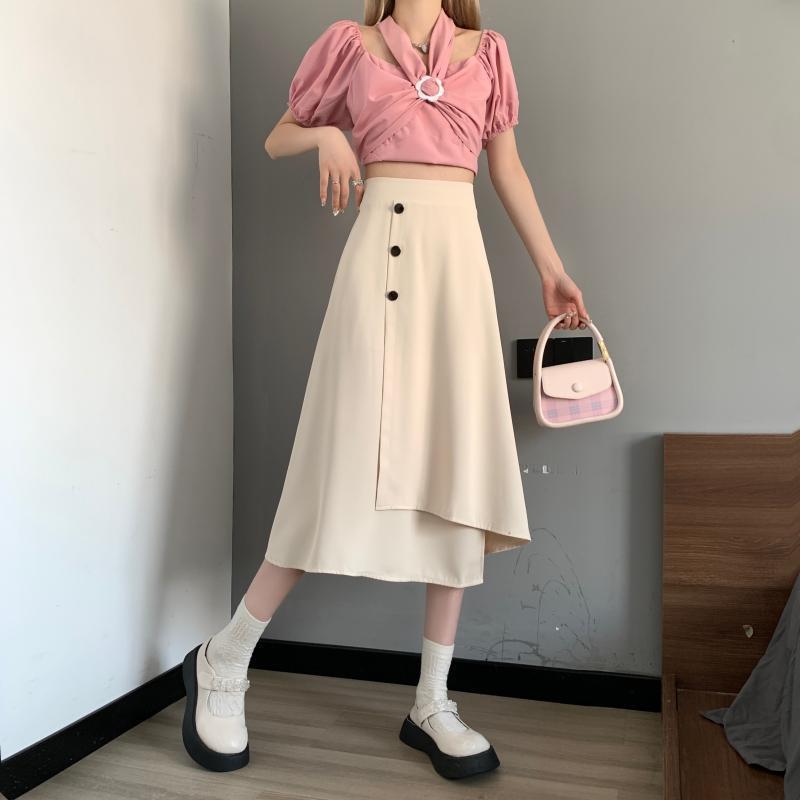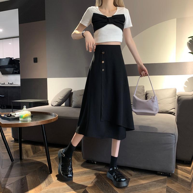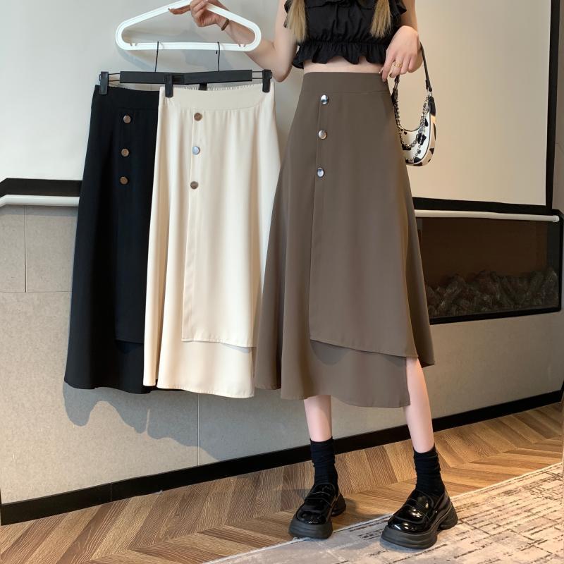Falda Delgada de Verano 2025 Diseño de Vestido Irregular Cintura Alta Adelgazante Cubre Caderas Temperamento Falda Midi