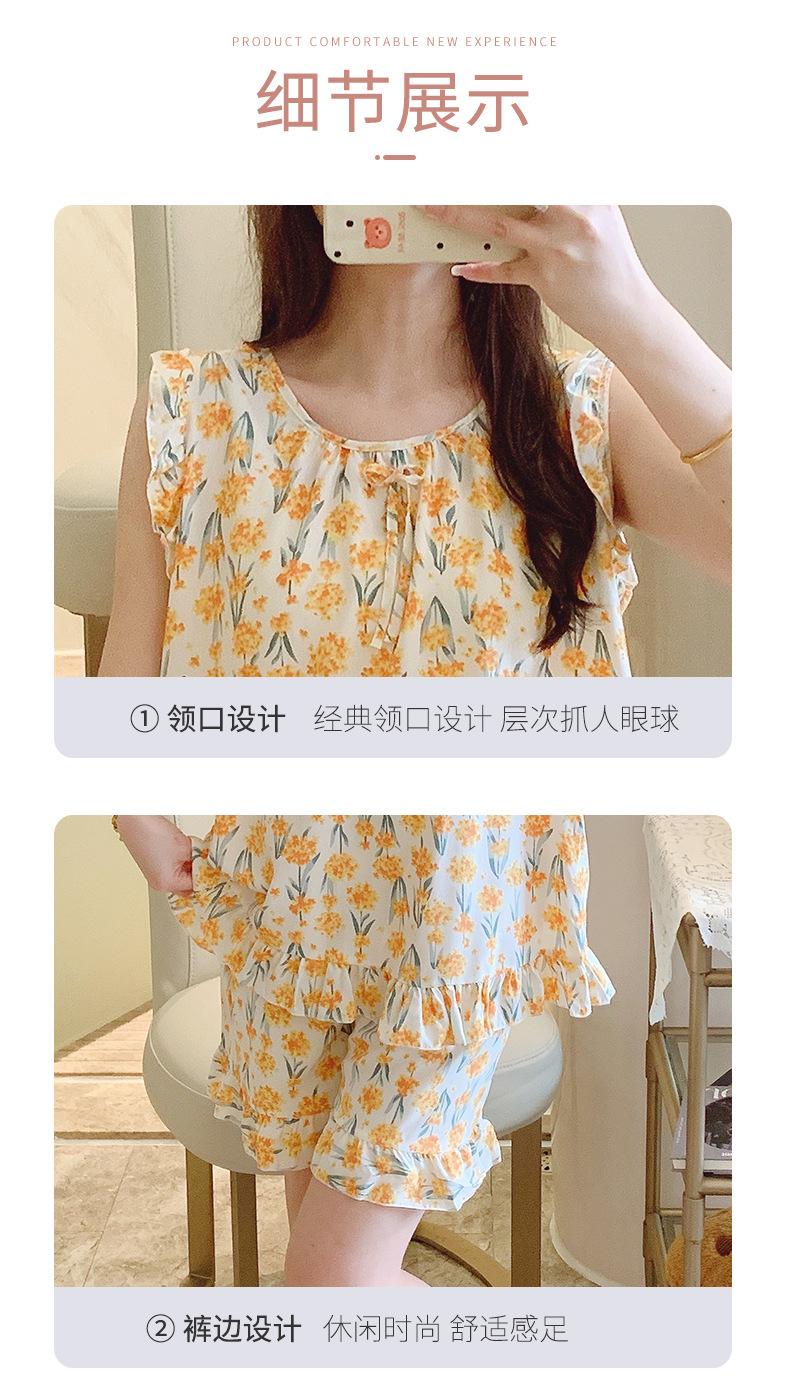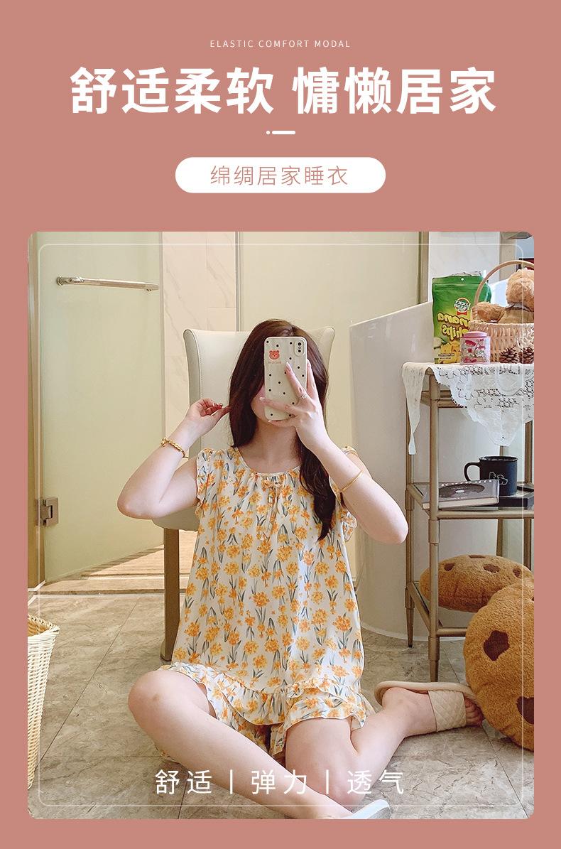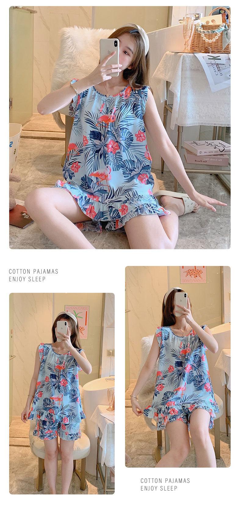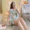 Pijamas de verano para mujer, finos, de seda y algodón, sexys, para el hogar, pantalones cortos, traje de dos piezas con aire acondicionado, para verano
