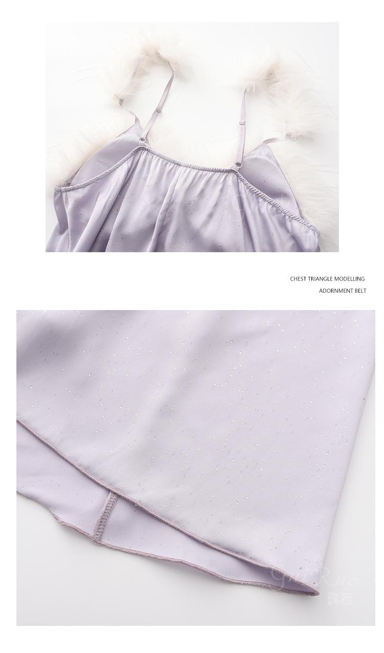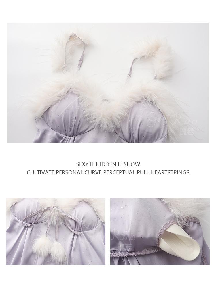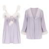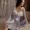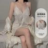 Dz Guiruo Intimates Sexy Plus Almohadillas para Busto Puro Deseo Tentación Plateada Camisón con Tirantes Bata Exterior Talla Grande Conjunto para Casa 4419