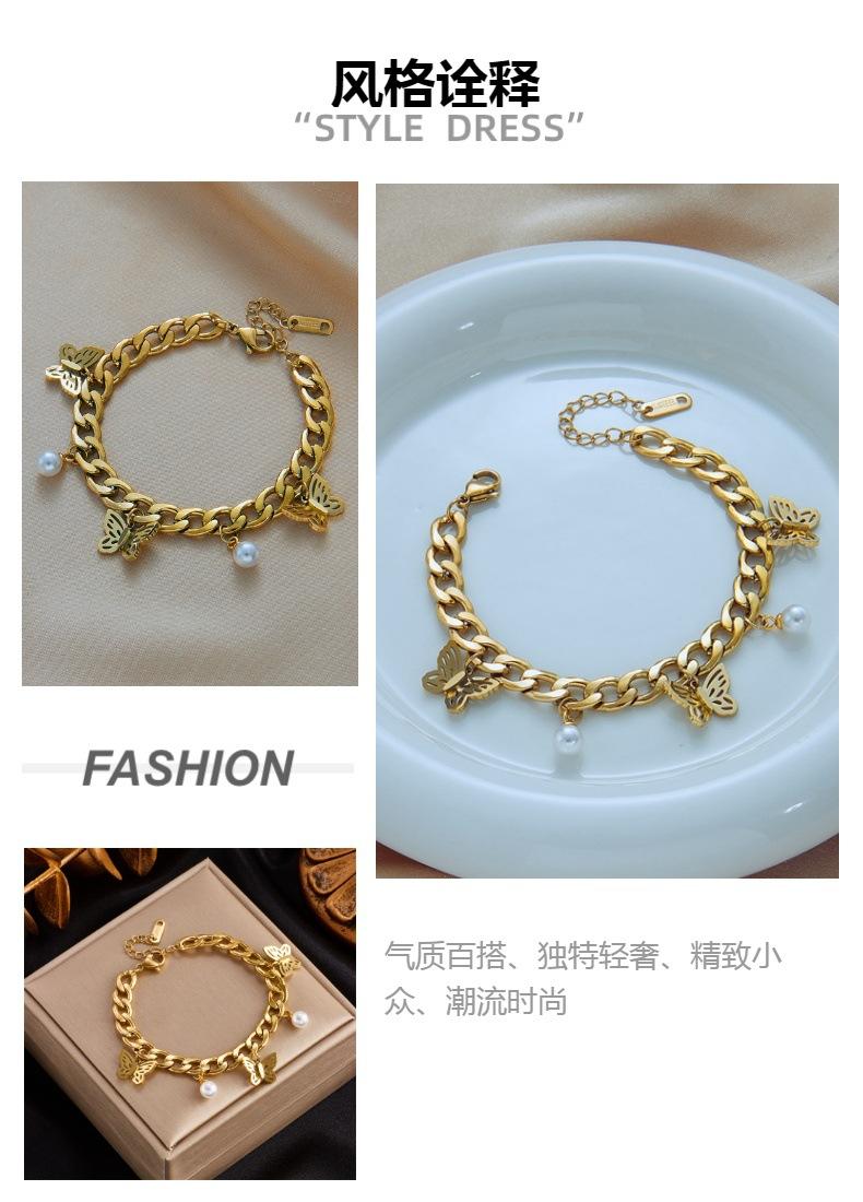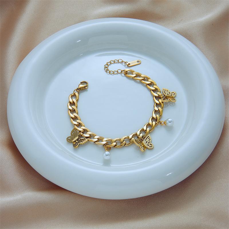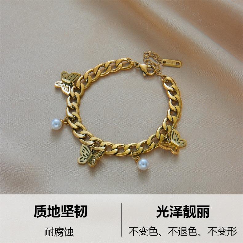 Moda Europea y Americana Diseño Nicho Cadena Metal Acero Titanio Perla Colgante Mariposa Joyería Pulsera con Diseño Irregular