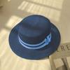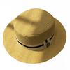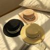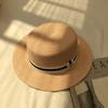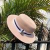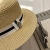 Sombrero de Verano para Mujer con Lazo Sombrero de Paja de Copa Plana Retro Británico Sombrero de Playa de Protección Solar para Hombre Venta al por Mayor Ligero