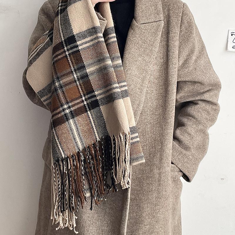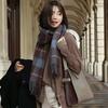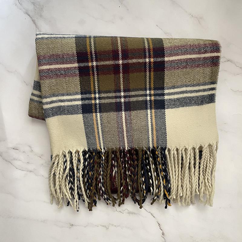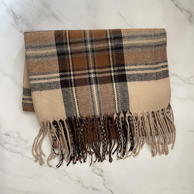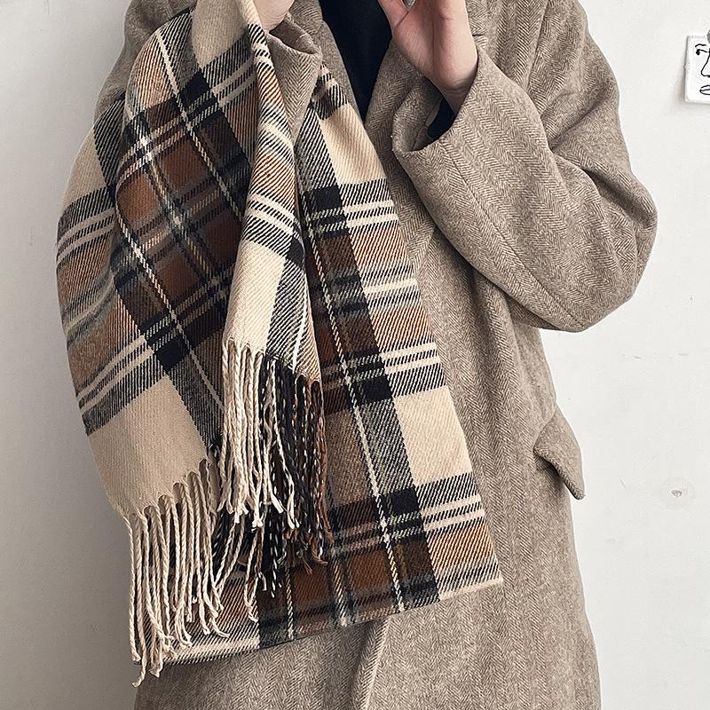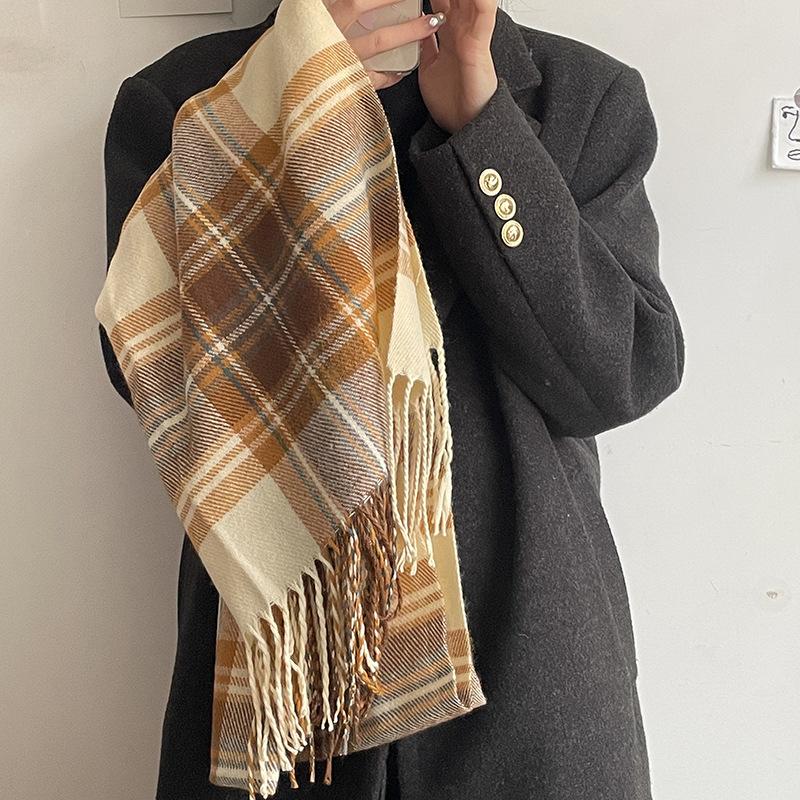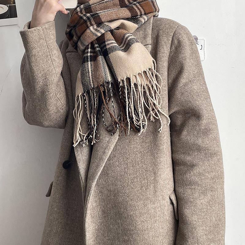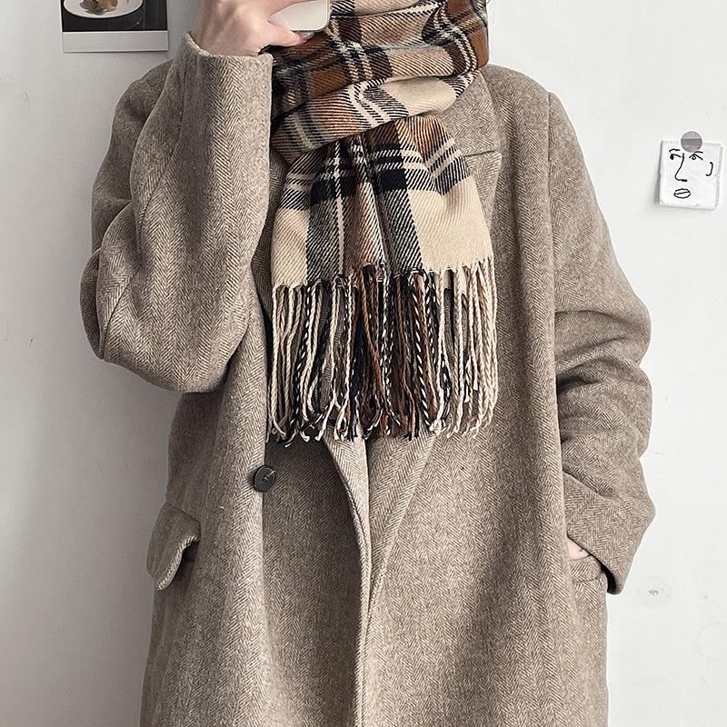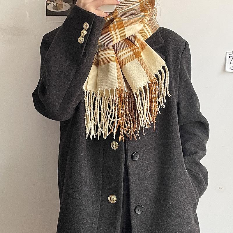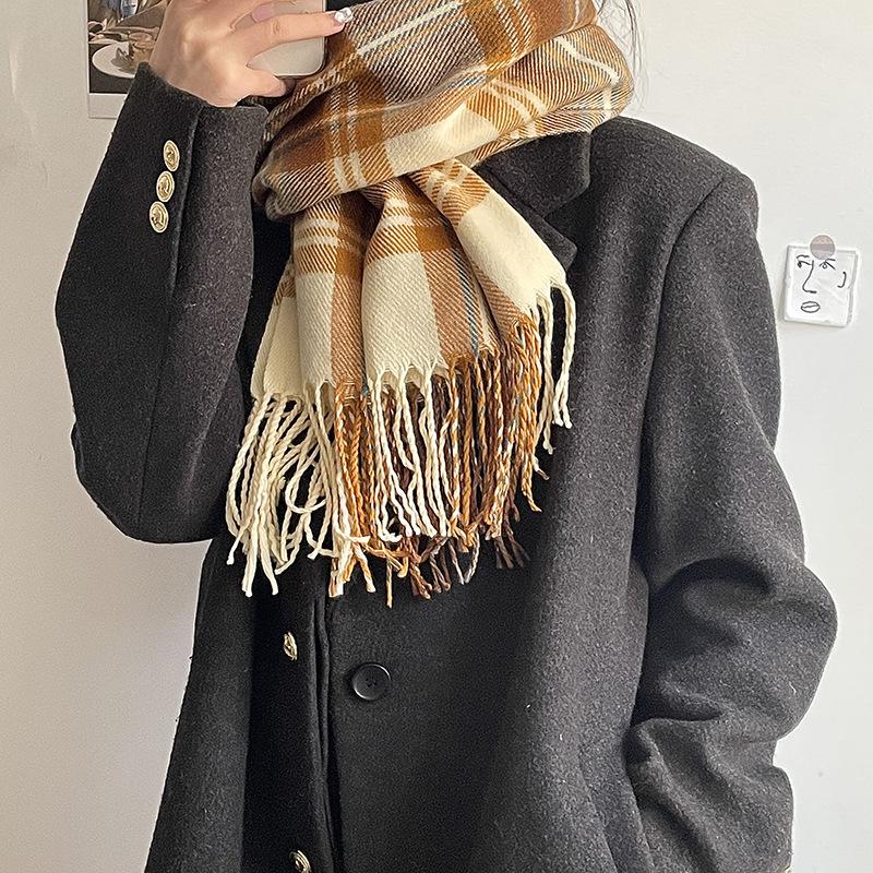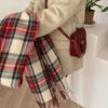 Bufanda a cuadros Dongdaemun coreana para mujer, estilo estudiante, con bloques de colores, estilo vintage, con borlas, chal, abrigo, bufanda cálida para el cuello