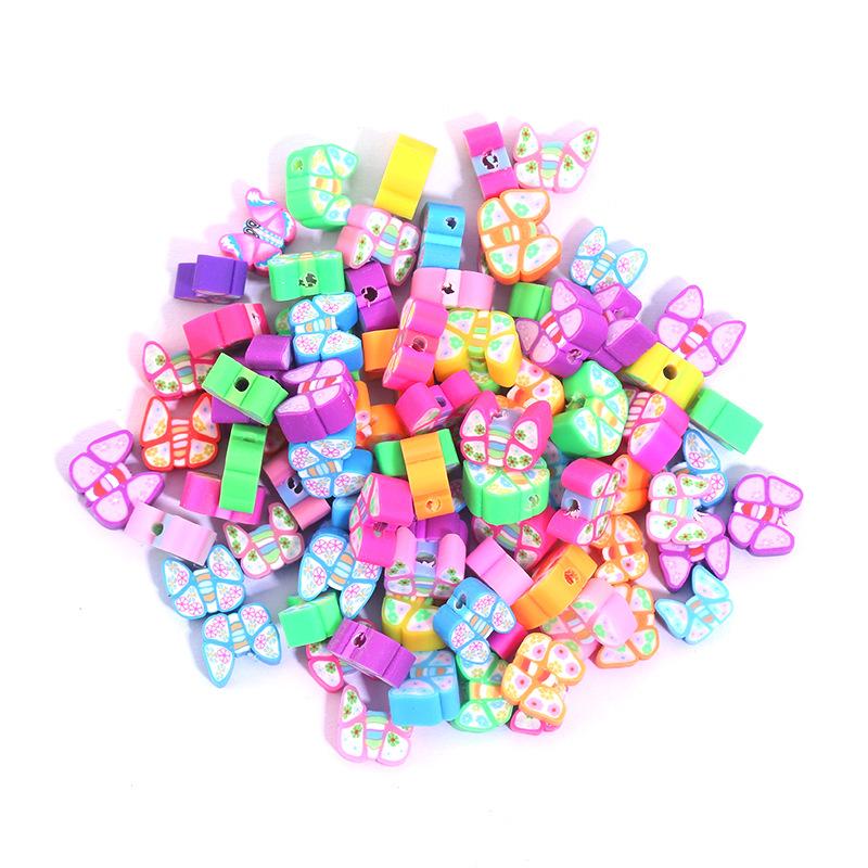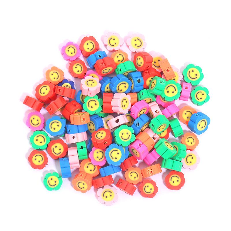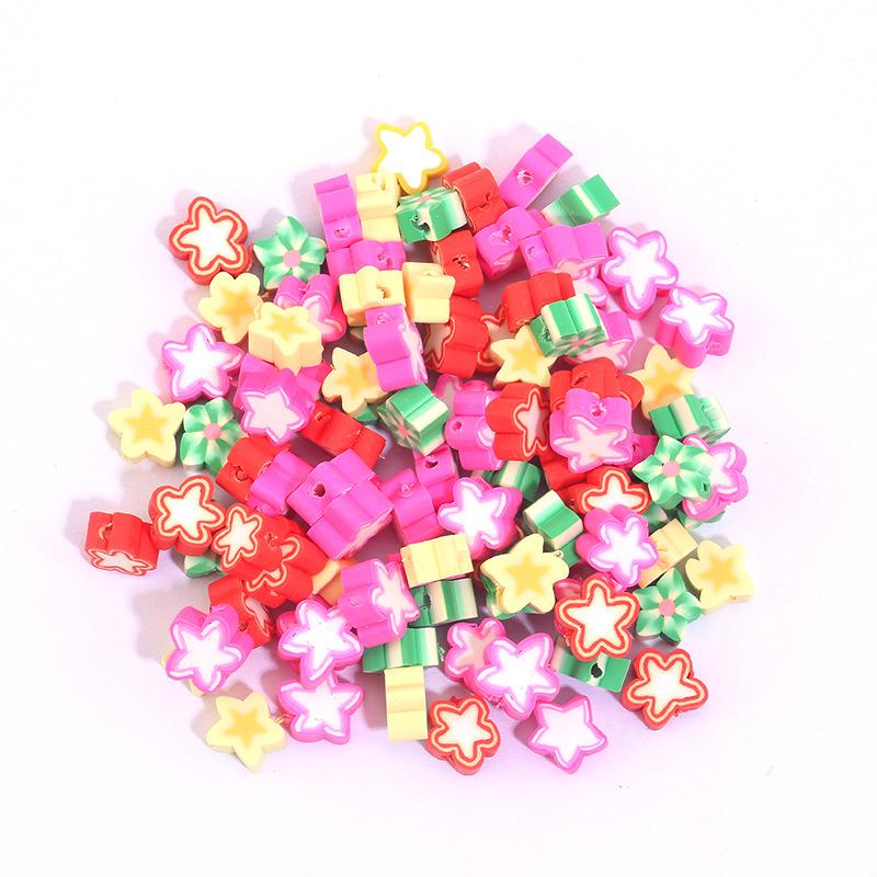 Cuentas de arcilla para manualidades transfronterizas con forma de fruta, animal y cerámica blanda, 100 cuentas de 10 mm con forma de flor, accesorios de cerámica blanda