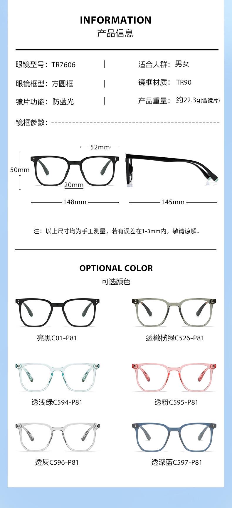 Armazón de Lentes Estilo Nuevo 2022 para Mujer, Armazón Grande de Moda Ultraligero Espejo Plano para Mujer Tr7606 Lentes Literarios Multifacéticos Antiluz Azul