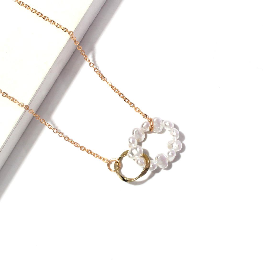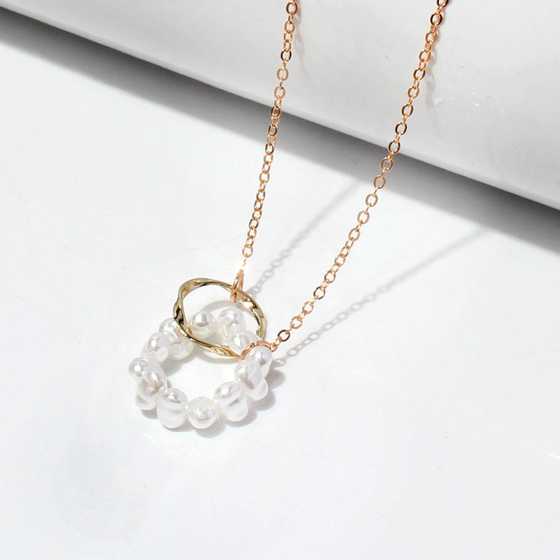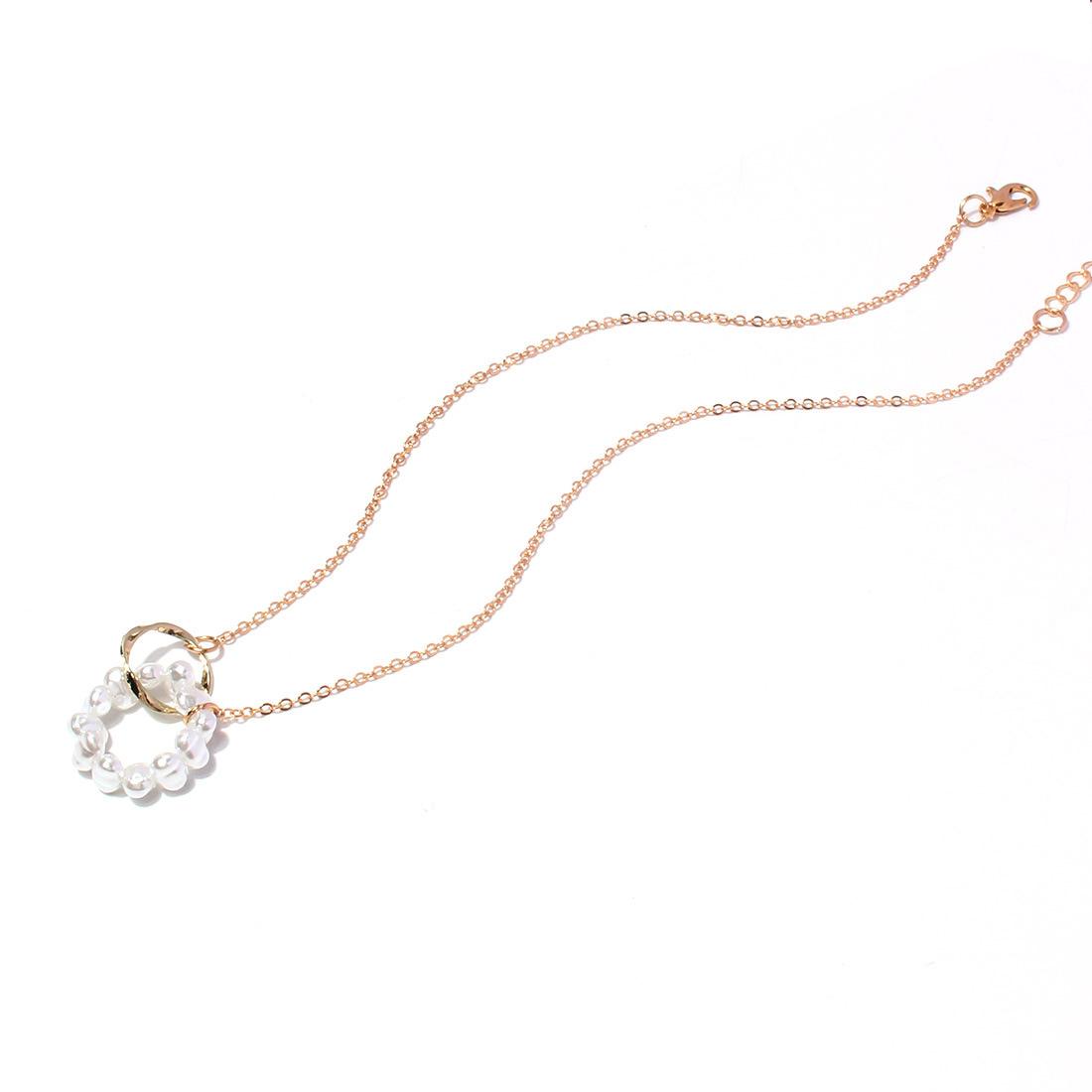 Collar con colgante de perla circular para mujer, joyería de moda retro europea y americana, cadena de clavícula 20870