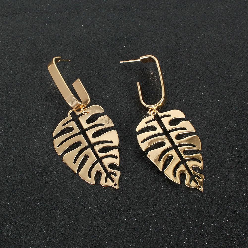 Pendientes de hoja en forma de abanico de aleación personalizados transfronterizos, estilo europeo y americano, pendientes atmosféricos sencillos para mujer F17350