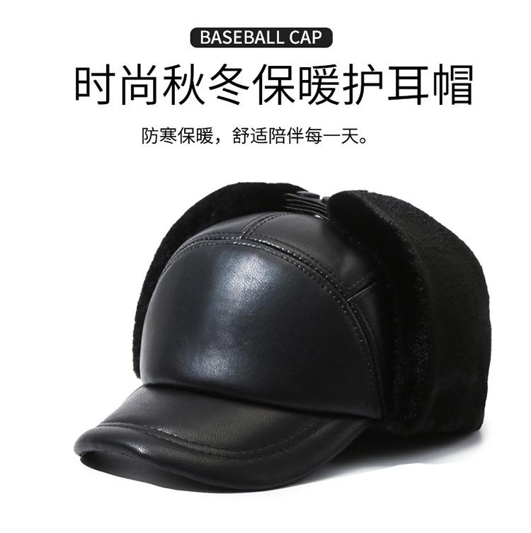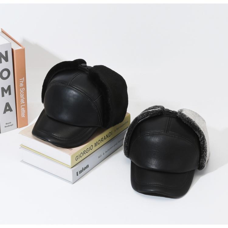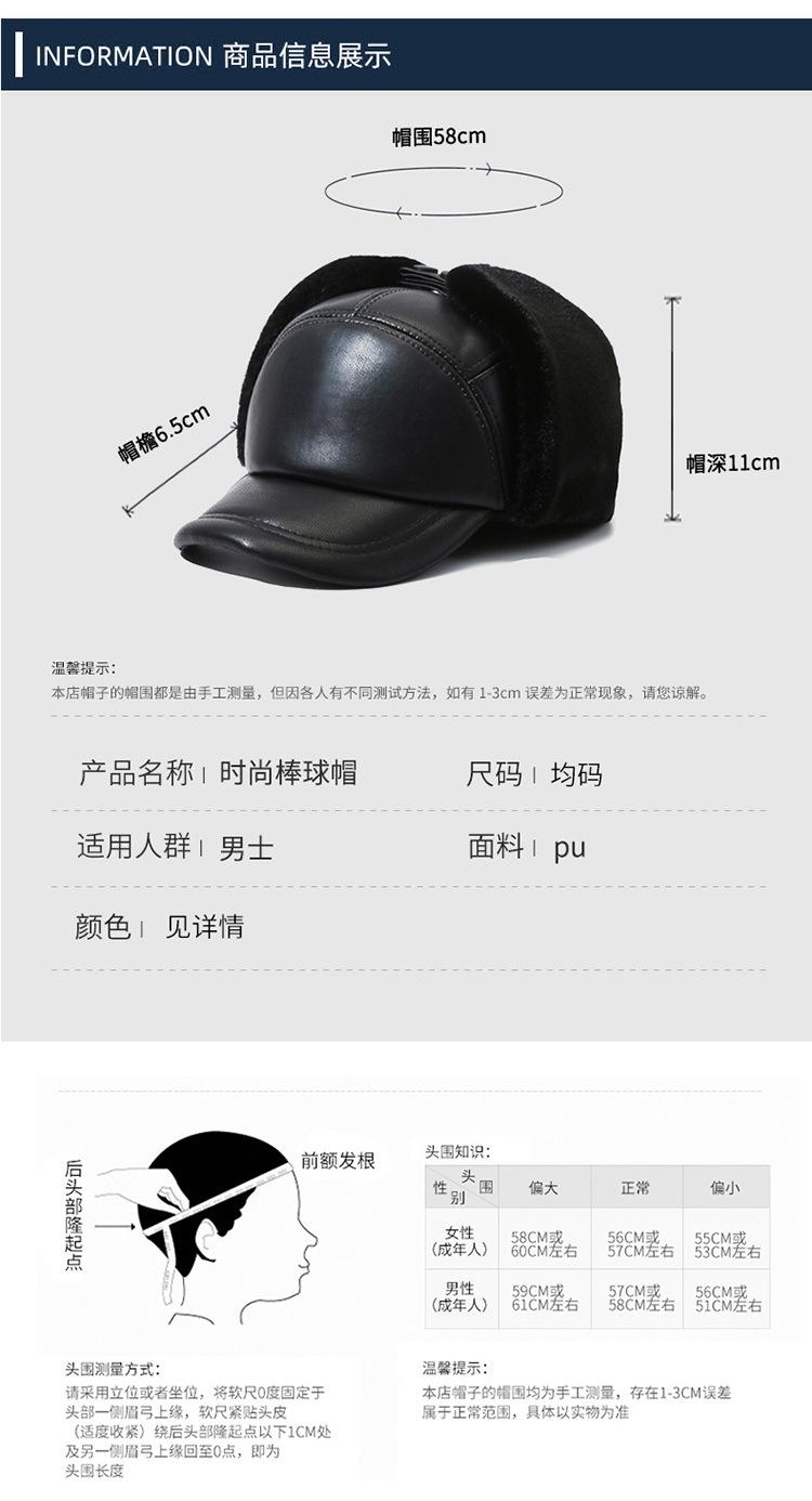 Nueva gorra de piel sintética de alta calidad para otoño e invierno, nueva gorra con visera para exteriores, cálida, de piel negra, combina con todo, con gran circunferencia de cabeza.