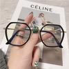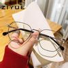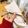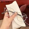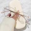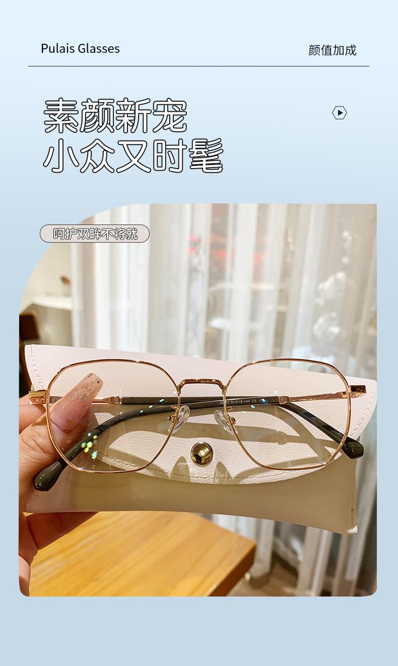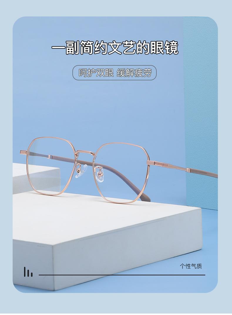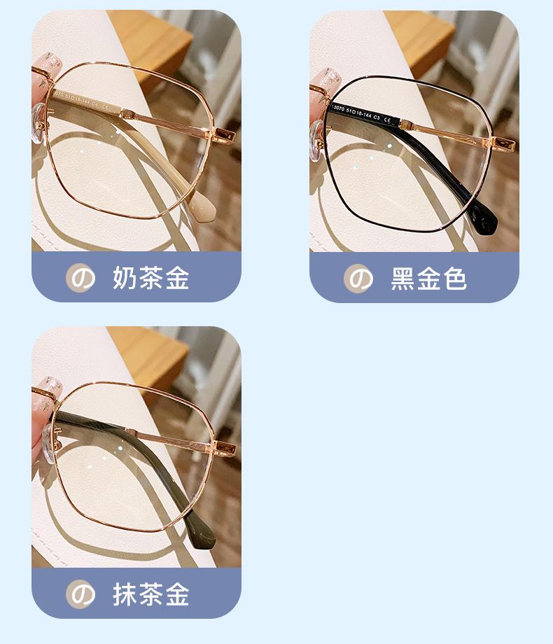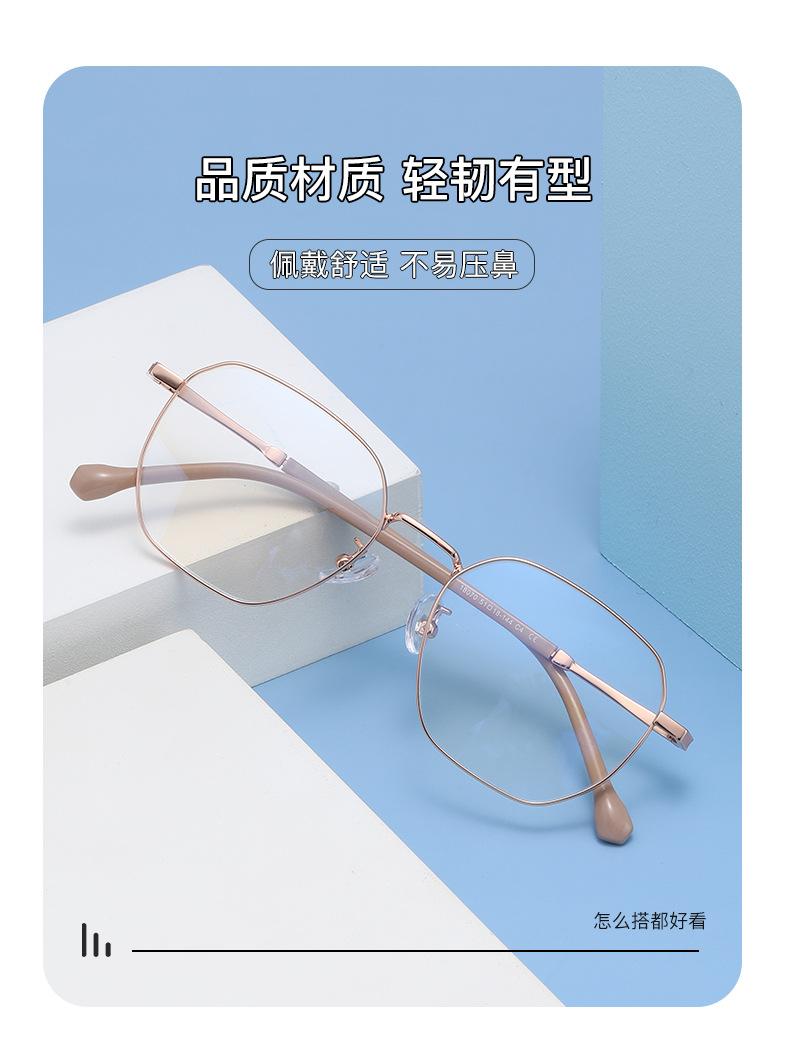 Las gafas con montura metálica ultraligera, con lentes planas poligonales de moda de color marrón frío se pueden equipar con montura para miopía.