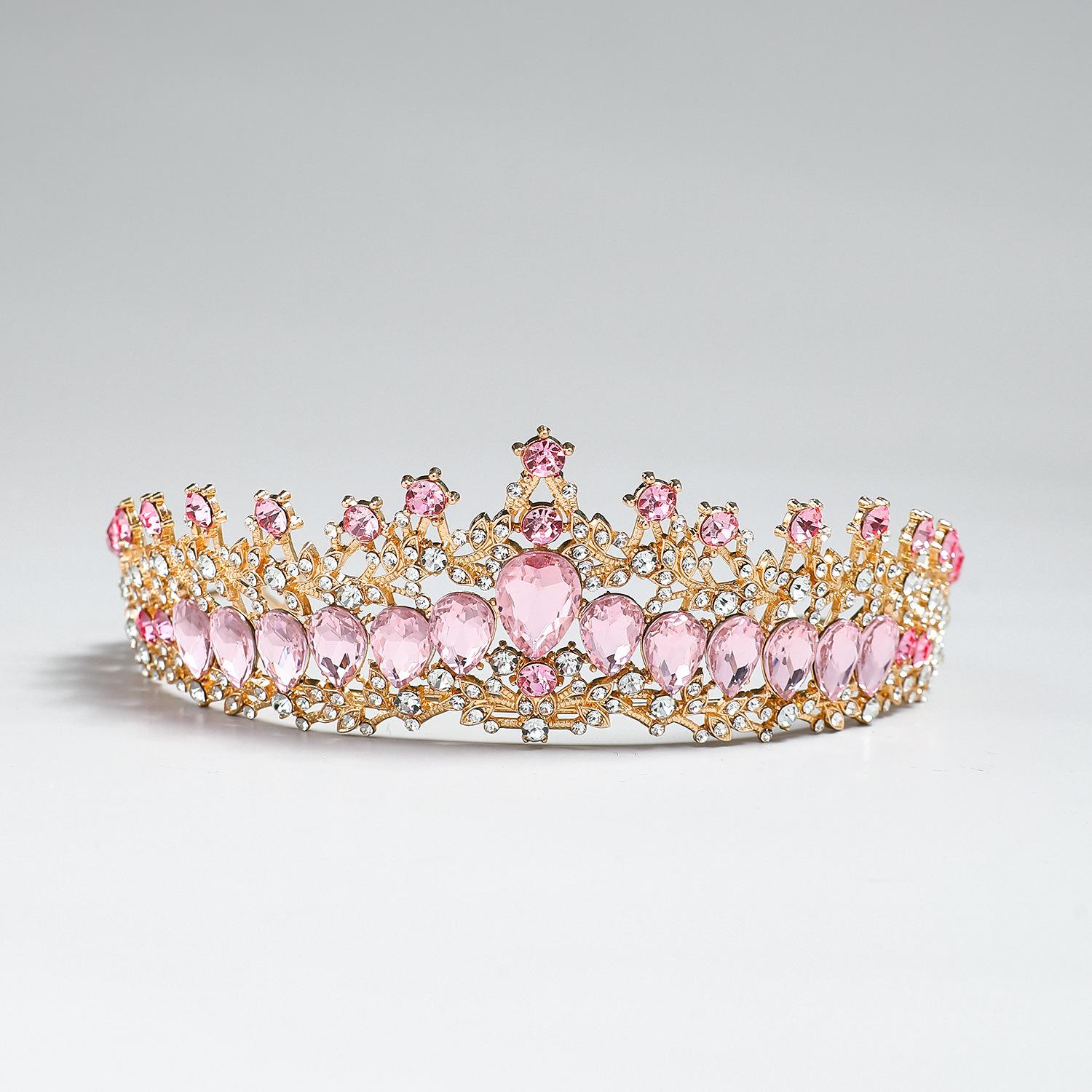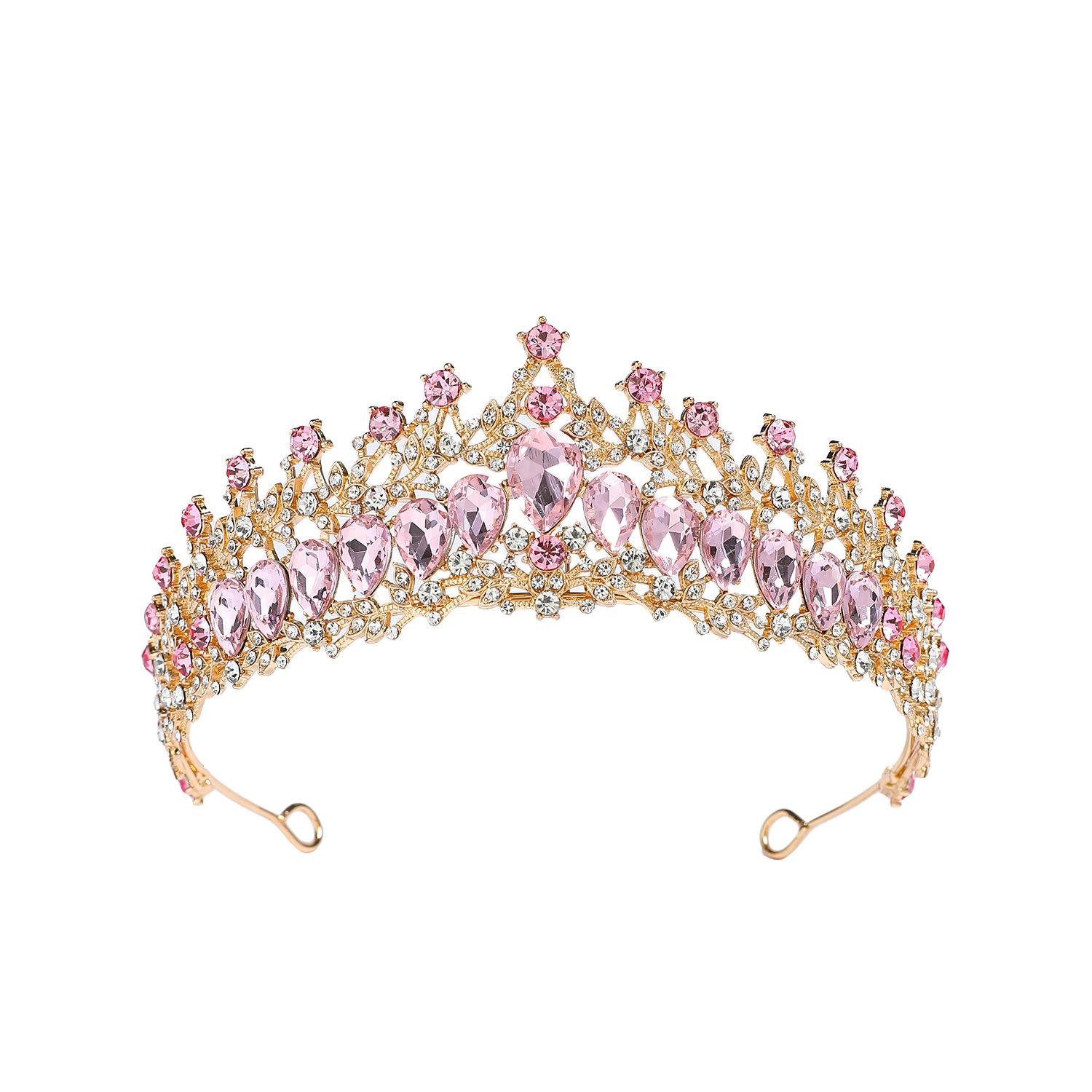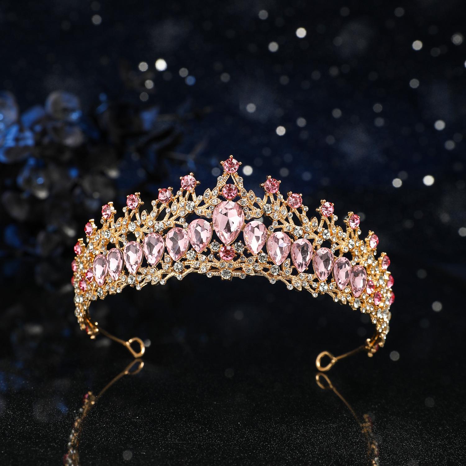 Corona de princesa transfronteriza para novia, tocado de metal con diamantes de imitación, color precioso, para bodas, cumpleaños y fiestas, venta al por mayor.