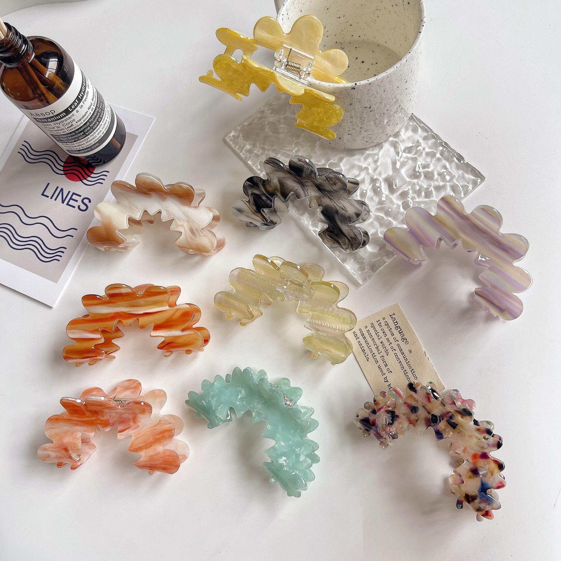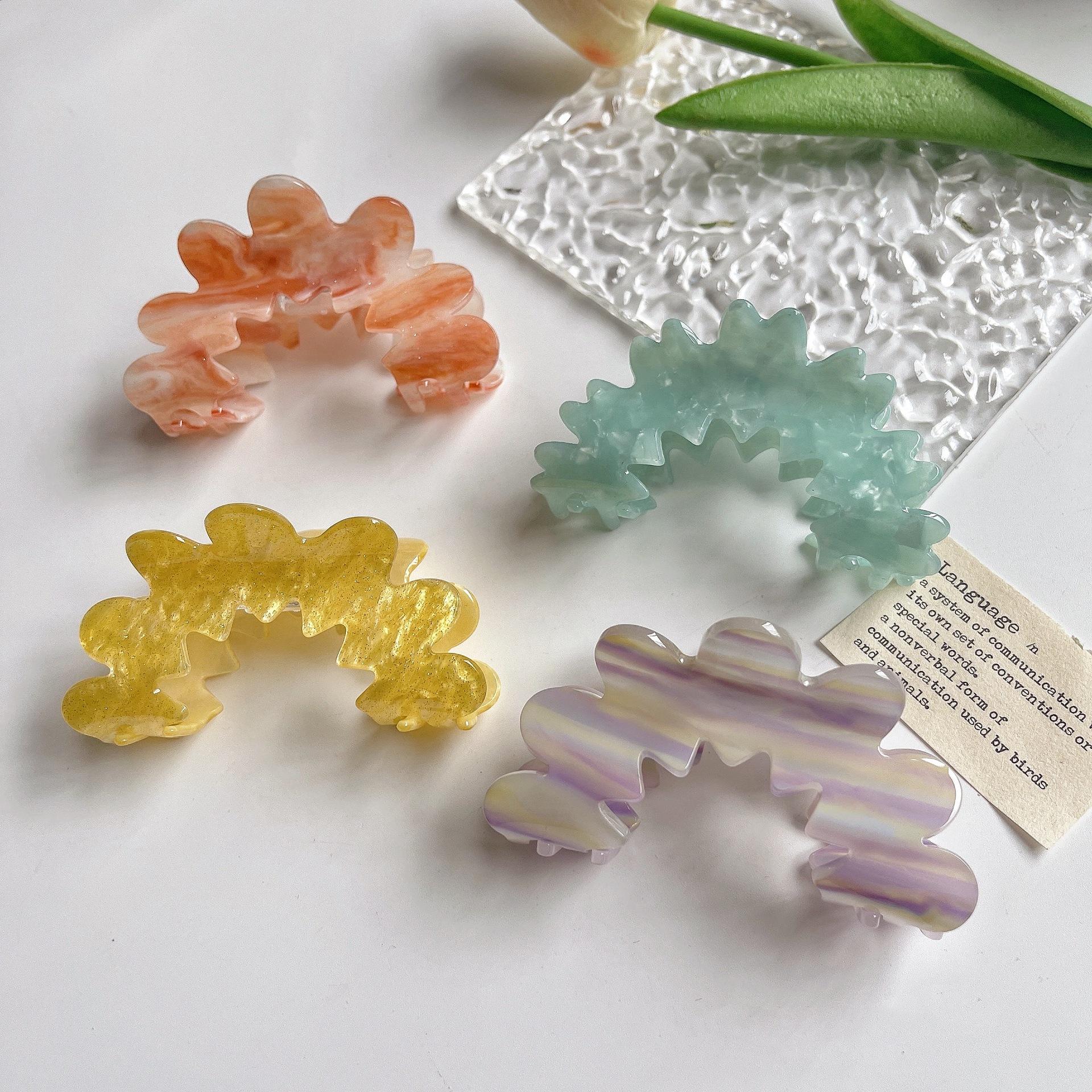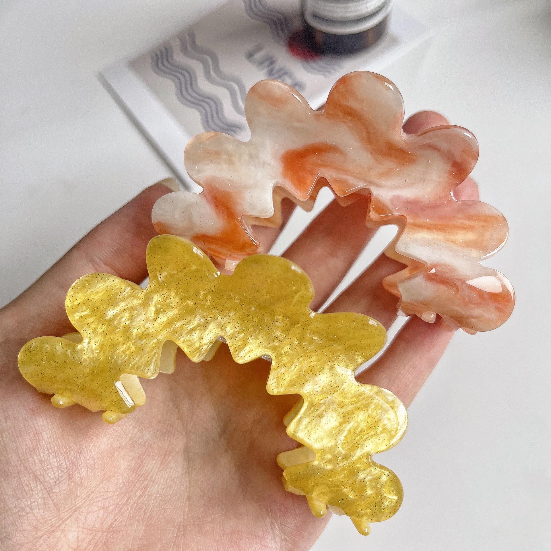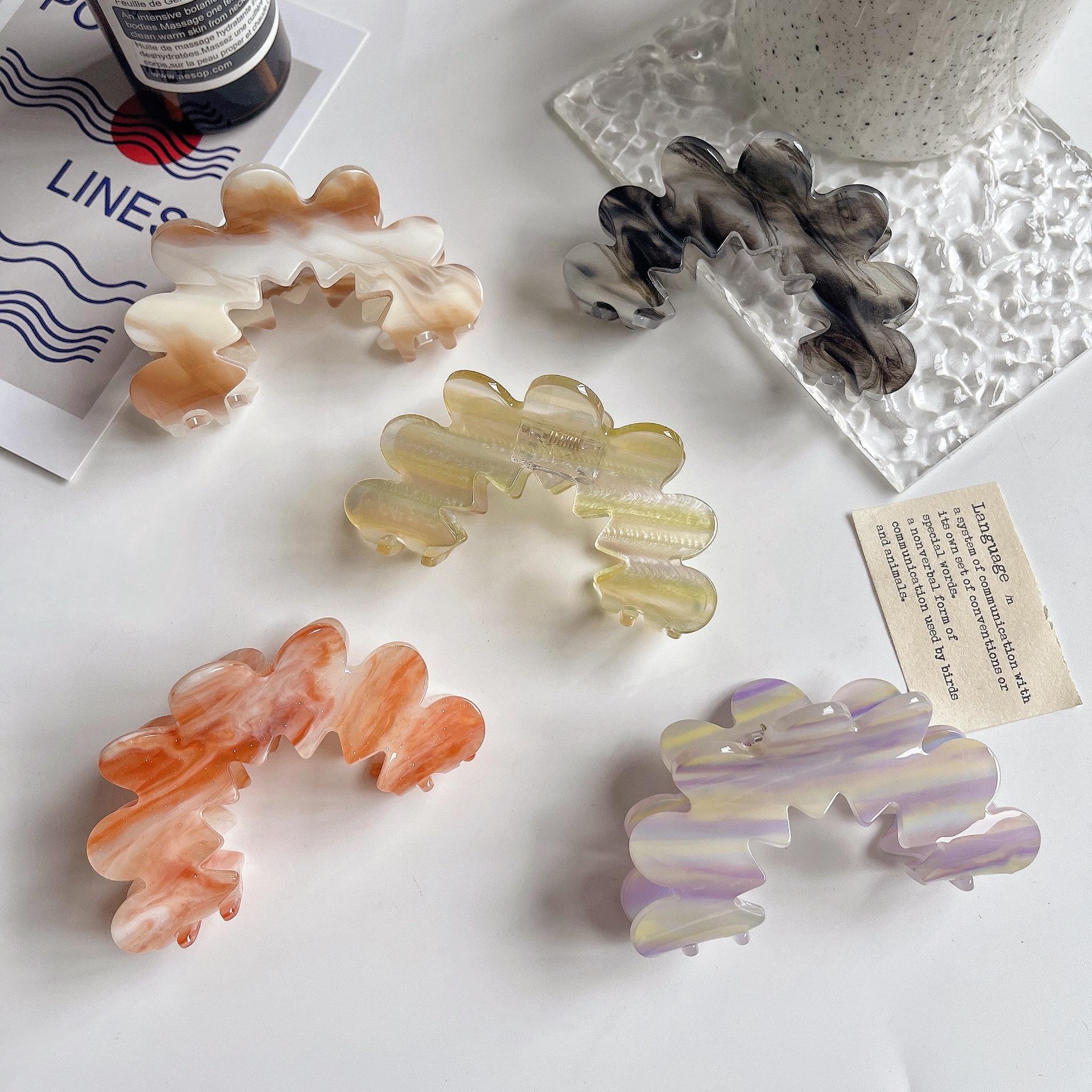 Horquilla coreana con ácido acético, diseño de flor ondulada sencilla, pequeña y fresca, con forma de tiburón para mujer, accesorio para el cabello