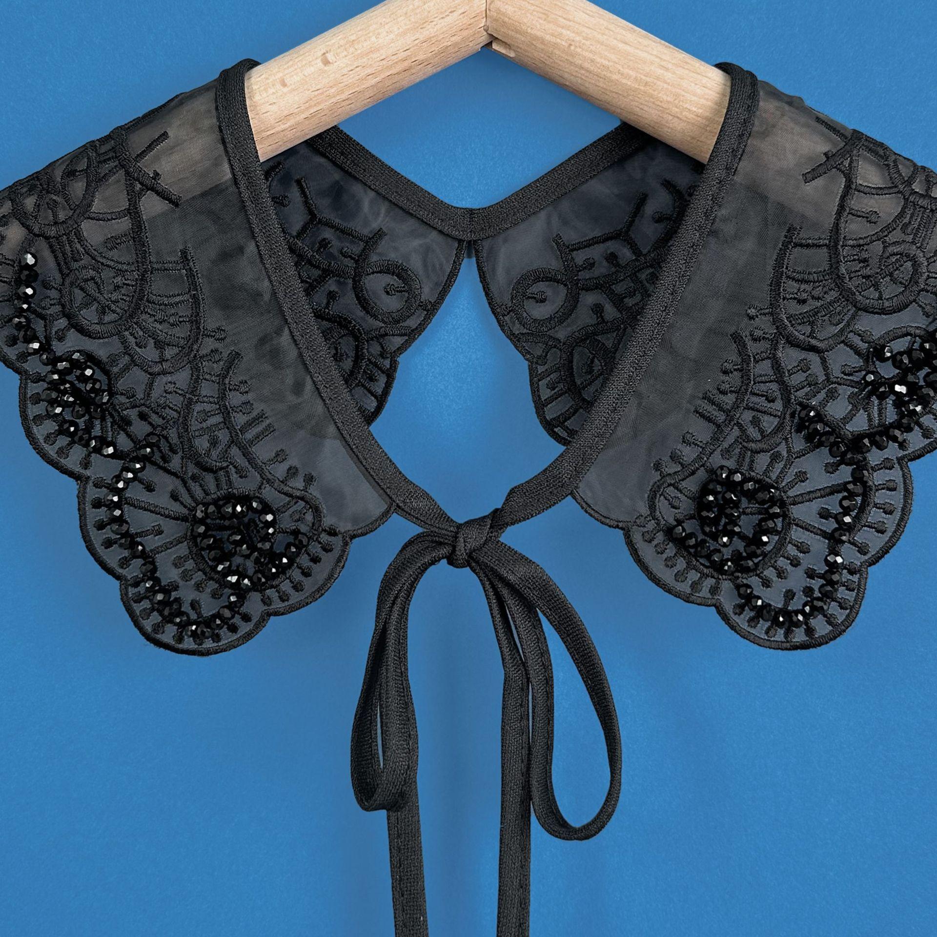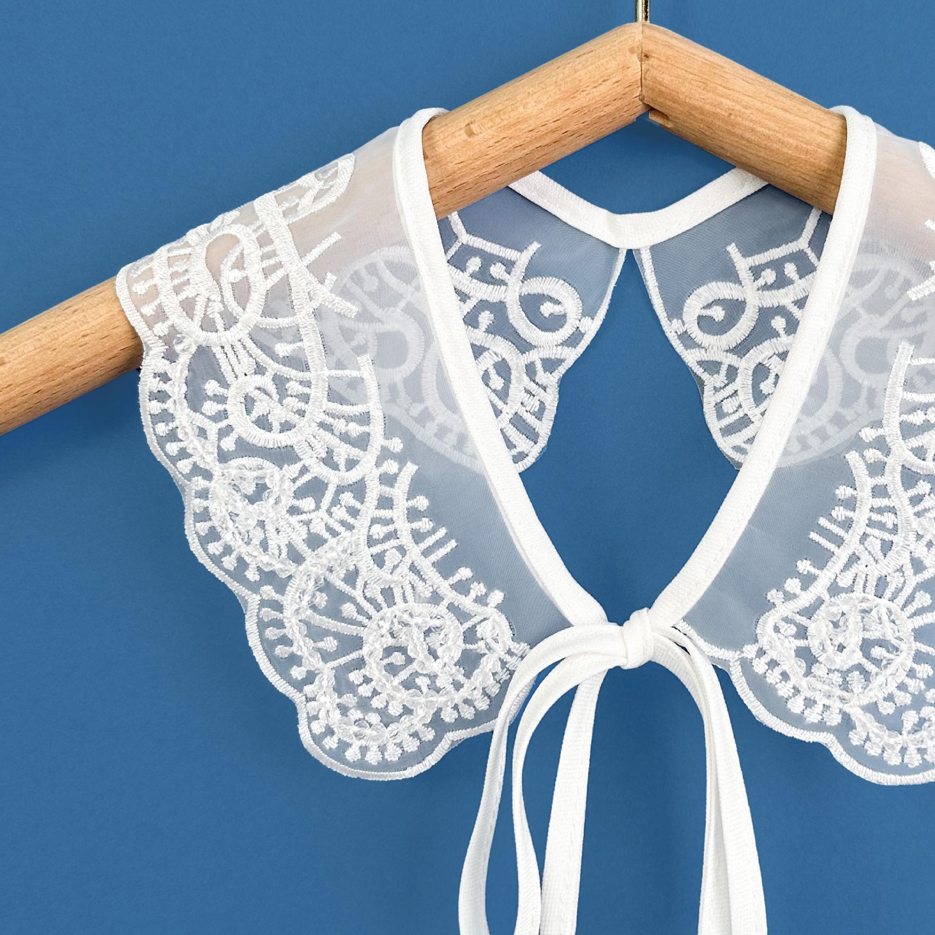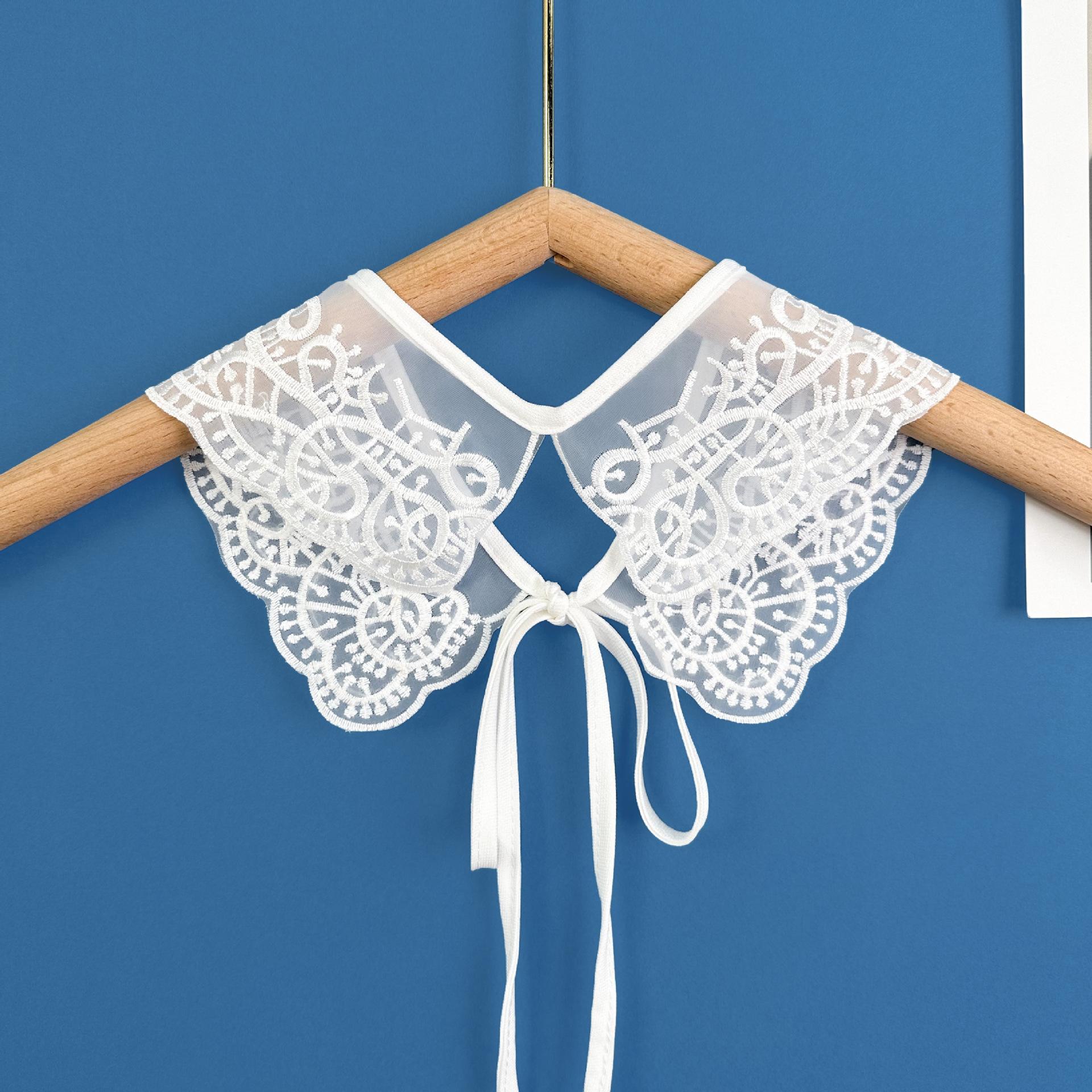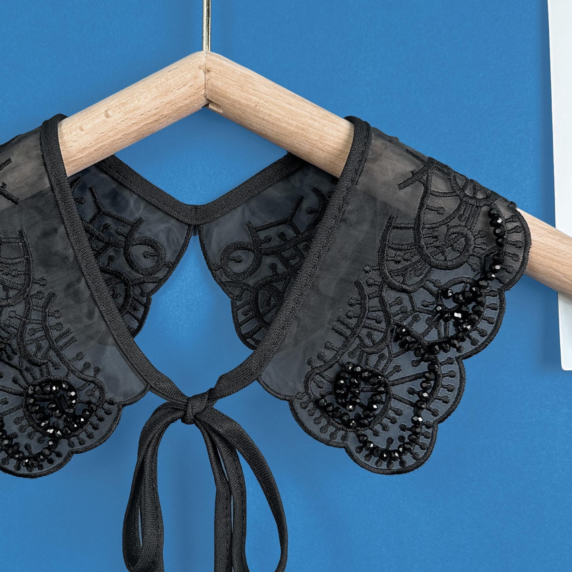 2025 Nuevo Encaje Bordado de Organza Cuello con Cuentas Par de Flores Cuello Falso para Camisa de Mujer Decoración a Juego Fabricante Venta al por Mayor