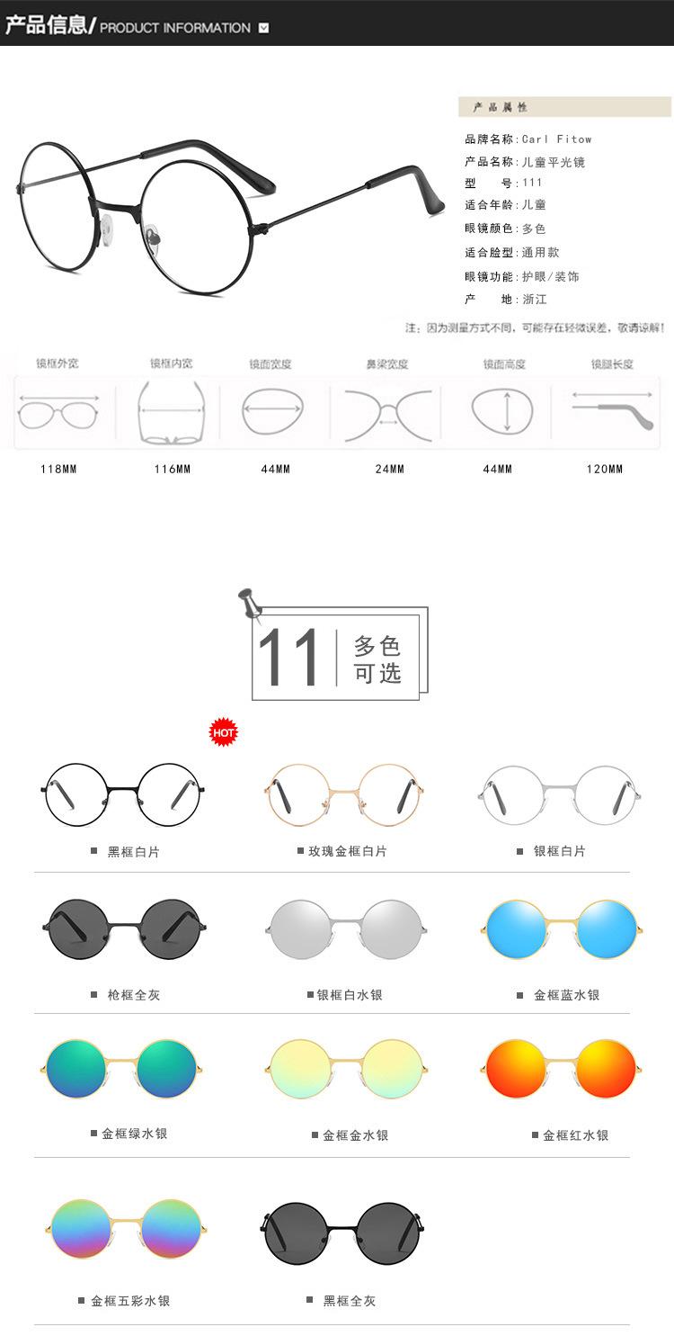 Gafas de viaje para bebé, gafas decorativas de moda, gafas para niños de estilo coreano, gafas planas de metal para fotos callejeras.