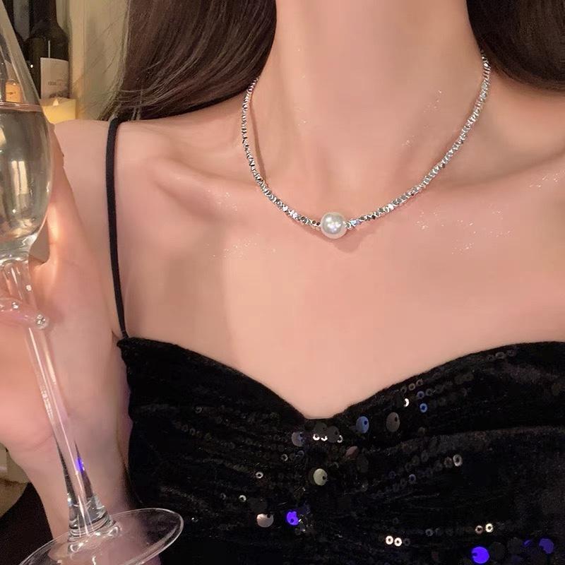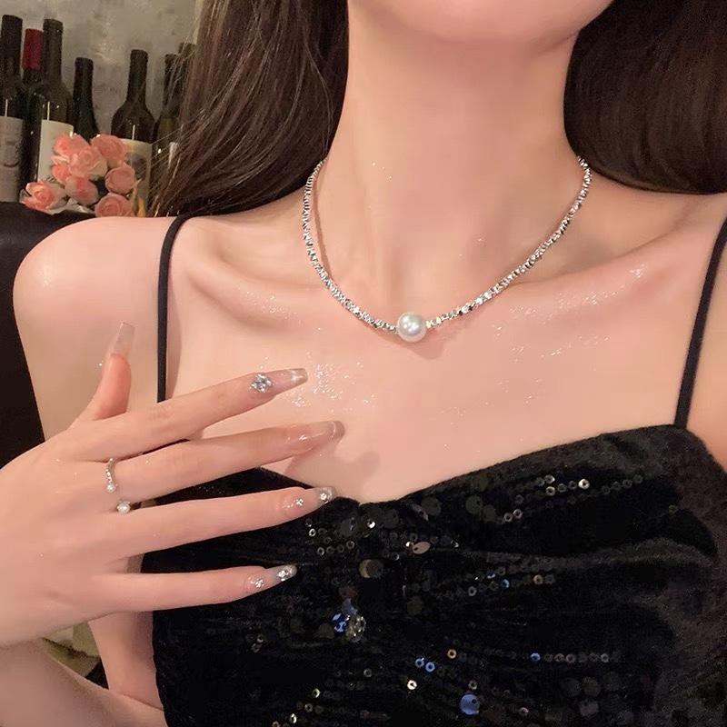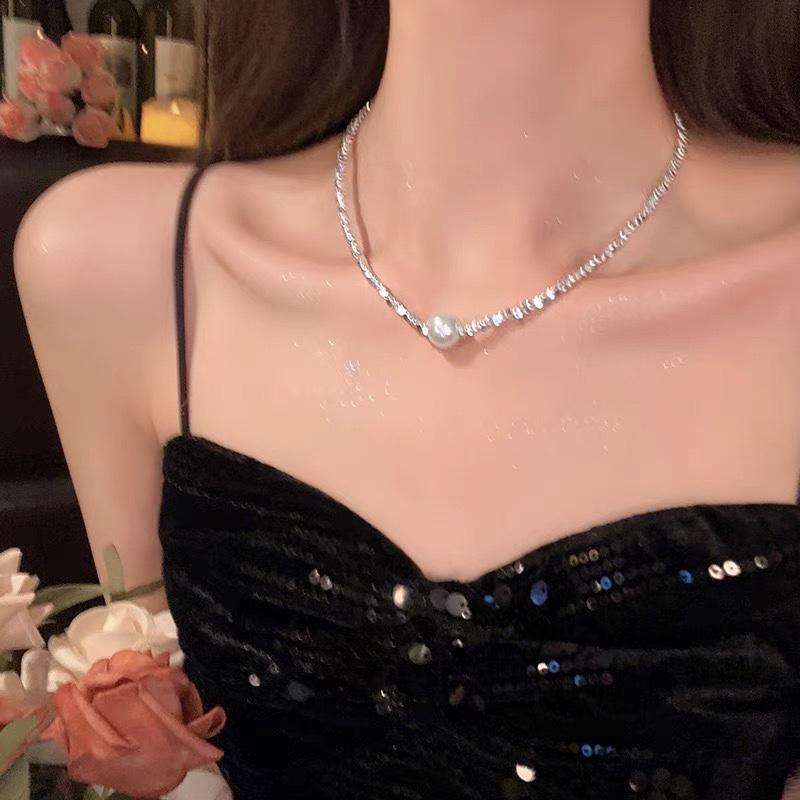 Collar de Perlas Plateadas Rotas para Mujer 2025 Nuevo Estilo Popular Nicho de Lujo Ligero Cadena para Clavícula Primavera y Verano Accesorio Cadena para el Cuello