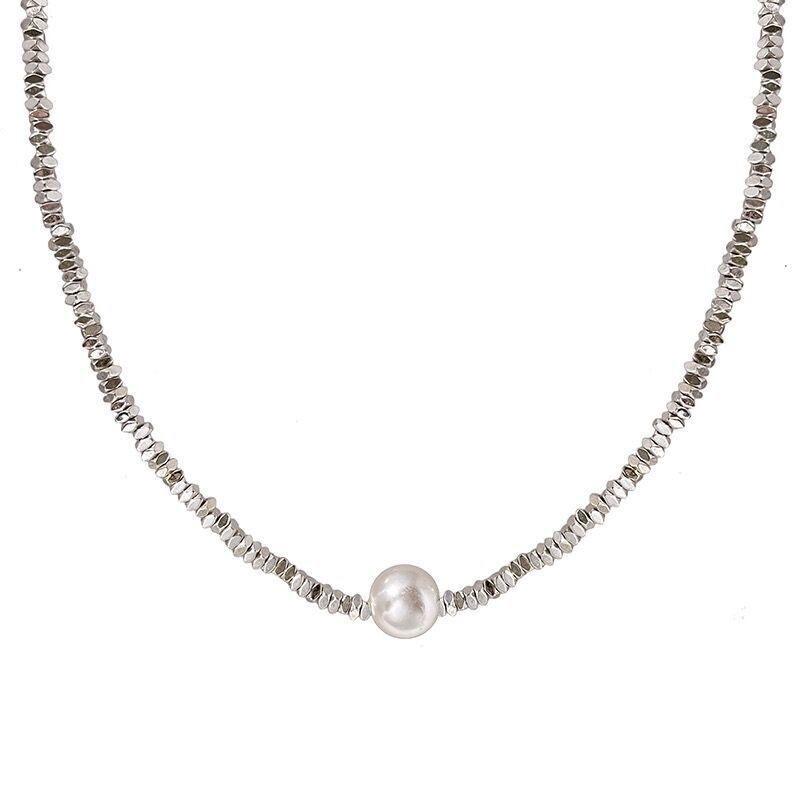 Broken Silver Small Pearl Necklace
