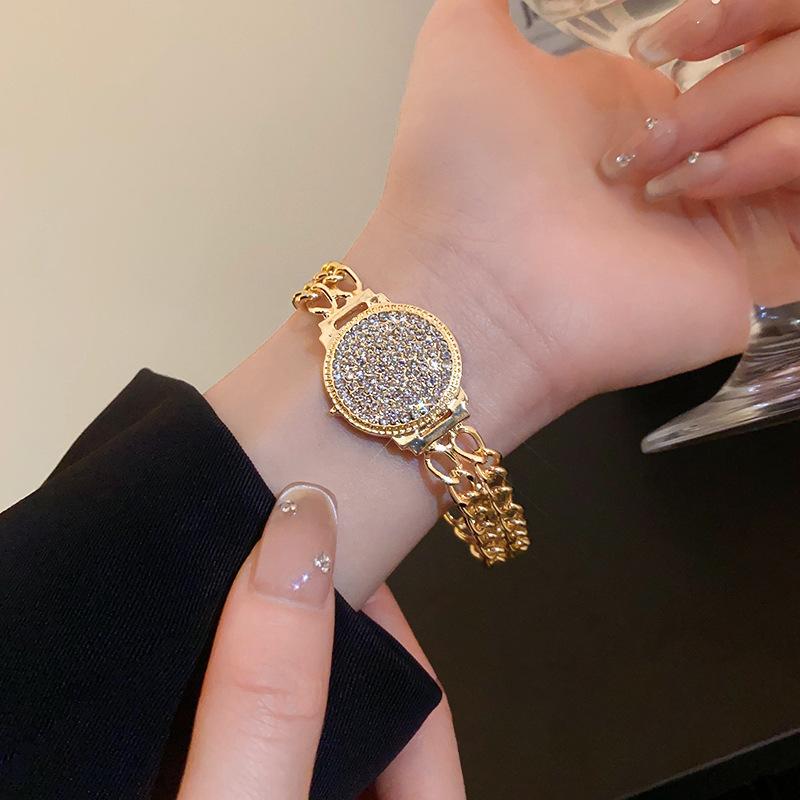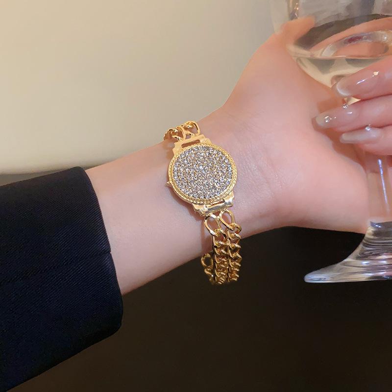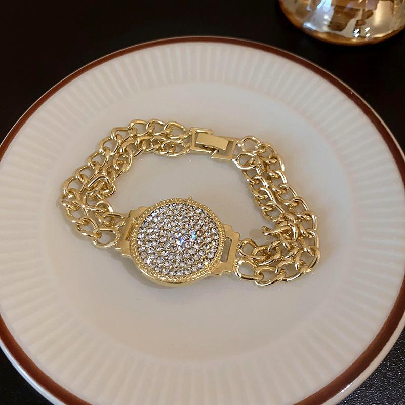 Pulsera geométrica exquisita de disco con incrustaciones de diamantes, nicho de lujo ligero de alta gama, pulsera de diseño de moda para combinar con todo, venta al por mayor de pulseras